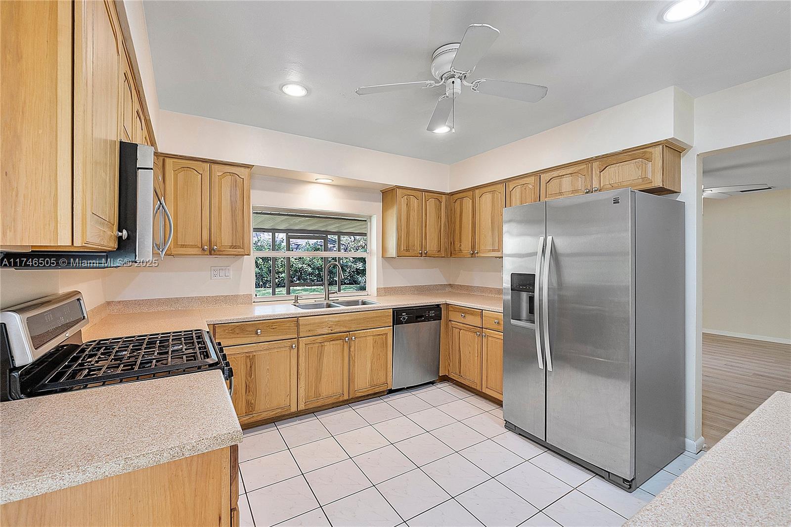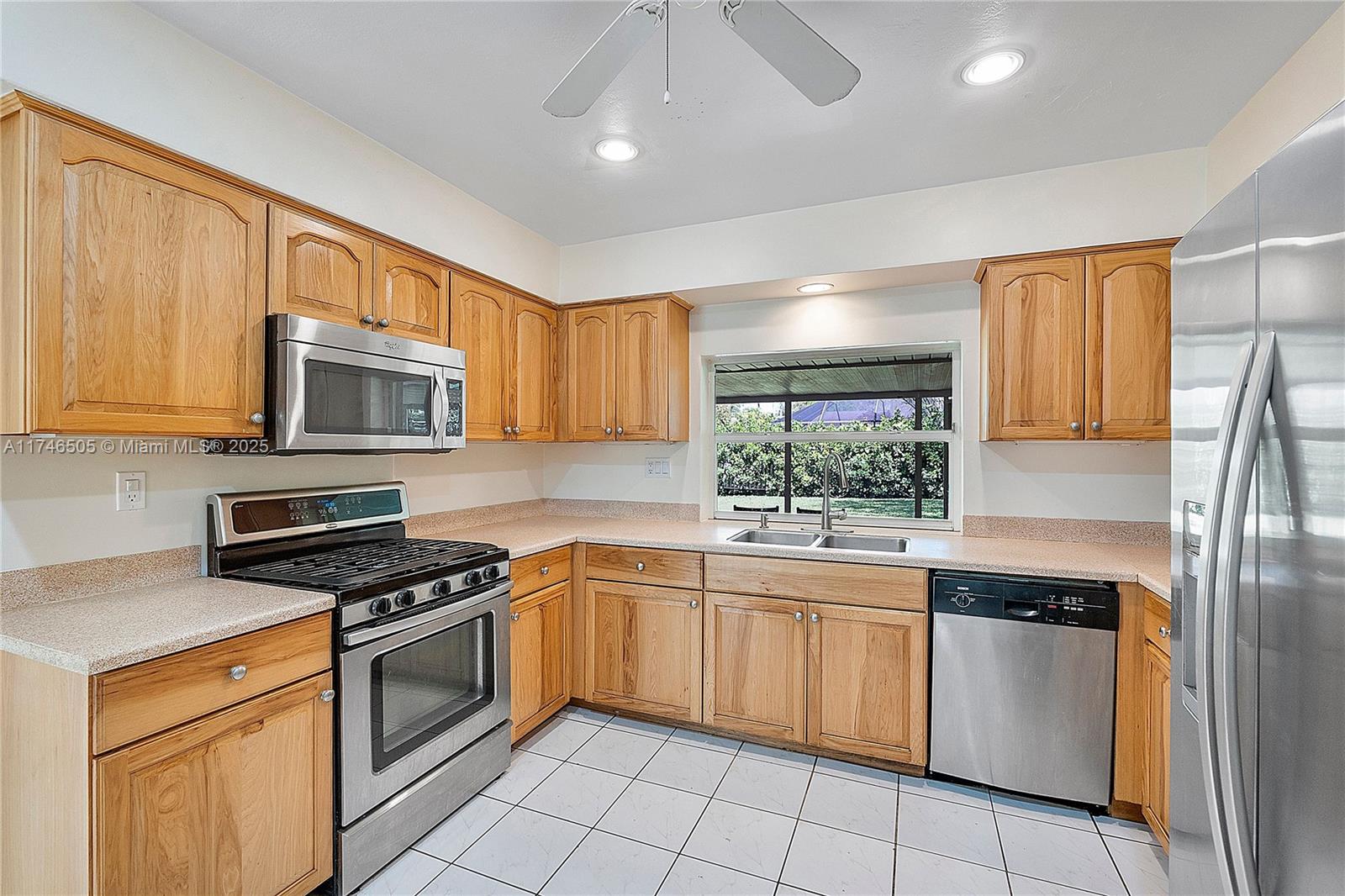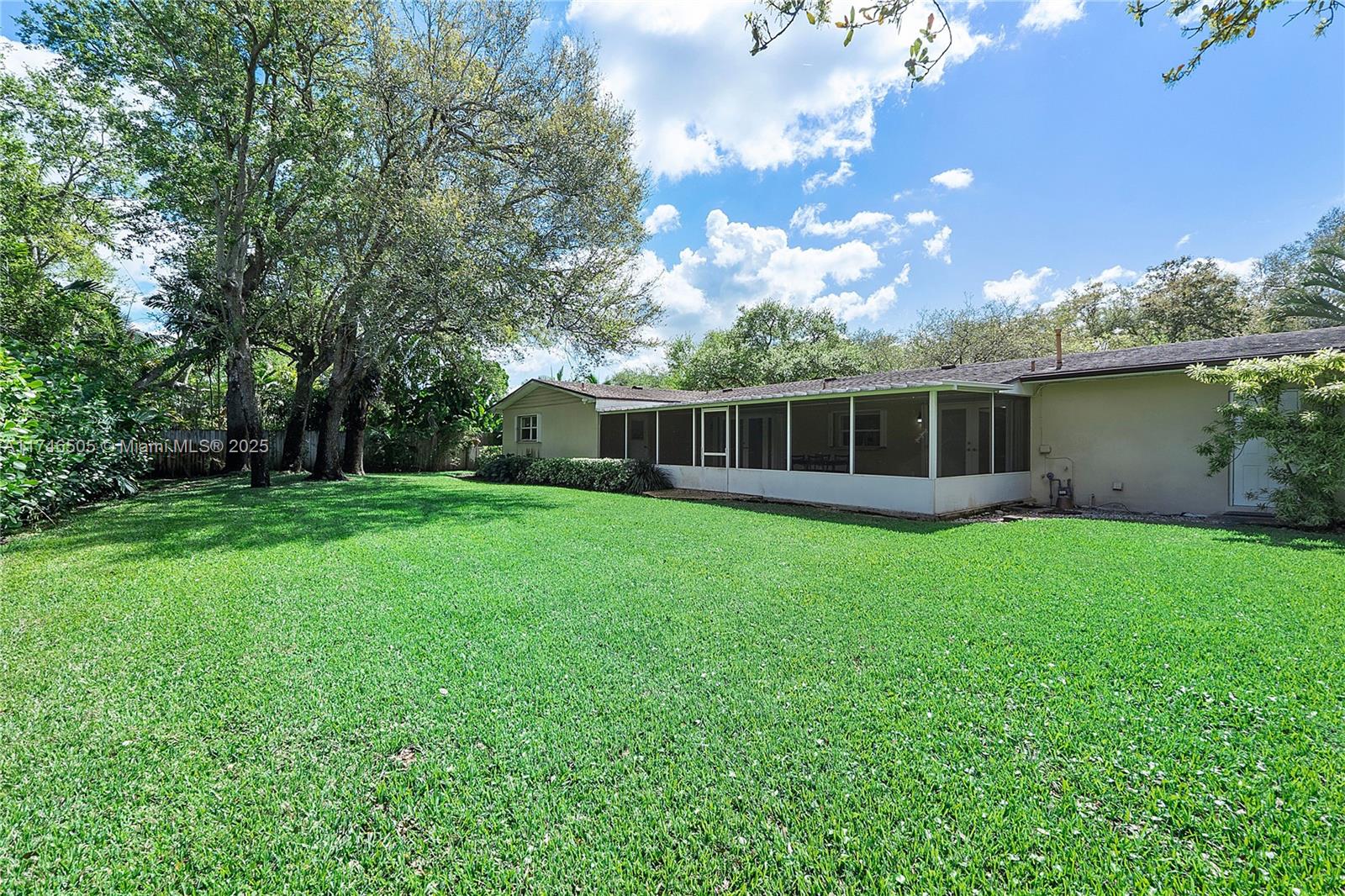 Well-maintained 4-bedroom, 2-bathroom home in Palmetto Bay. Kitchen is equipped with Stainless Steel Gas Range, Refrigerator, Microwave and Dishwasher with adjacent Breakfast area and Pantry with access to the garage. Laminate floors throughout. The Family room opens into a spacious covered screened Terrace overlooking a beautifully landscaped yard with plenty of room for family fun and recreation. Spacious Dining room and Living room with large windows which allows plenty of natural light to flood in. Plenty of parking spaces, 2 Car Garage and Circular Driveway. Washer, Dryer and a Freezer are conveniently located in the Garage. Gas Water Heater is only 2 years old. Close proximity to schools, major roadways, minutes from The Falls Shopping Center, Restaurants, Stores and a Fresh Market!