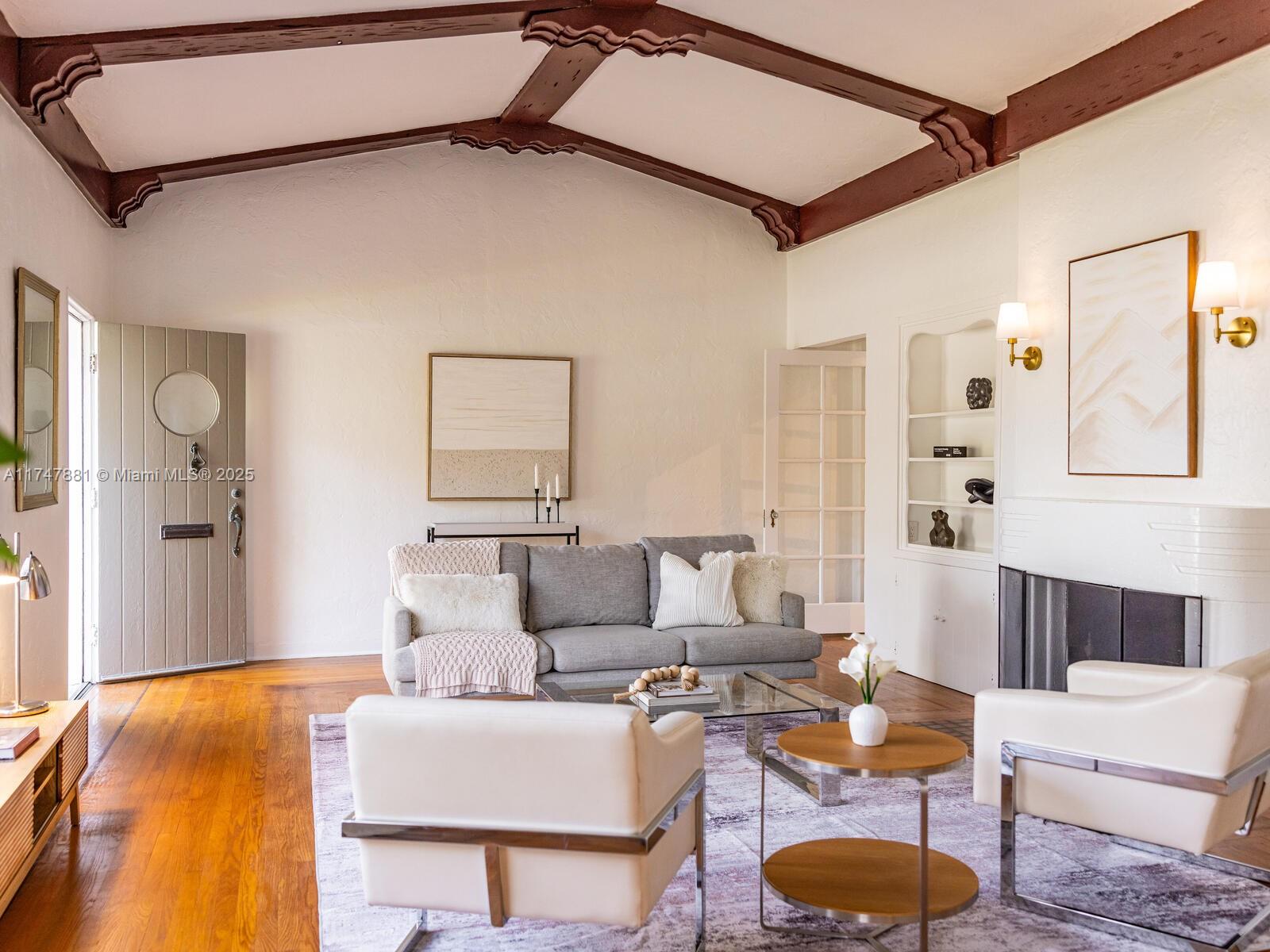 Welcome to Ten Oaks! Create your own dream home in this lovingly maintained, spacious early mid-century home on an oversized 12,900 SF lot enveloped by ten majestic oak trees. Enter into the grand vaulted great room with elegant formal dining, spacious kitchen, and bright sunroom den opening to the huge rear gardens. Three spacious bedrooms and two bathrooms in the main house, plus a separate detached 200+ SF bonus unit with powder room-- great as a home office, gym, zen den, or guest nook. Great features: timeless character and period charm, new roof (2024), vintage fireplace, retro custom built-ins, volume ceilings, plus a one-car garage, an additional carport, and bonus rear alley driveway. All in an amazing downtown Miami Shores non-flood zone location, with upside galore!