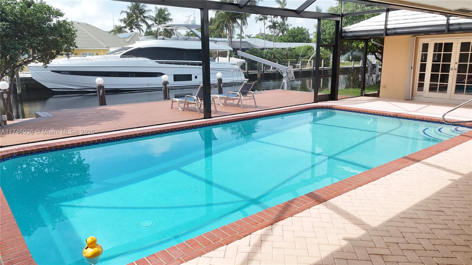 OCEAN ACCESS WITH NO FIXED BRIDGES!! Lot size 95’ x 110’, home features a brand-new dock, deck, screen enclosure, refinished diamond-bright pool, and fresh landscaping. Inside, enjoy the charm of original terrazzo flooring throughout with endless potential to the kitchen and bathrooms. The master suite features his-and-her walk-in closets and French doors leading to the heated pool. Hurricane shutters for storm protection. 2016 Roof & AC. Breathtaking sunsets from your own backyard. Minutes from the beach, top-rated schools, shopping, dining, and more.