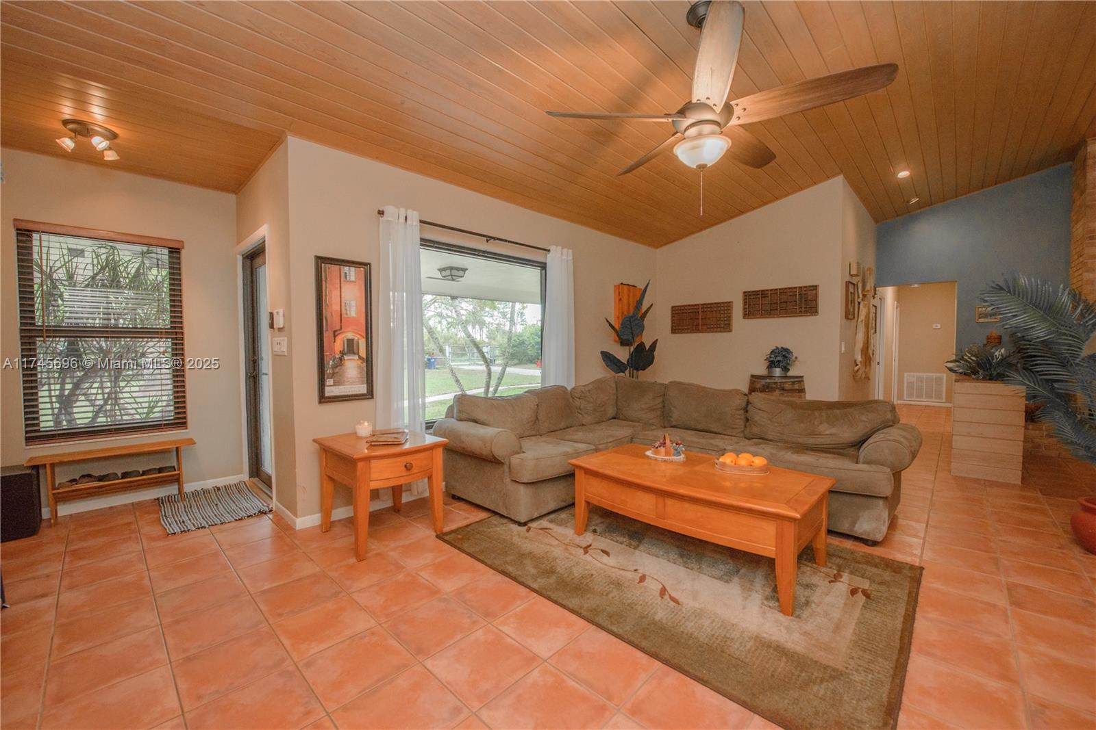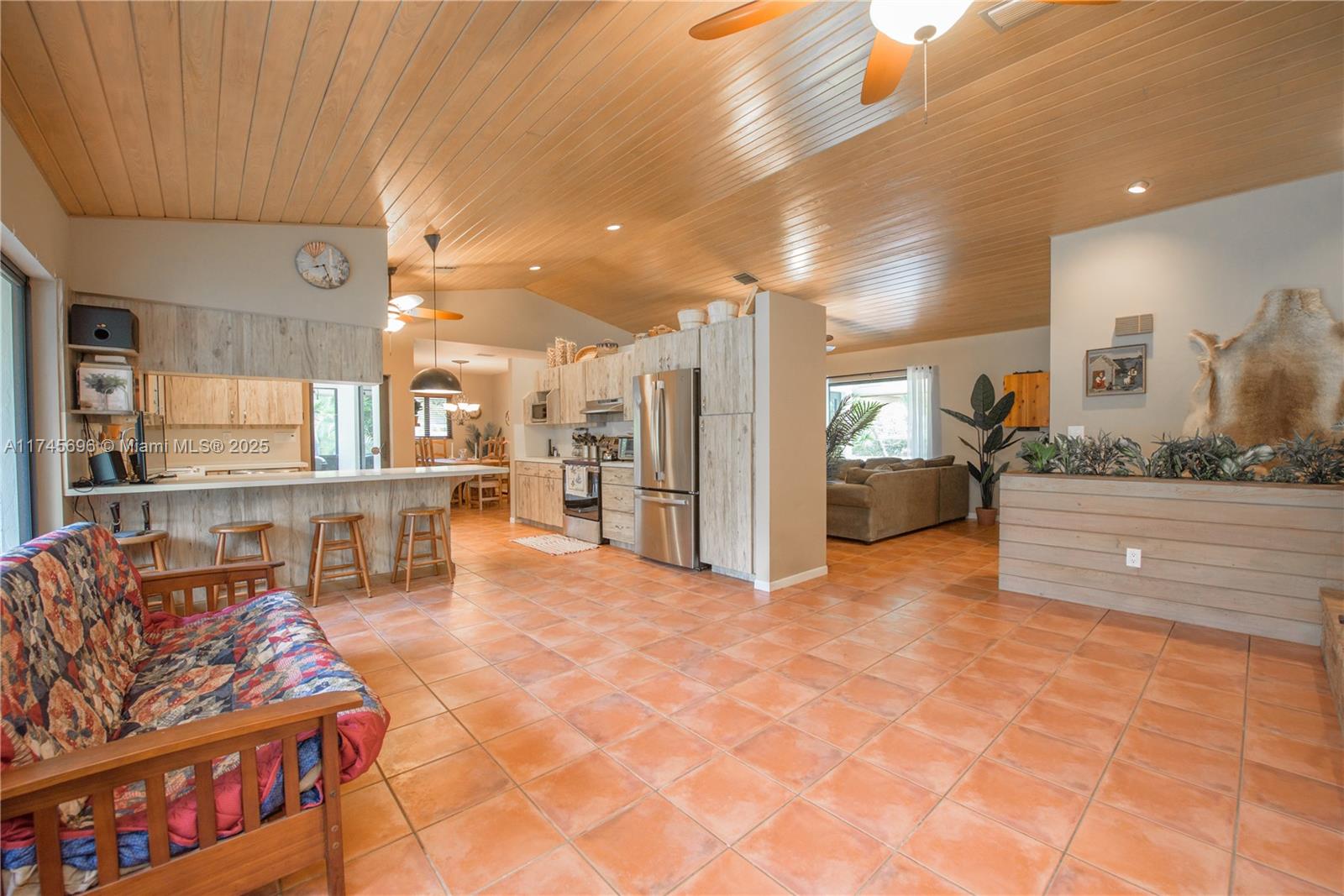 PRICE IMPROVEMENT. Rare opportunity to own a beautiful country home in South Redland! Nestled on 1.16 ac with many Fruit trees, including Avocado, Mango, Lychee, and Star fruit. Double gates and plenty of space to park all your boats, RVs, etc. This spacious home has 4 bedrooms and 2 Bathrooms and features a split bedroom plan. The living room boasts a large picture window for natural light and opens to the family room w/ a Brick fireplace. Terra-cotta tile throughout the home. Big laundry room that opens up to the Florida Room. Screened-in patio connected to the kitchen to watch the sunset and eat dinner in your backyard. This home is in great condition and ready for its next owner. Please call me for showings