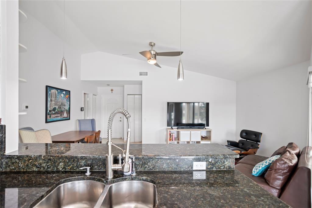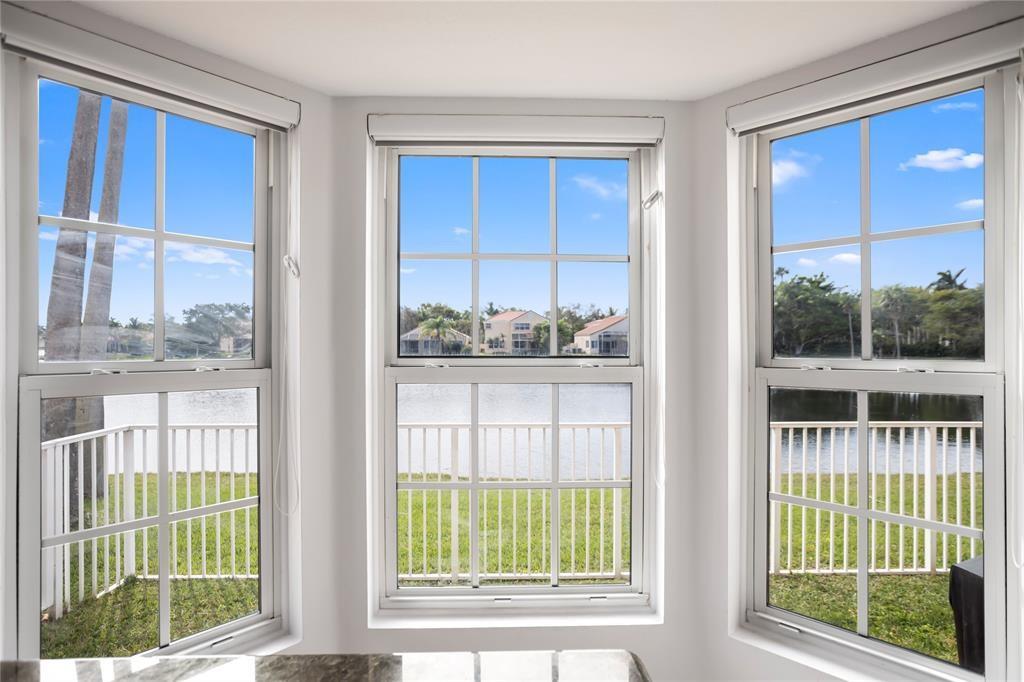 New Listing! Single story, bright and open floor plan, LONG tranquil water views with ideal southern exposure. FULL IMPACT WINDOWS AND SLIDERS THROUGHOUT. A/C 2023, WATER HEATER 2024, ROOF FROM 2006. Tile flooring throughout all living areas. The Kitchen features real wood cabinets, granite counters and stainless steel appliances. Both bathrooms have been tastefully updated to a clean modern look. Additional features include a large extended driveway, newer washer/dryer, a screened back porch and a small fenced yard. The garage was converted to a 3rd bedroom and a dedicated utility space. Walking distance to houses of worship, beautiful parks, Publix, shops and restaurants. "A" rated schools. Close to major highways.