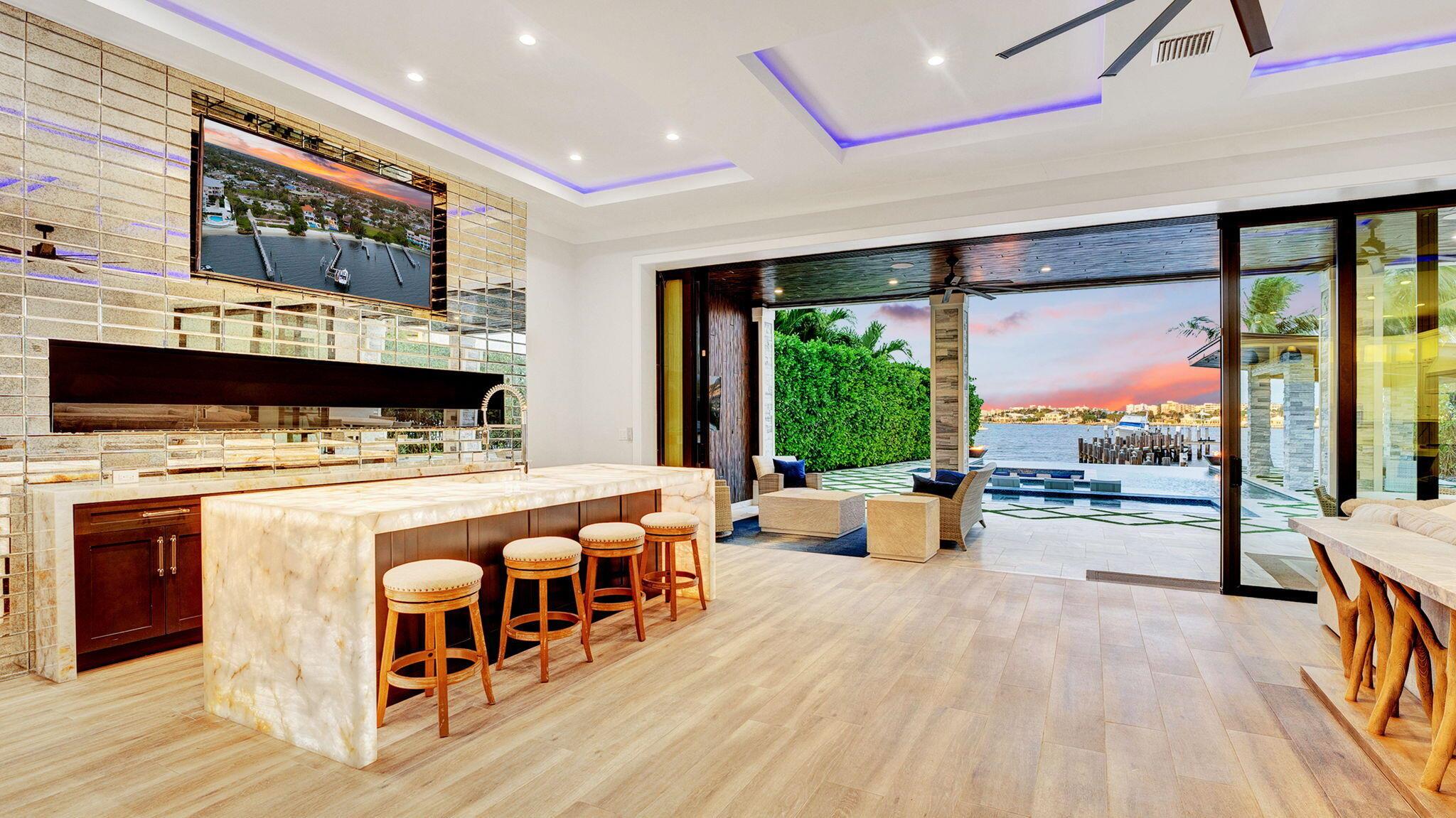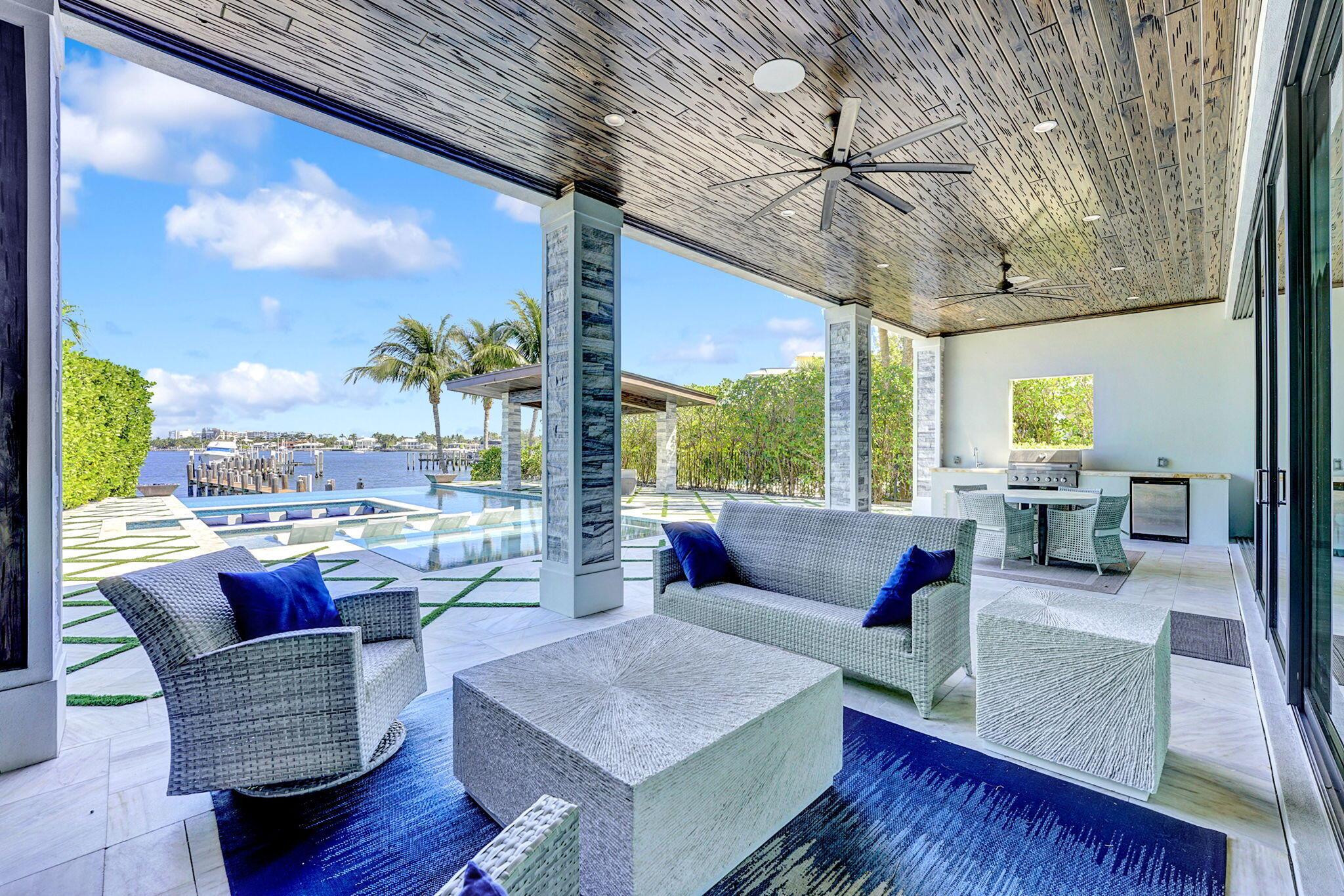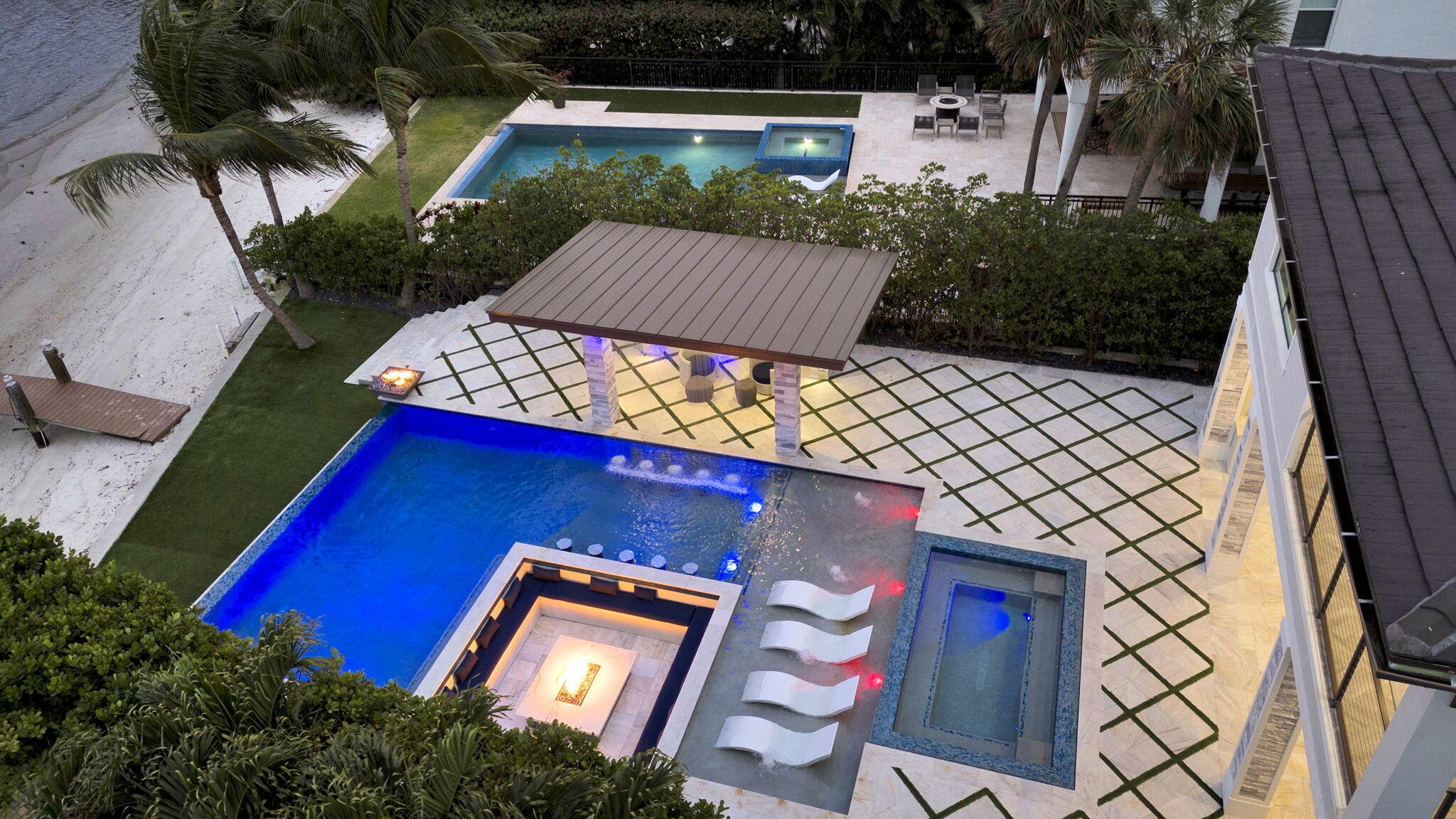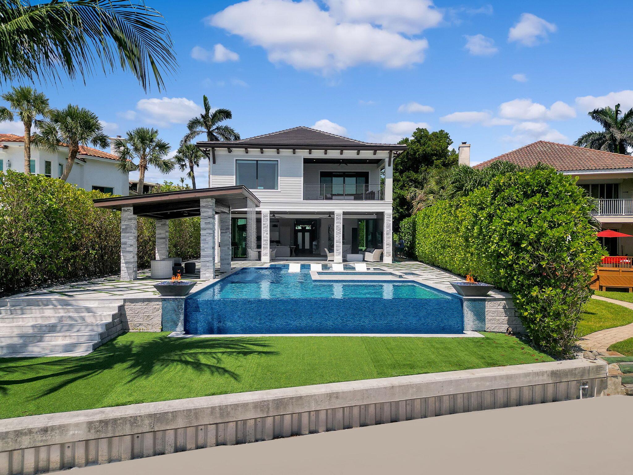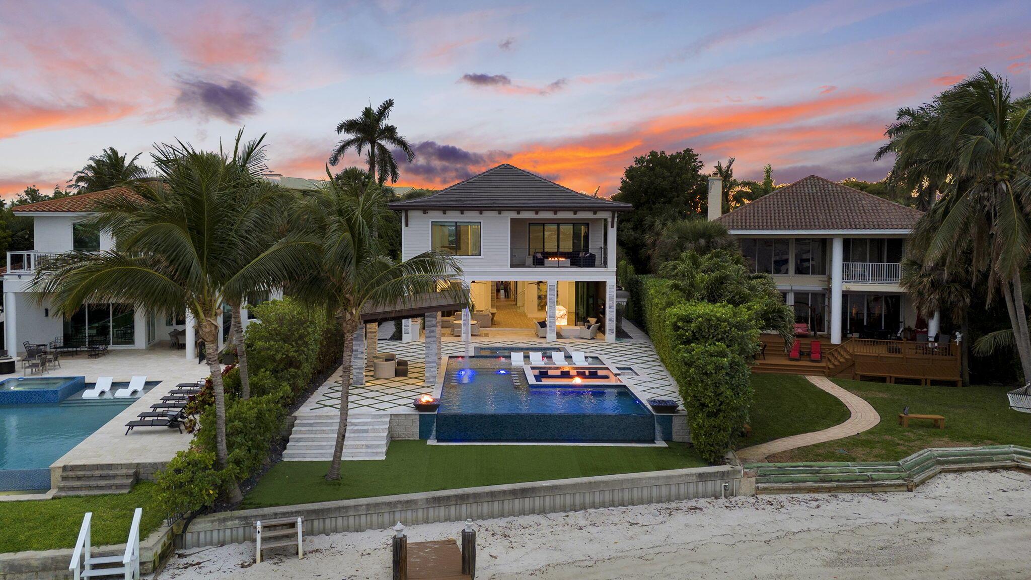 Luxury Waterfront Oasis - An Entertainer's Dream HomeExperience the pinnacle of coastal luxury in this magnificent five-bedroom, five-bathroom estate, perfectly positioned along the Intracoastal Waterway with breathtaking views of the ocean and Palm Beach Island. Designed for those who appreciate impeccable craftsmanship and top-tier amenities, this home offers the ultimate entertainer's paradise.Unrivaled Outdoor LivingInfinity-edge pool & spa overlooking the IntracoastalSunken fire pit with built-in seating for intimate waterfront gatheringsPrivate sandy beach--your own personal waterfront escapeCustom waterfall feature enhancing the tropical ambiancePrivate boat dock with 25,000-lb boat lift, perfect for yacht enthusiasts