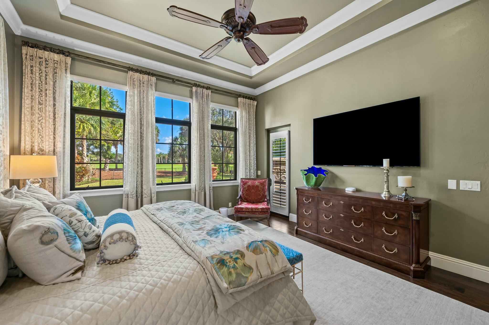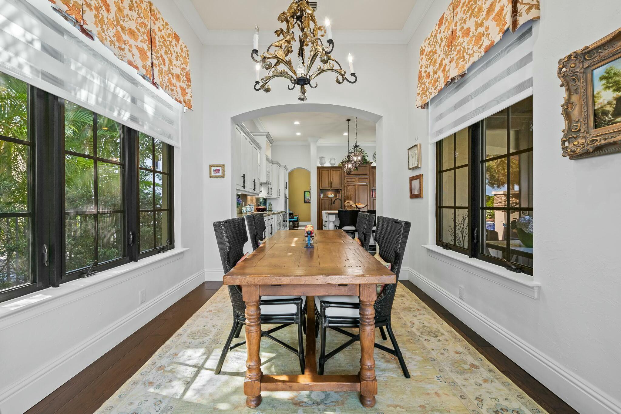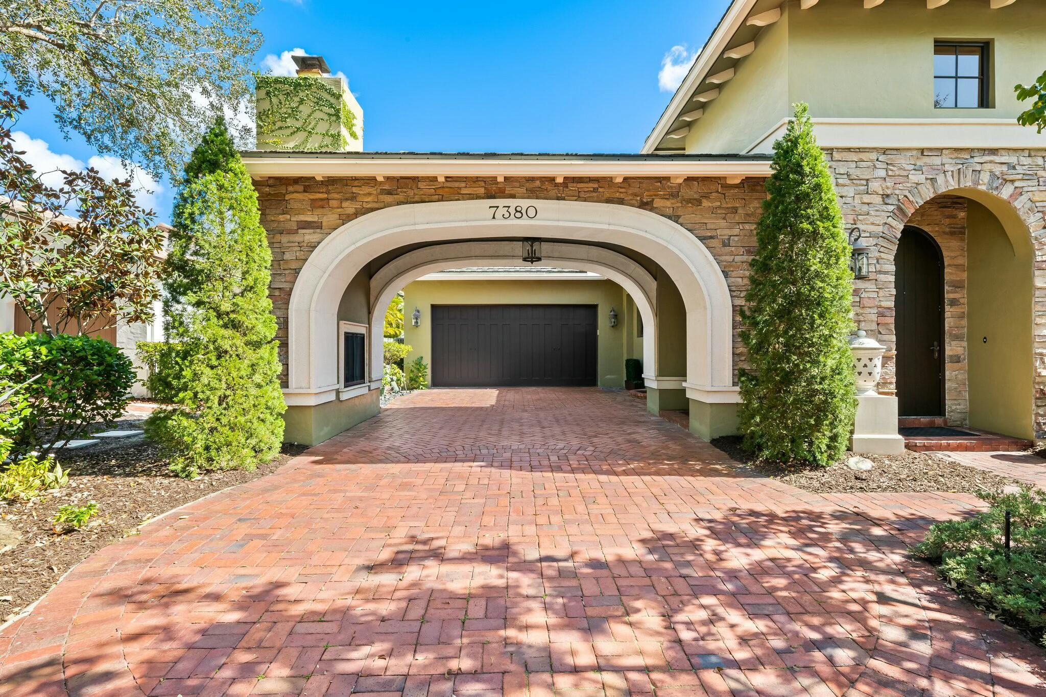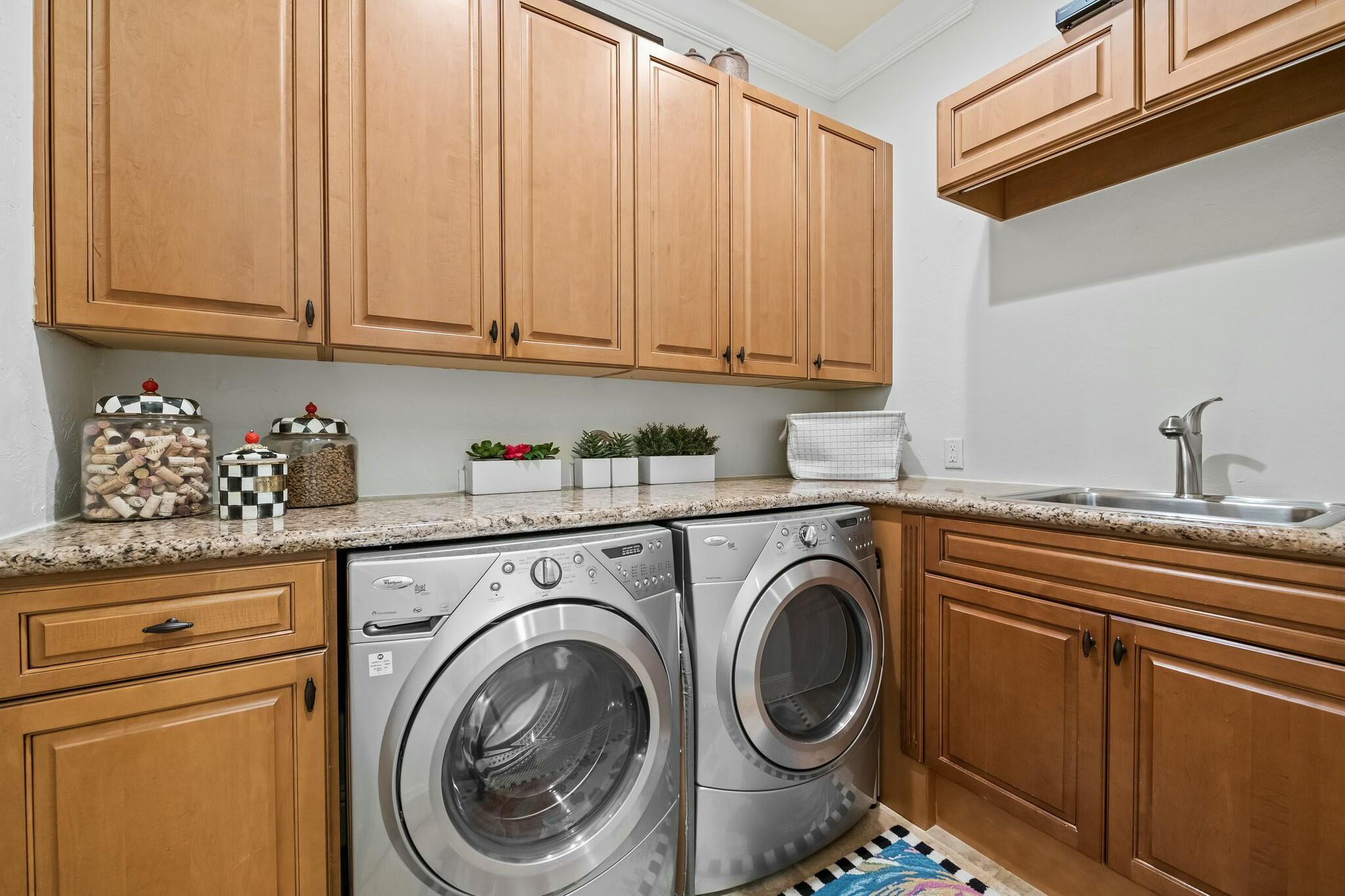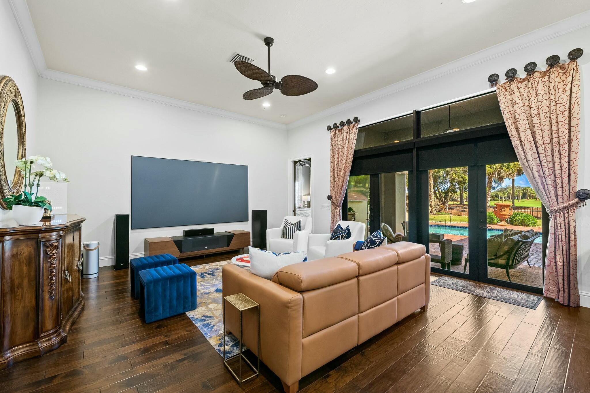 Welcome to this stunning home, located on a tranquil cul-de-sac with spectacular double fairway golf views and a spacious fenced lot. The entryway features a charming private porte-cochere and outdoor fireplace, offering a luxurious welcome. Inside, the home is beautifully renovated with elegant wood doors and flooring across the living areas, enhancing its warmth and grandeur. The gourmet kitchen is a chef's dream, equipped with high-end Wolf induction cooktop and ovens, a Miele dishwasher, a SubZero refrigerator, and ample storage with pull-out drawers and a large island perfect for entertaining. This thoughtfully designed single-story open floor plan includes a guest wing at the front and an expansive primary suite at the rear, both offering delightful views of the pool & golf course.