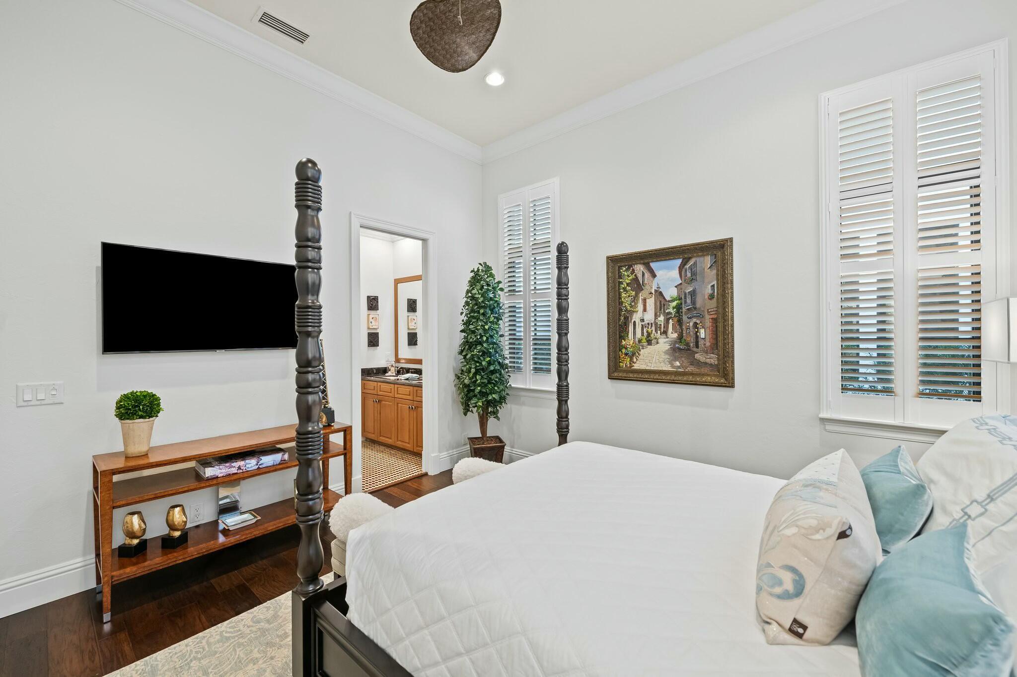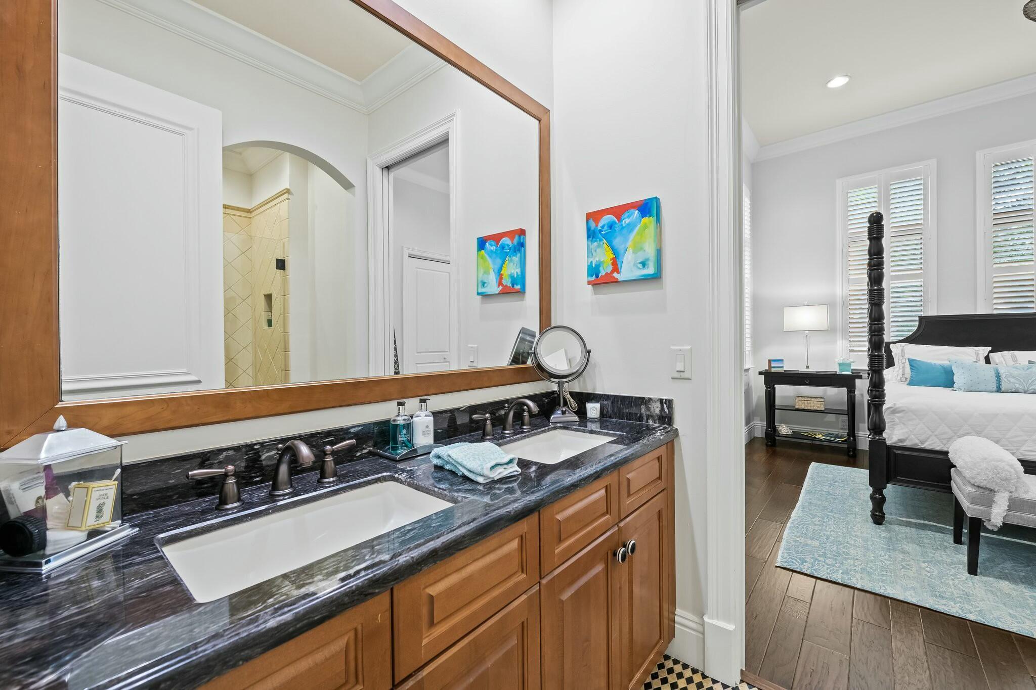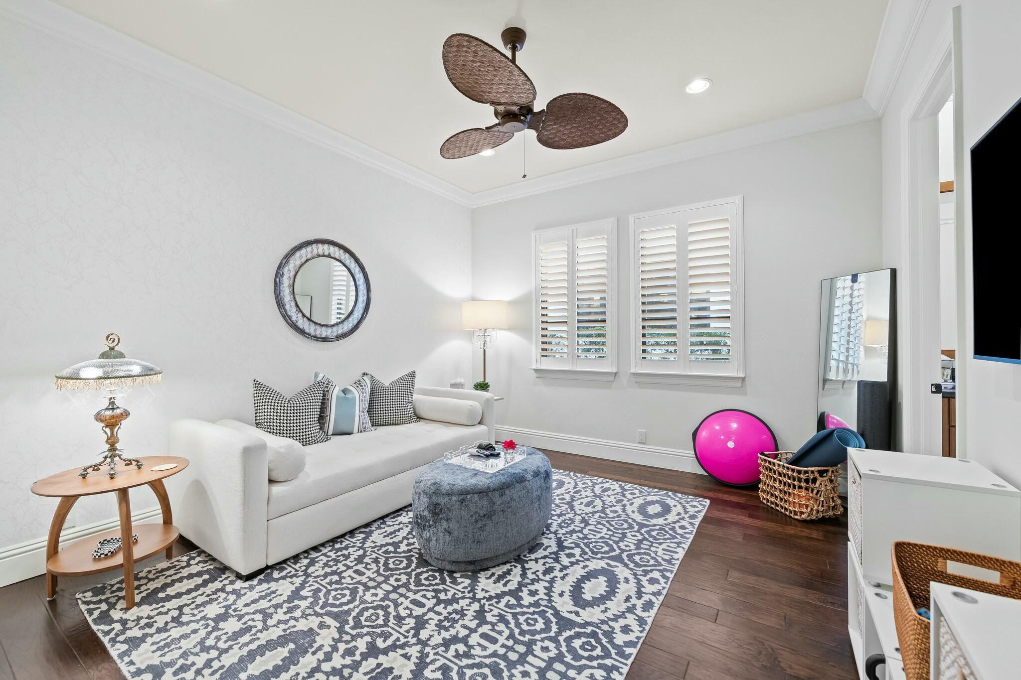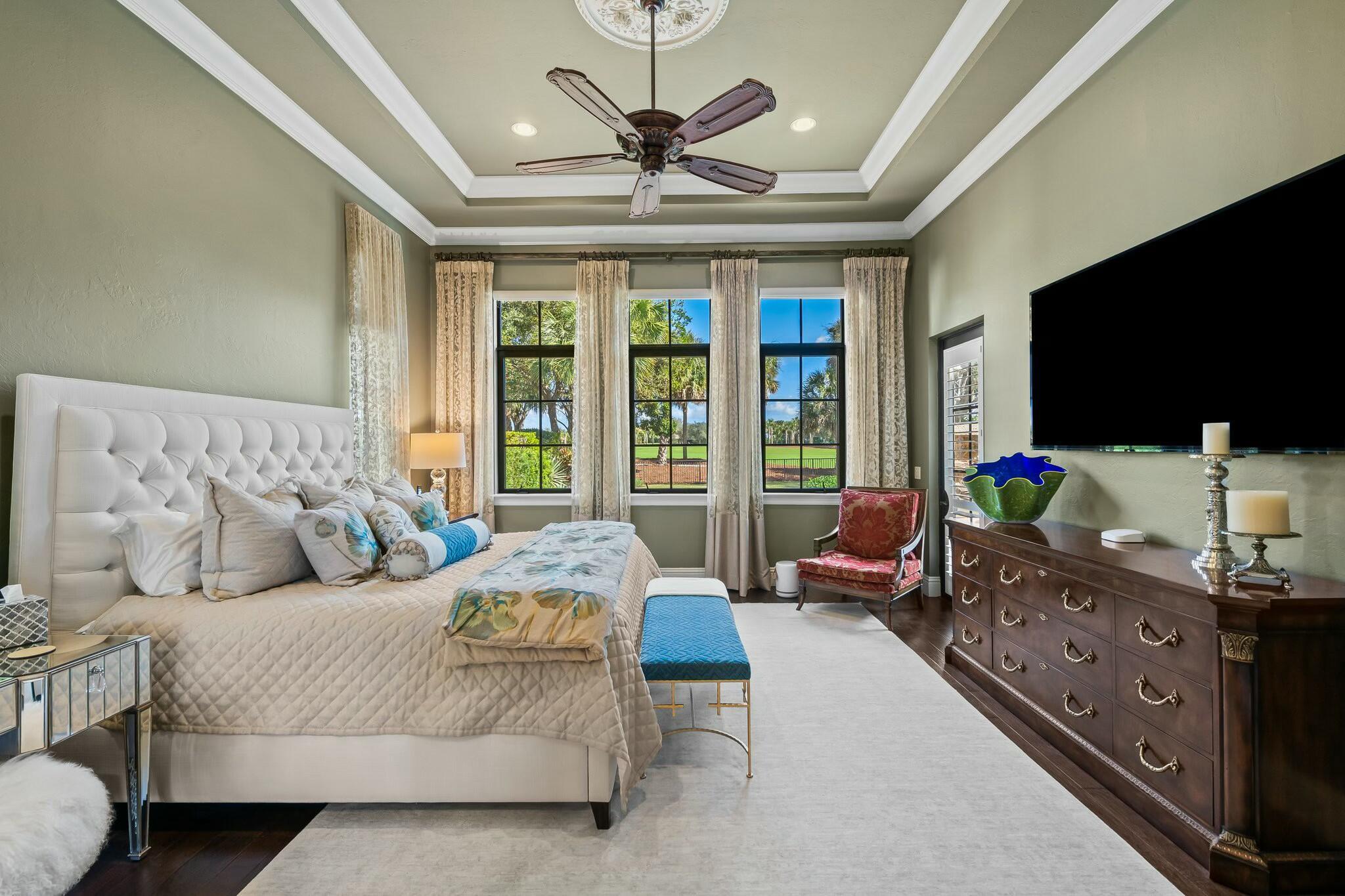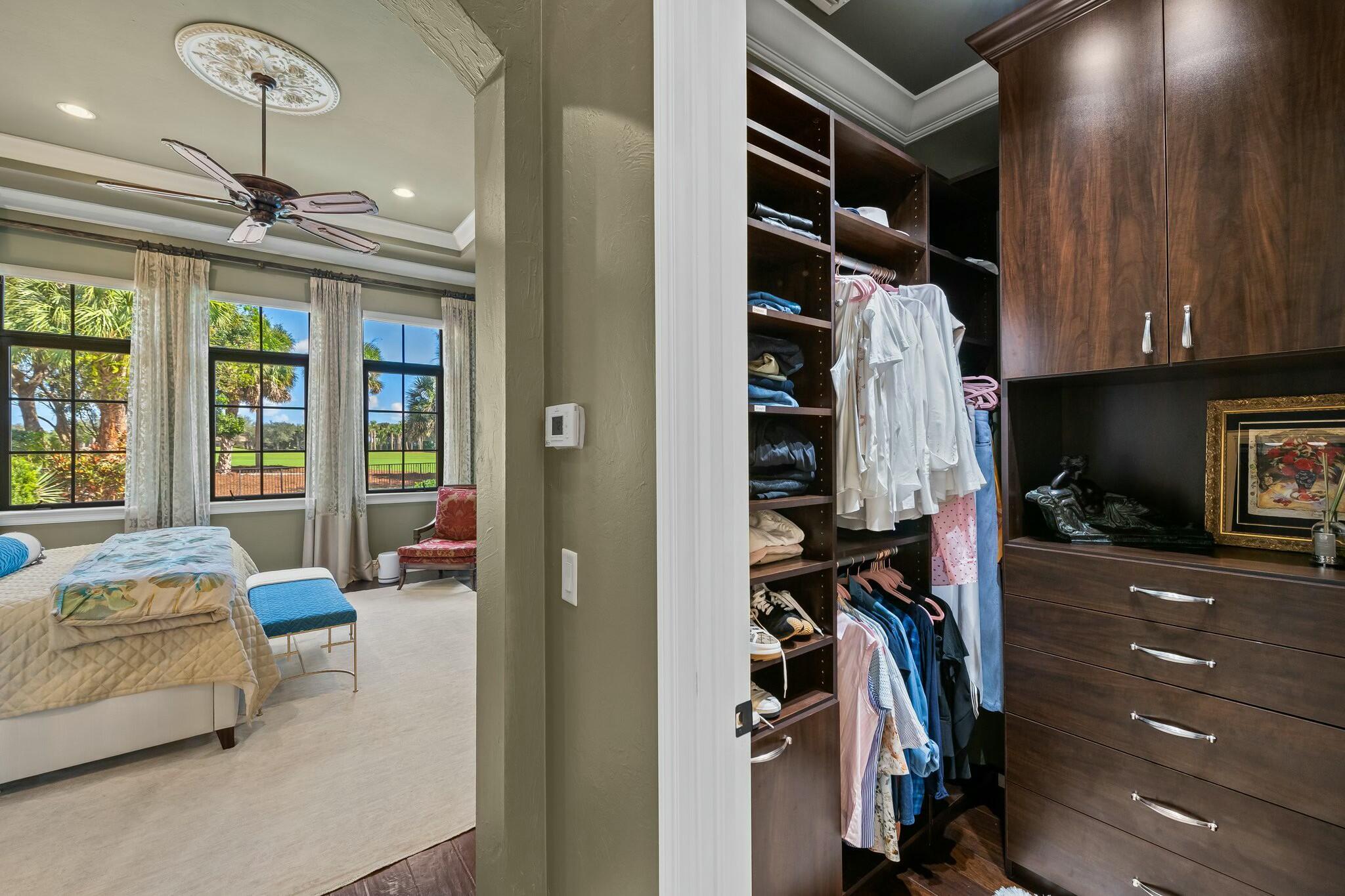 Welcome to this stunning home, located on a tranquil cul-de-sac with spectacular double fairway golf views and a spacious fenced lot. The entryway features a charming private porte-cochere and outdoor fireplace, offering a luxurious welcome. Inside, the home is beautifully renovated with elegant wood doors and flooring across the living areas, enhancing its warmth and grandeur. The gourmet kitchen is a chef's dream, equipped with high-end Wolf induction cooktop and ovens, a Miele dishwasher, a SubZero refrigerator, and ample storage with pull-out drawers and a large island perfect for entertaining. This thoughtfully designed single-story open floor plan includes a guest wing at the front and an expansive primary suite at the rear, both offering delightful views of the pool & golf course.
