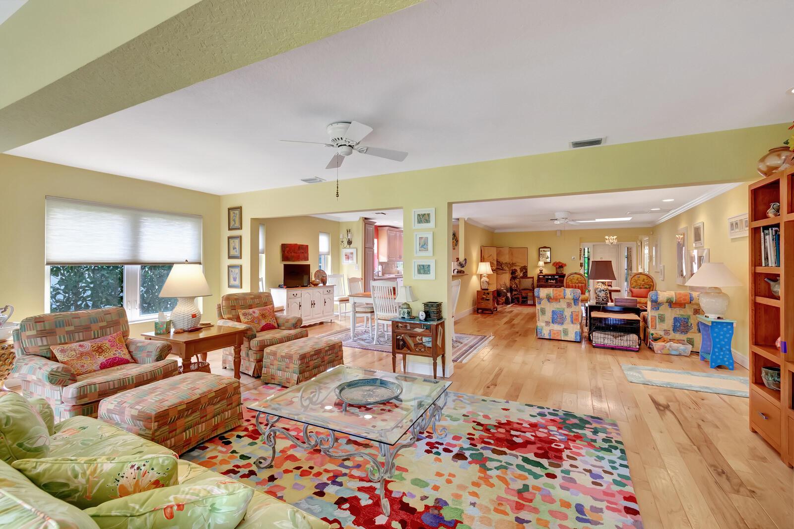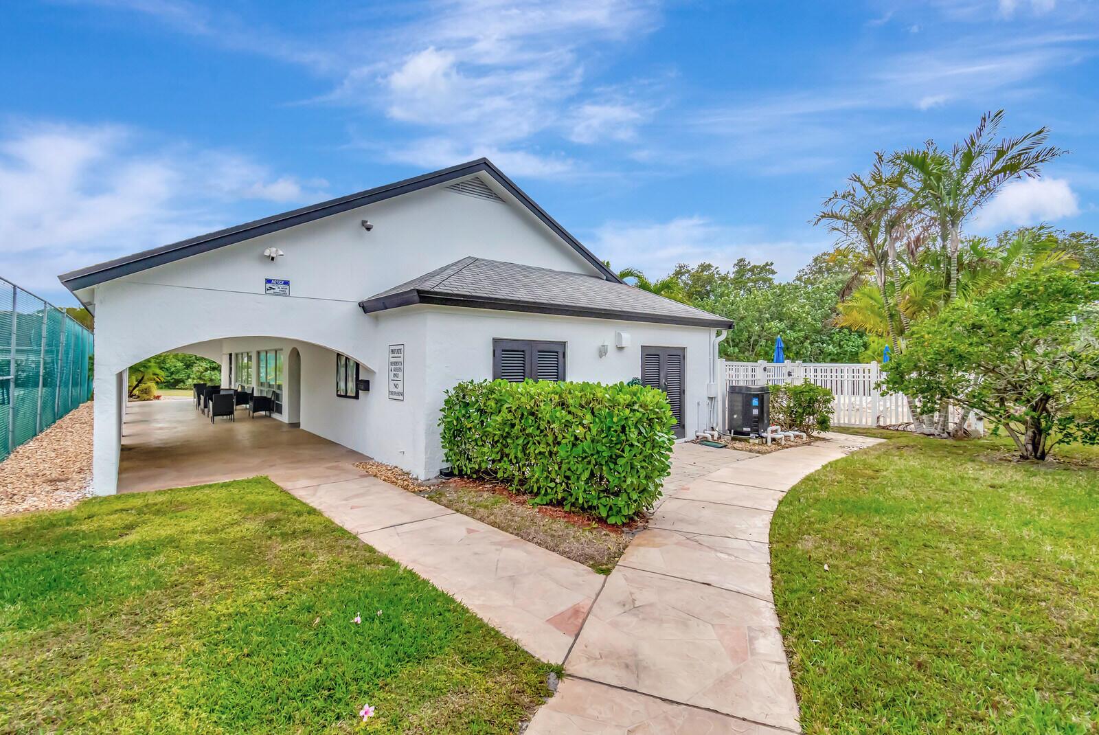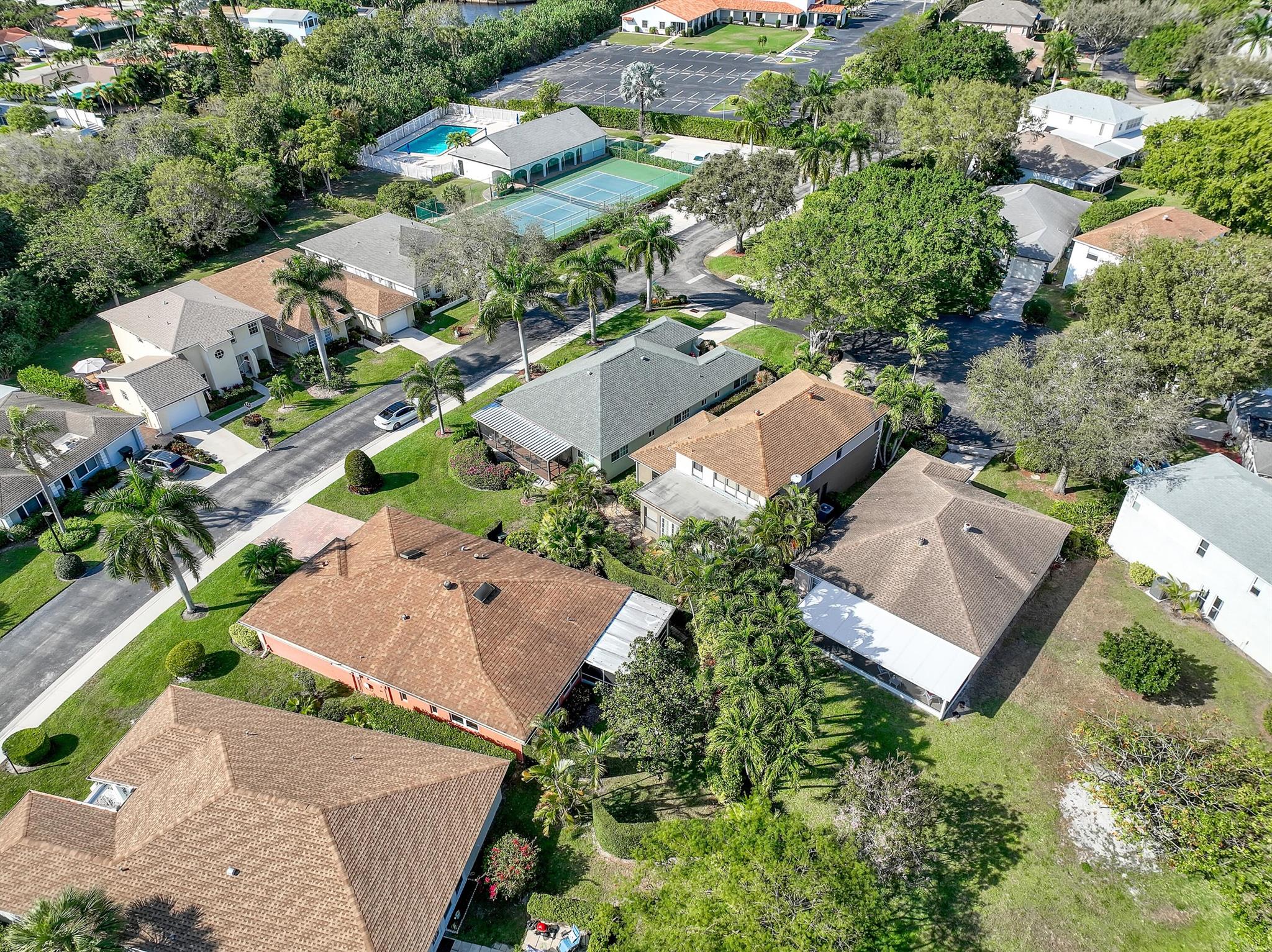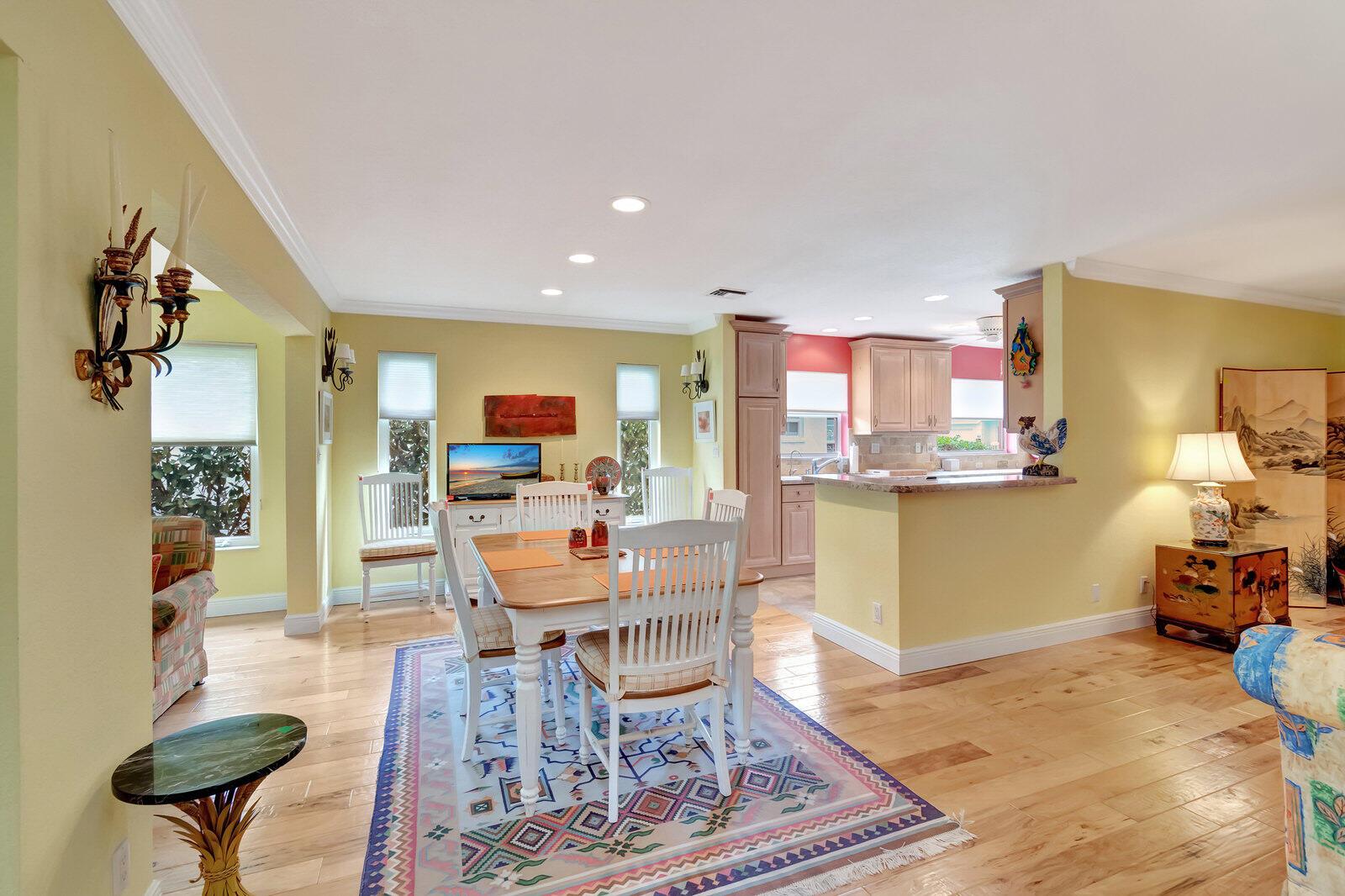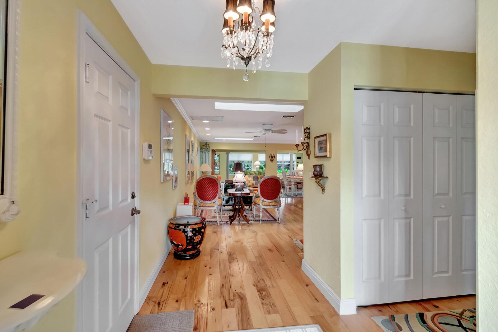 Very Spacious and open 2 BR, 2 Bath single family home with extended family room and screen porch in rear yard overlooking tropical landscaping. Tastefully updated in 2005 with Beautiful Hickory wood floors throughout (except for carpeting in BR 2). Granite/whitewash cabinetry in kitchen and bathrooms give a beachy feel. Crown molding, textured ceilings, hi hat lighting and 2 skylights in living area add lots of light. Impact glass throughout home. One car garage with laundry area & utility sink, pull down attic steps. Paver Driveway. Mini bar in rear area of home, extra half dishwasher in kitchen for those small loads. HOA fee includes basic lawn care, community pool, tennis/pickleball courts. Just .5 mile to downtown Boca Raton, 1 mile to Mizner Park & Brightline train station.