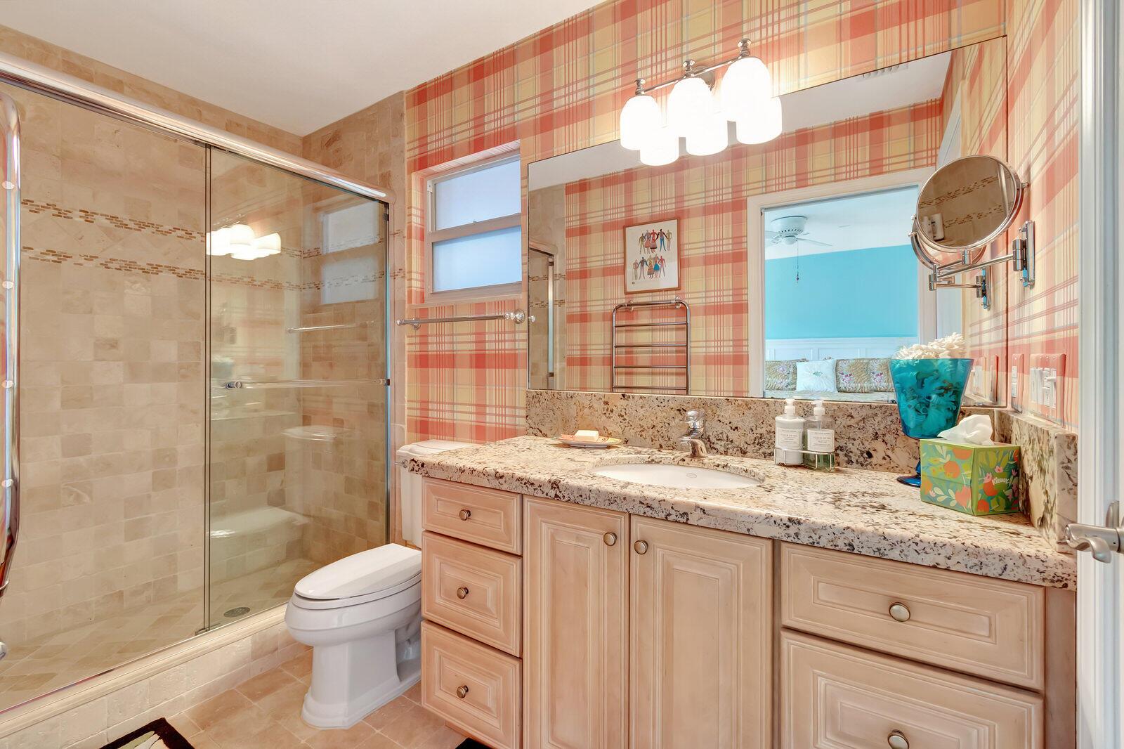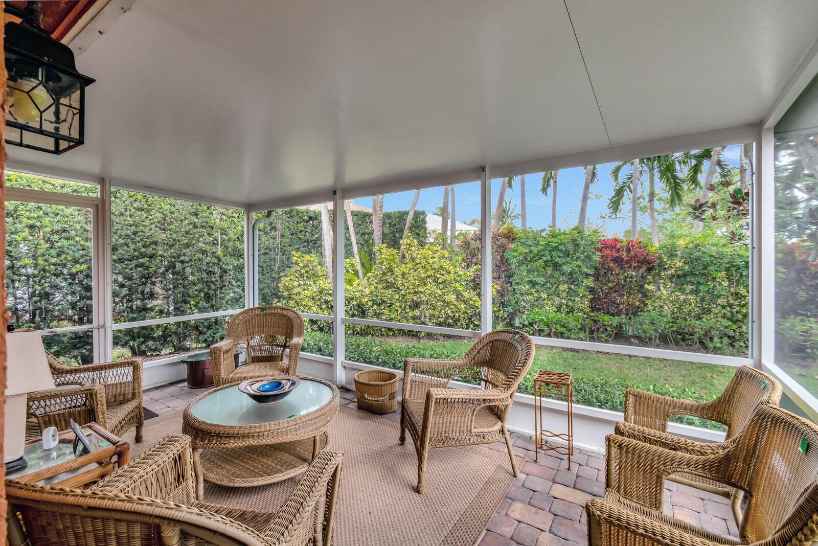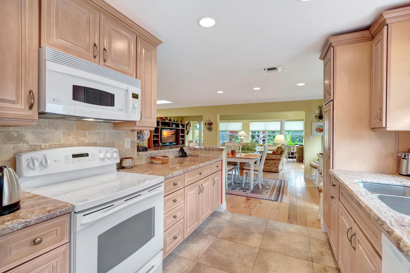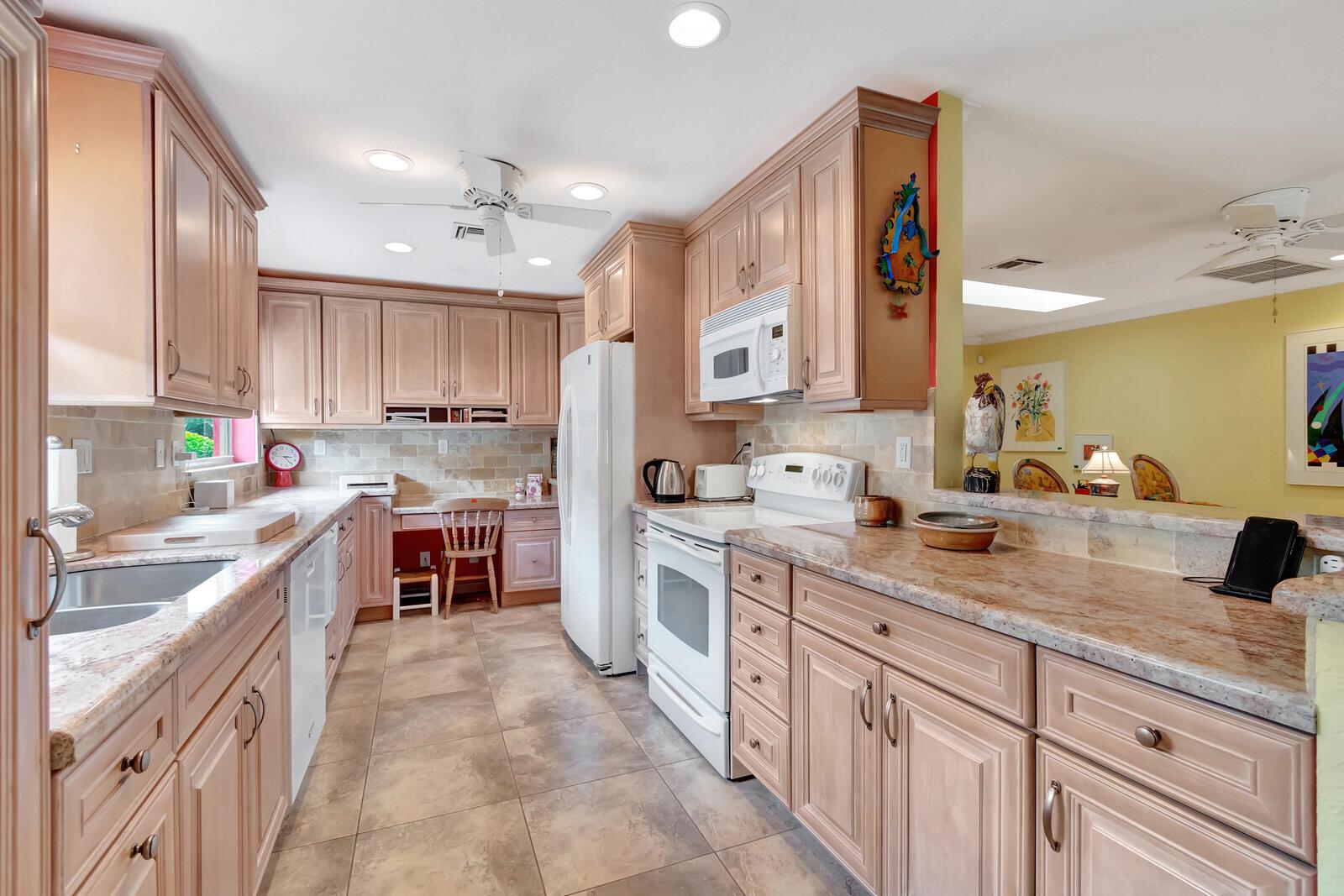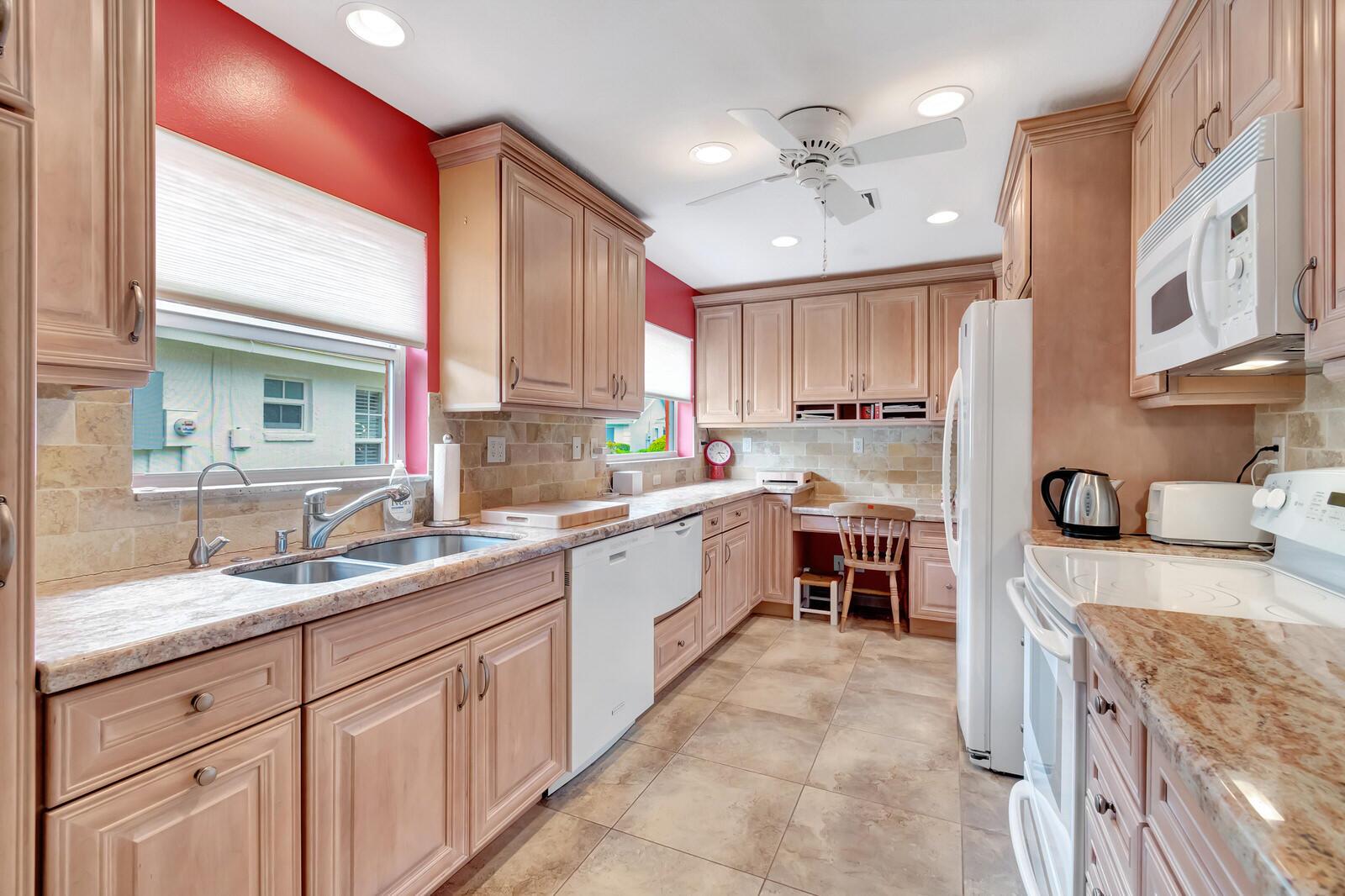 Very Spacious and open 2 BR, 2 Bath single family home with extended family room and screen porch in rear yard overlooking tropical landscaping. Tastefully updated in 2005 with Beautiful Hickory wood floors throughout (except for carpeting in BR 2). Granite/whitewash cabinetry in kitchen and bathrooms give a beachy feel. Crown molding, textured ceilings, hi hat lighting and 2 skylights in living area add lots of light. Impact glass throughout home. One car garage with laundry area & utility sink, pull down attic steps. Paver Driveway. Mini bar in rear area of home, extra half dishwasher in kitchen for those small loads. HOA fee includes basic lawn care, community pool, tennis/pickleball courts. Just .5 mile to downtown Boca Raton, 1 mile to Mizner Park & Brightline train station.
