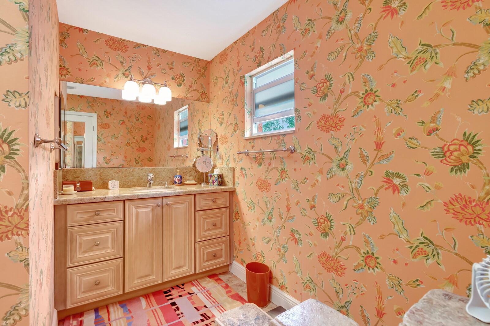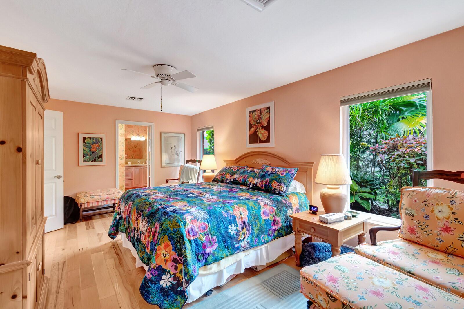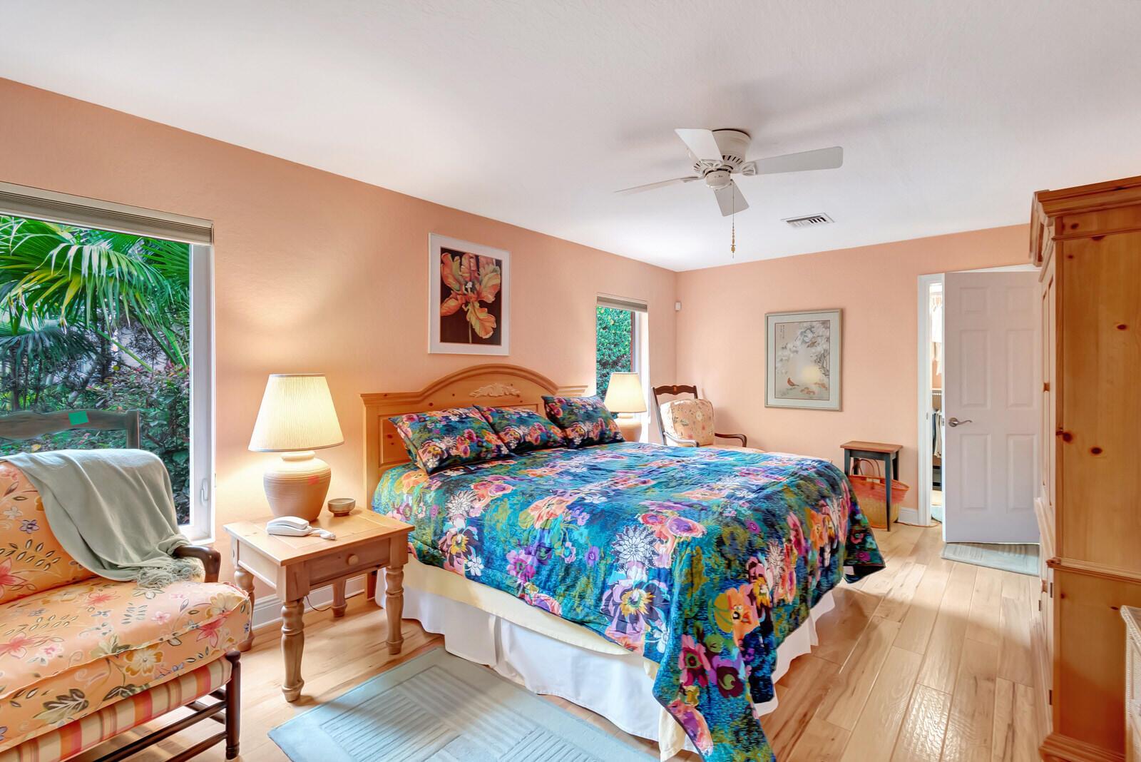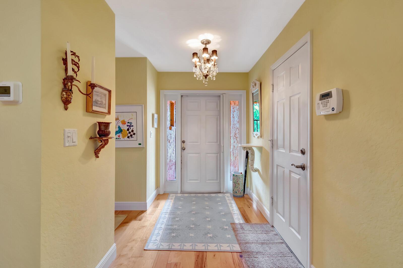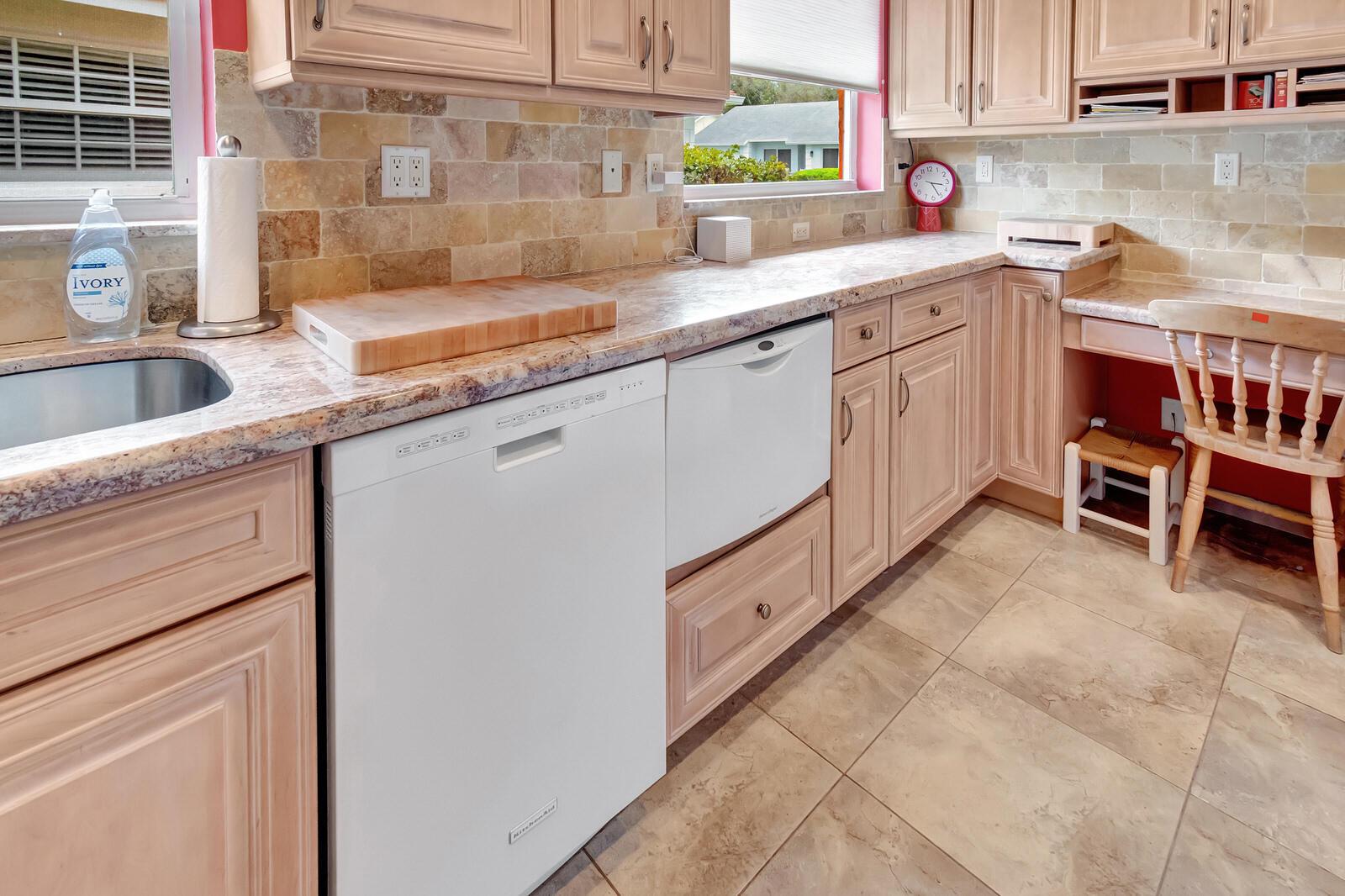 Very Spacious and open 2 BR, 2 Bath single family home with extended family room and screen porch in rear yard overlooking tropical landscaping. Tastefully updated in 2005 with Beautiful Hickory wood floors throughout (except for carpeting in BR 2). Granite/whitewash cabinetry in kitchen and bathrooms give a beachy feel. Crown molding, textured ceilings, hi hat lighting and 2 skylights in living area add lots of light. Impact glass throughout home. One car garage with laundry area & utility sink, pull down attic steps. Paver Driveway. Mini bar in rear area of home, extra half dishwasher in kitchen for those small loads. HOA fee includes basic lawn care, community pool, tennis/pickleball courts. Just .5 mile to downtown Boca Raton, 1 mile to Mizner Park & Brightline train station.