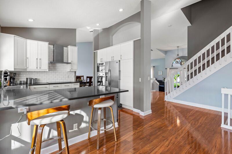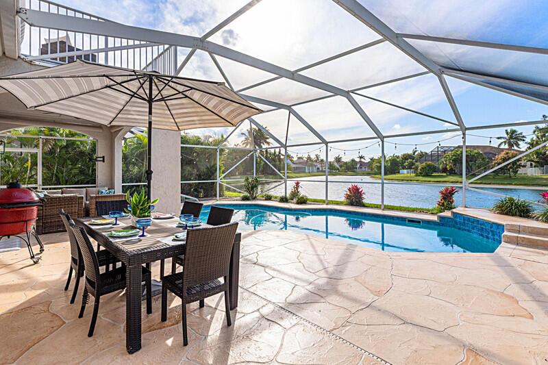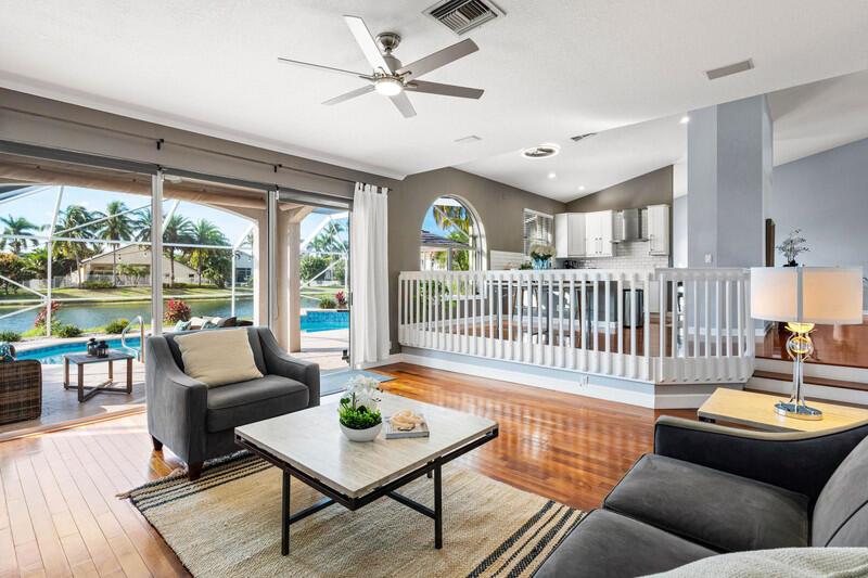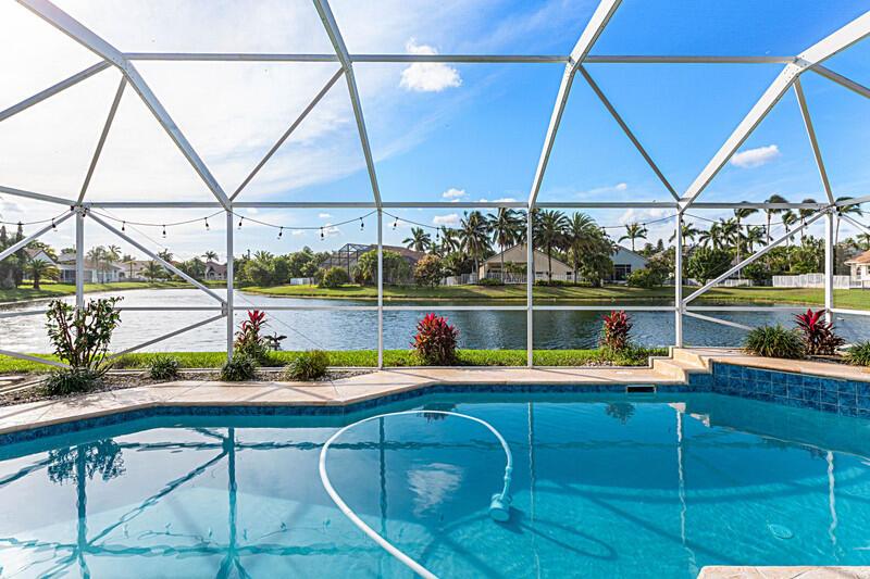 Welcome home to this 4 bedroom, 3 full bath, 3 car garage, stunning lakefront pool home in beautiful Boca Isles South. This remodeled home has ALL the bells & whistles. Features include a fabulous chef's kitchen w/ white cabinets, quartz countertops, & stainless steel appliances, updated bathrooms, 2017 roof, accordion shutters throughout, hardwood & laminate flooring, high end fixtures & fans, beautiful landscape lighting, & the list goes on. This immaculate home has an open floorplan with one full bedroom & one full bathroom on the first floor, & three bedrooms (including the primary w/ its own private baclcony overlooking the lake) upstairs. Enjoy the beautiful sunsets by your private screened in pool w/ long lake views. Boca Isles South is a 24/7 gated community w/ fabulous amenities.