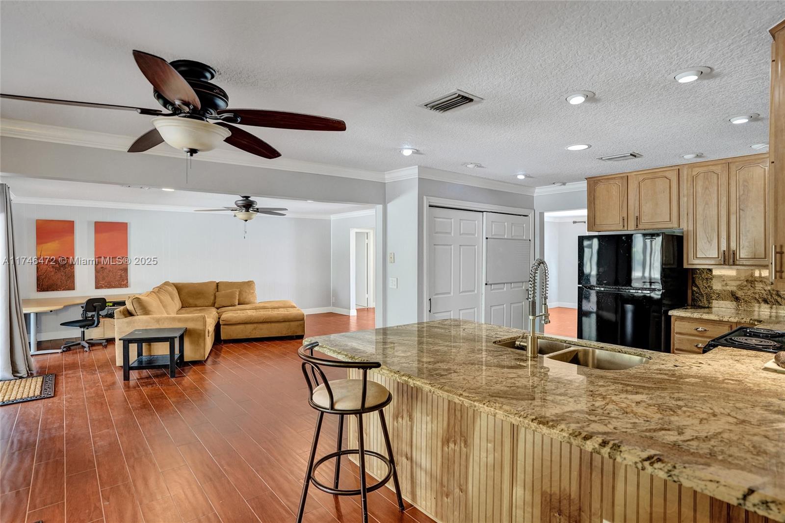 WOW! OVER 2,400 SQ. FT. LIVING AREA IN THIS CUSTOM-BUILT HOME WITH A BRAND-NEW DECEMBER 2024 ROOF! MAGNIFICENT .34 ACRE WATERFRONT LOT ON A QUIET STREET! UPDATED NATURAL CHERRY AND GRANITE KITCHEN! UPDATED PORCELAIN FLOORING! UPDATED GUEST BATH! HURRICANE IMPACT GARAGE DOOR AND 2 IMPACT SLIDING DOORS! ROLL-UP SHUTTERS FOR WINDOWS! FRESHLY PAINTED EXTERIOR! PLEASE SEE FACT SHEET!