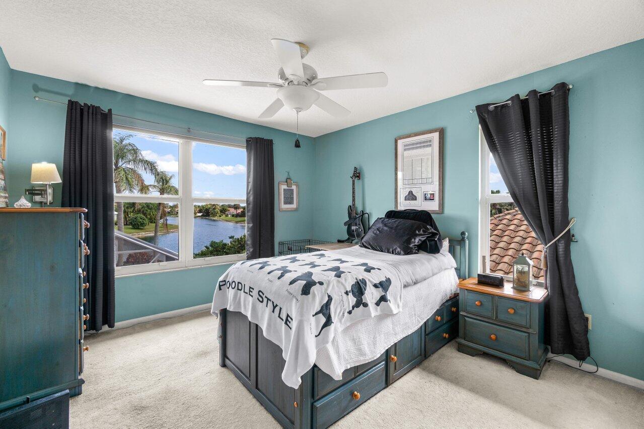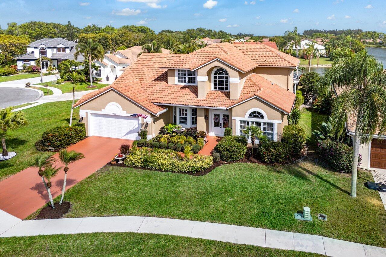THIS ABSOLUTELY STUNNING POOL & WATERFRONT HOME w/ SPECTACULAR 3 WAY LAKE VIEWS FEATURES 4 BEDROOMS, DEN/OFFICE PLUS A BONUS LOFT & 3.5 BATHS! THIS IS ''THE SHOWCASE HOME'' ON THE BEST(13,000 sq ft) LOT IN ALL OF LAKES OF BOCA RATON SITUATED AT THE ENTRANCE TO A PEACEFUL CUL-DU-SAC. PRIMARY SUITE & HOME OFFICE ON THE FIRST FLOOR AND 3 BEDROOMS PLUS LOFT (easily converted to a 5th bedroom) UPSTAIRS. EXTREMELY SPACIOUS PRIMARY SUITE FEATURES AN ENORMOUS WALK IN CLOSET & VIEWS TO THE POOL & LAKE THROUGH THE BEAUTIFUL FRENCH DOORS. HURRICANE IMPACT WINDOWS & NEWER A/C'S. LARGE SCREEN ENCLOSED PATIO W/ COVERED AREA IDEAL FOR ENTERTAINING & LARGE BACKYARD GREAT FOR CHILDREN & DOGS TO PLAY! IF YOU ARE LOOKING FOR SPACIOUSNESS INSIDE & OUT, A SERENE LOCATION & A-RATED SCHOOLS...THIS IS IT!