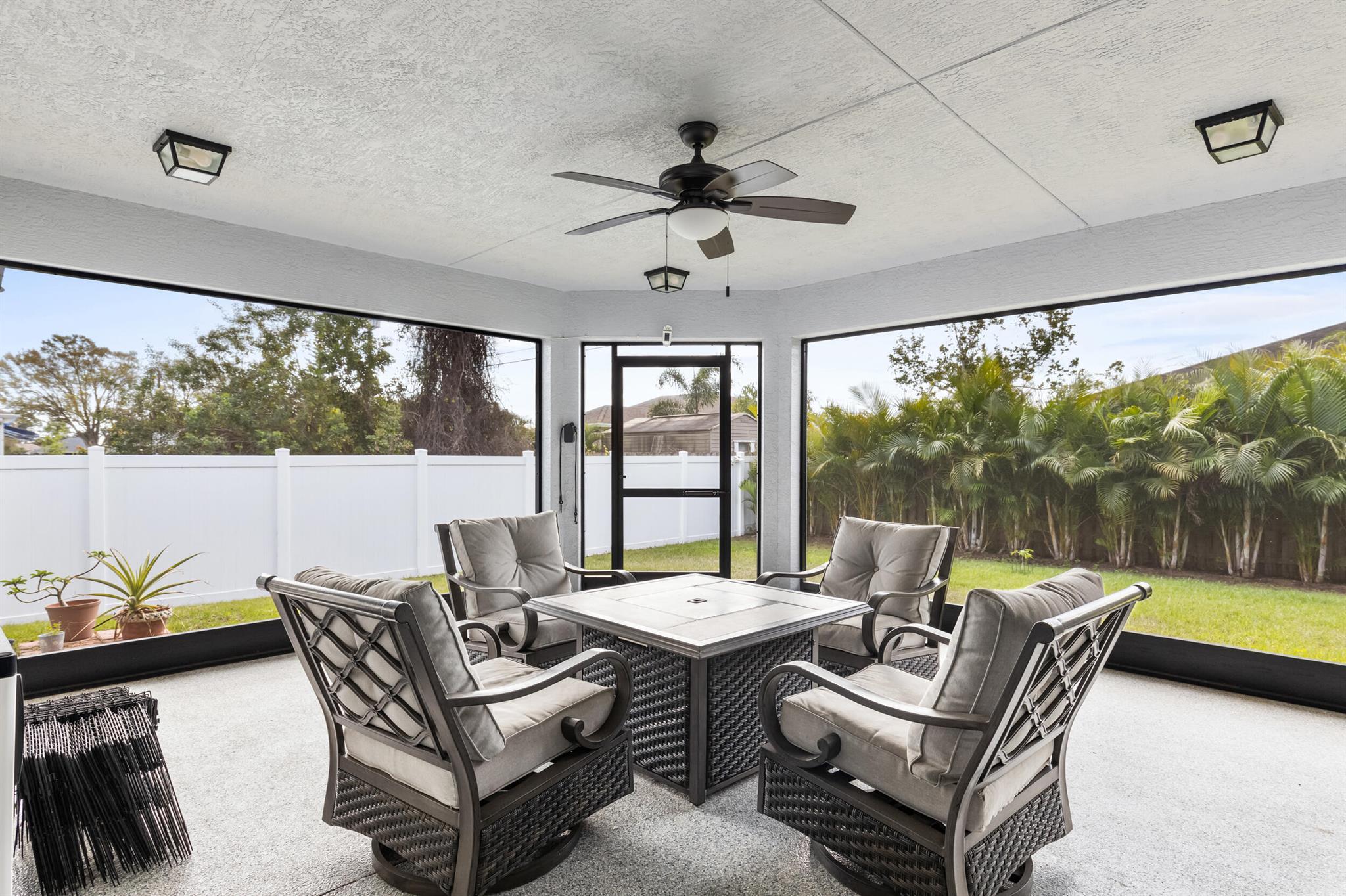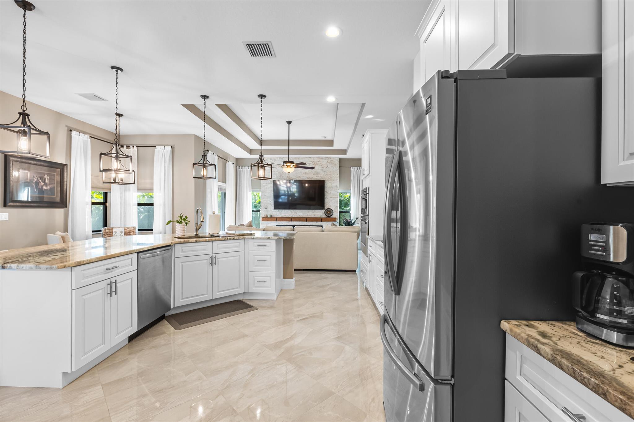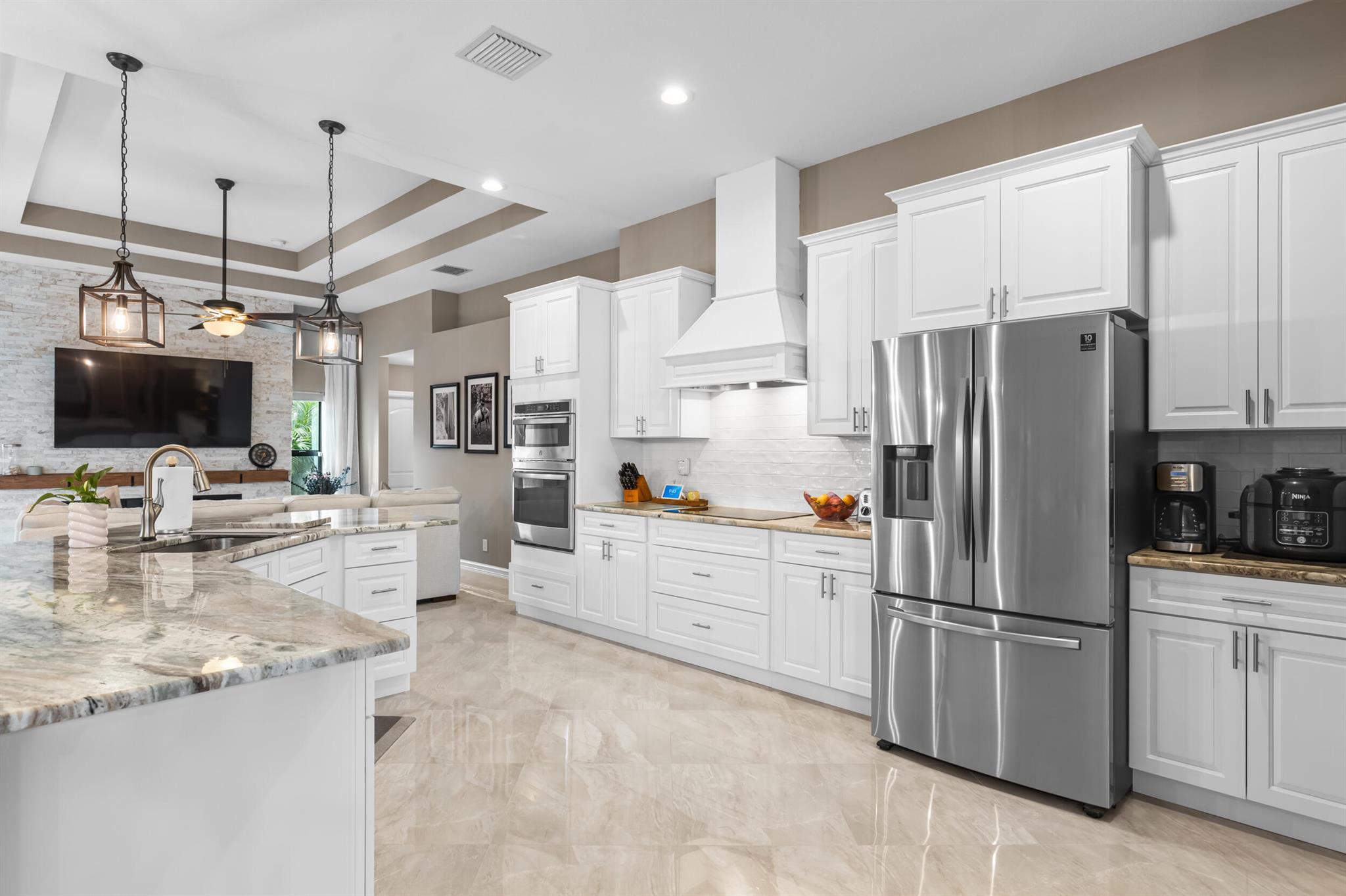 Exquisite, luxurious home with NO HOA! This stunning residence features 4 spacious bedrooms and 3 full bathrooms. It boasts numerous upgrades, including a ring security system, granite countertops, a gourmet kitchen with stainless steel appliances, porcelain tile throughout, a 5V metal roof with a secondary water barrier, FULL impact windows and doors, a side load garage with 5/8 plywood on the roof, a Master Ensuite with a double shower, free-standing tub, his and hers professionally built-in closets, his and her vanities, tray ceilings in the Family room and Master Bedroom, French Doors leading to oversized Lanai. French doors are also present in the living and family rooms, slow-close cabinets throughout, a side load washer and dryer with a pedestal, professionally landscaped with...