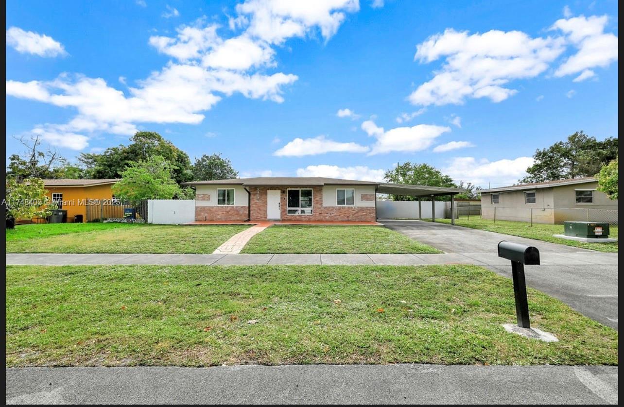 Discover this beautifully maintained 3-Bed, 2-Bath single-family home in Lake Forest, perfectly situated on an 8,500 sq. ft. lot w/ plenty of space to enjoy. Features a split floor plan, bright kitchen w/ SS appliances spacious living areas, recessed lighting and hurricane impact windows for safety and energy efficiency. Enjoy the convenience of an outdoor laundry room, a covered carport accommodating up to six vehicles, and a completely fenced backyard ideal for pets, entertaining, or even adding a pool! The covered terrace provides the perfect outdoor retreat, and with no HOA, you have the freedom to make this home truly yours. Located 20 minutes from Hallandale Beach and close to popular shopping and dining areas, this home offers the perfect balance of comfort and convenience.
