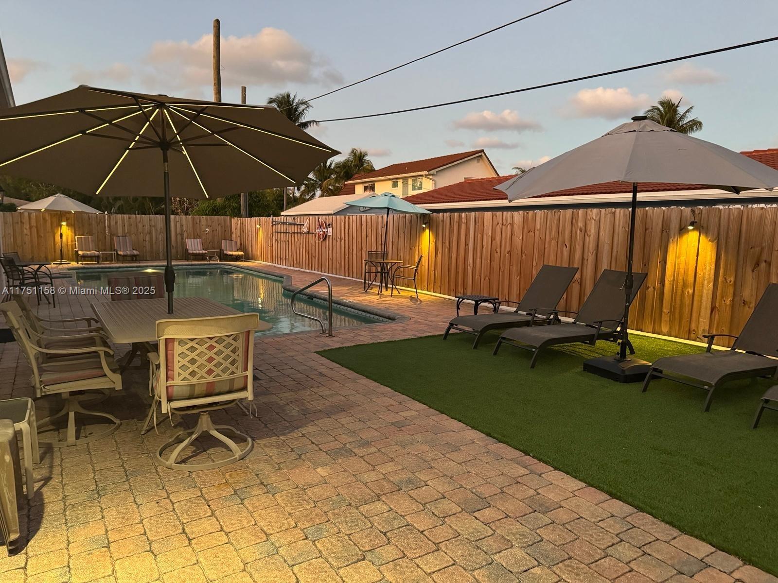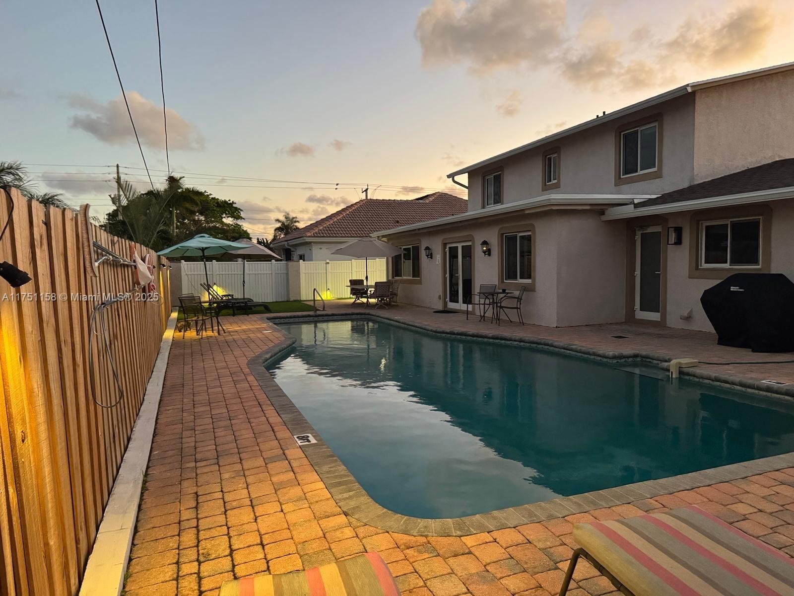 5/3 fully fenced yard with private 45 FT heated saltwater pool. Indoor laundry. Located in a desirable North Pompano Beach neighborhood close to beaches and shopping! $$$ spent recently incl. New roof, New backyard makeover, New fence, sewer pipes epoxy lining, and new vinyl floors upstairs. S/S appliances and plenty of cabinet space. Minutes to shopping, and restaurants. Circular driveway. EAST of Federal Hwy1. 2 A/C, impact windows and doors, BBQ area, outdoor seating. master BRs with ensuite bathroom. RV and Boats under 30 ft are allowed w/50 ft long driveway. Walk to beachs. Flexible closing. For sale w/sister property, operate as AIRBNB, VRBO. Also for Annual Rent or Short Term. Pompano Beach is becoming a prominent place to raise a family, with new infrastructure development projects
