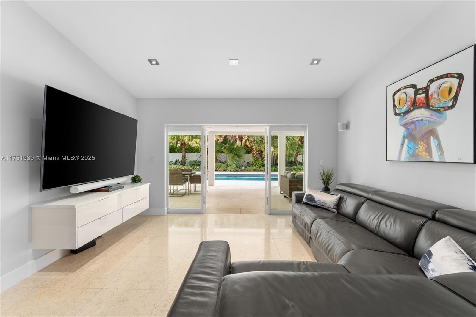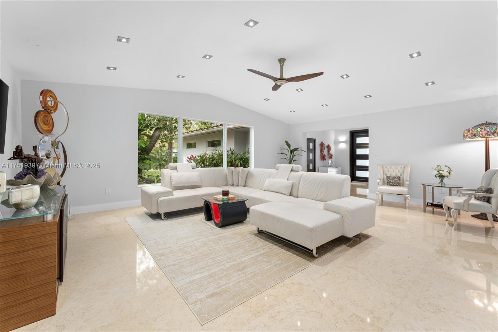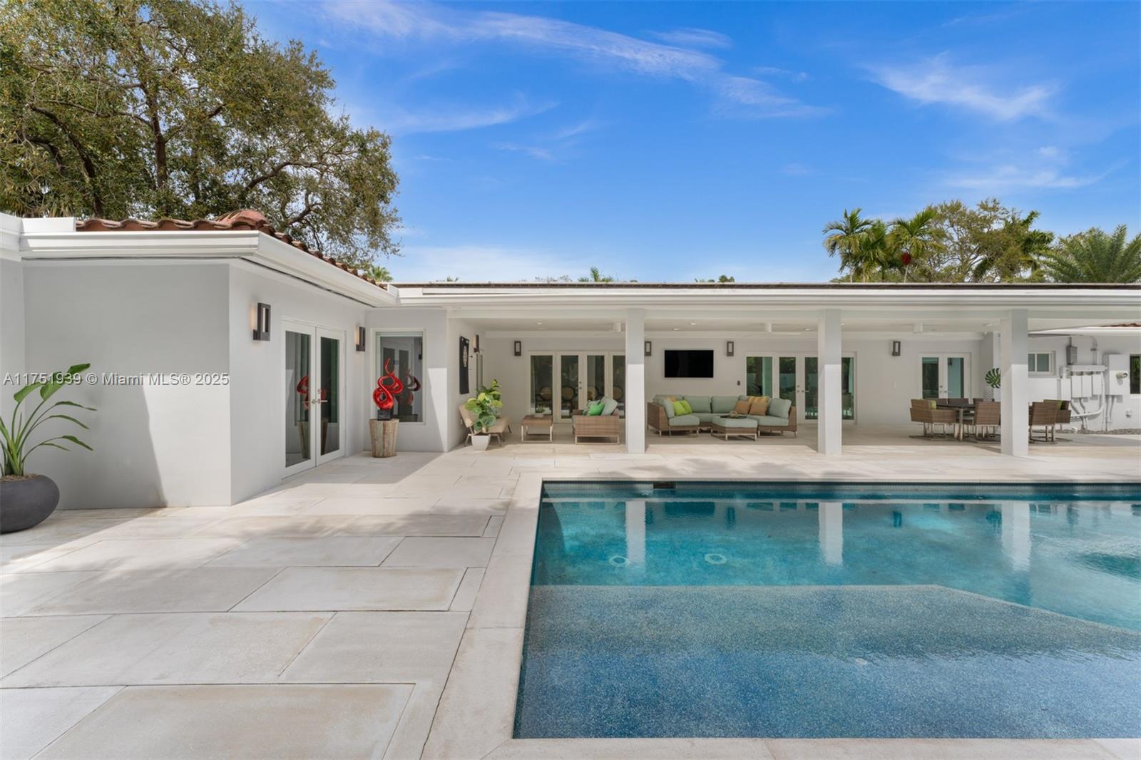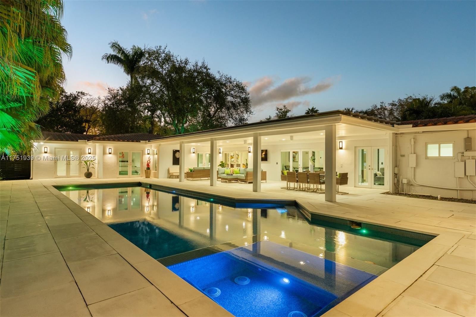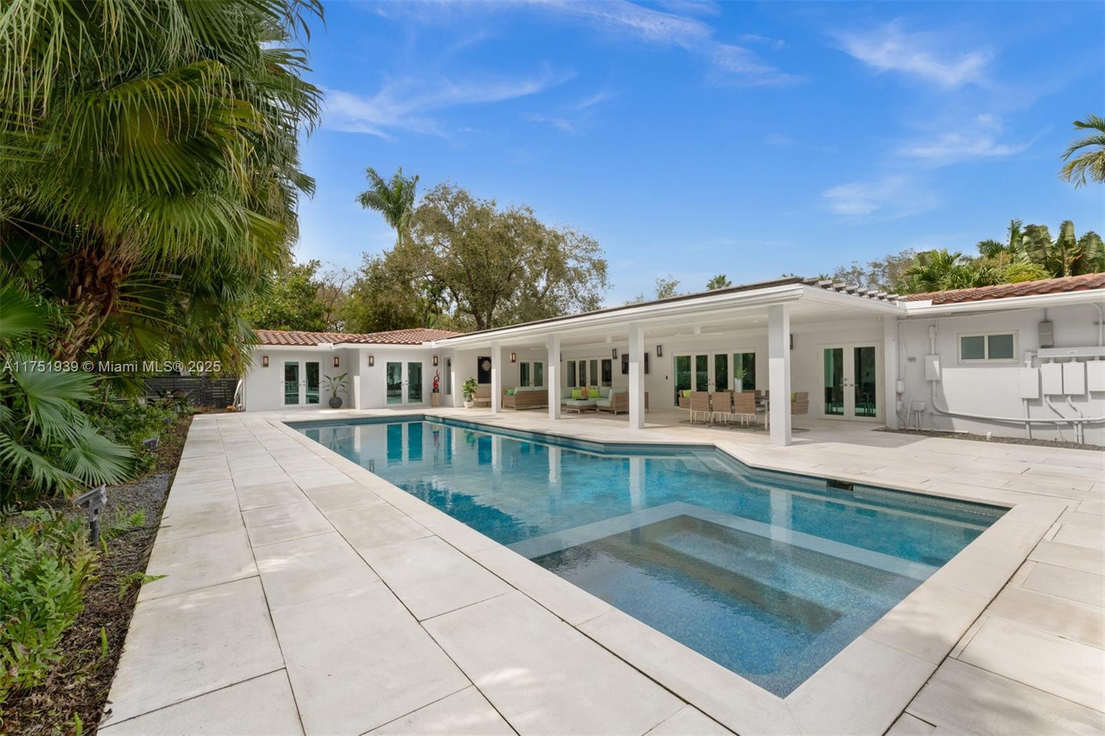 Welcome to this exquisite corner-lot residence, tucked away on a serene & quiet street with no through access, in the heart of Pinecrest. Thoughtfully renovated from 2018 to 2020, this home offers a perfect blend of modern elegance and timeless comfort. This spacious 5-bedroom home boasts porcelain floors throughout, creating a sleek and cohesive design. The primary suite features a spa-like bathroom with a separate tub and shower, dual sinks, large space for an office & his-and-her walk-in closets. Step into a resort-style backyard with two covered terraces, a summer kitchen, a sparkling pool and jacuzzi. Enjoy an illuminated tennis and basketball court for sports enthusiasts. Additional features include a 53-panel, 15kW solar power system. Located close to excellent schools.