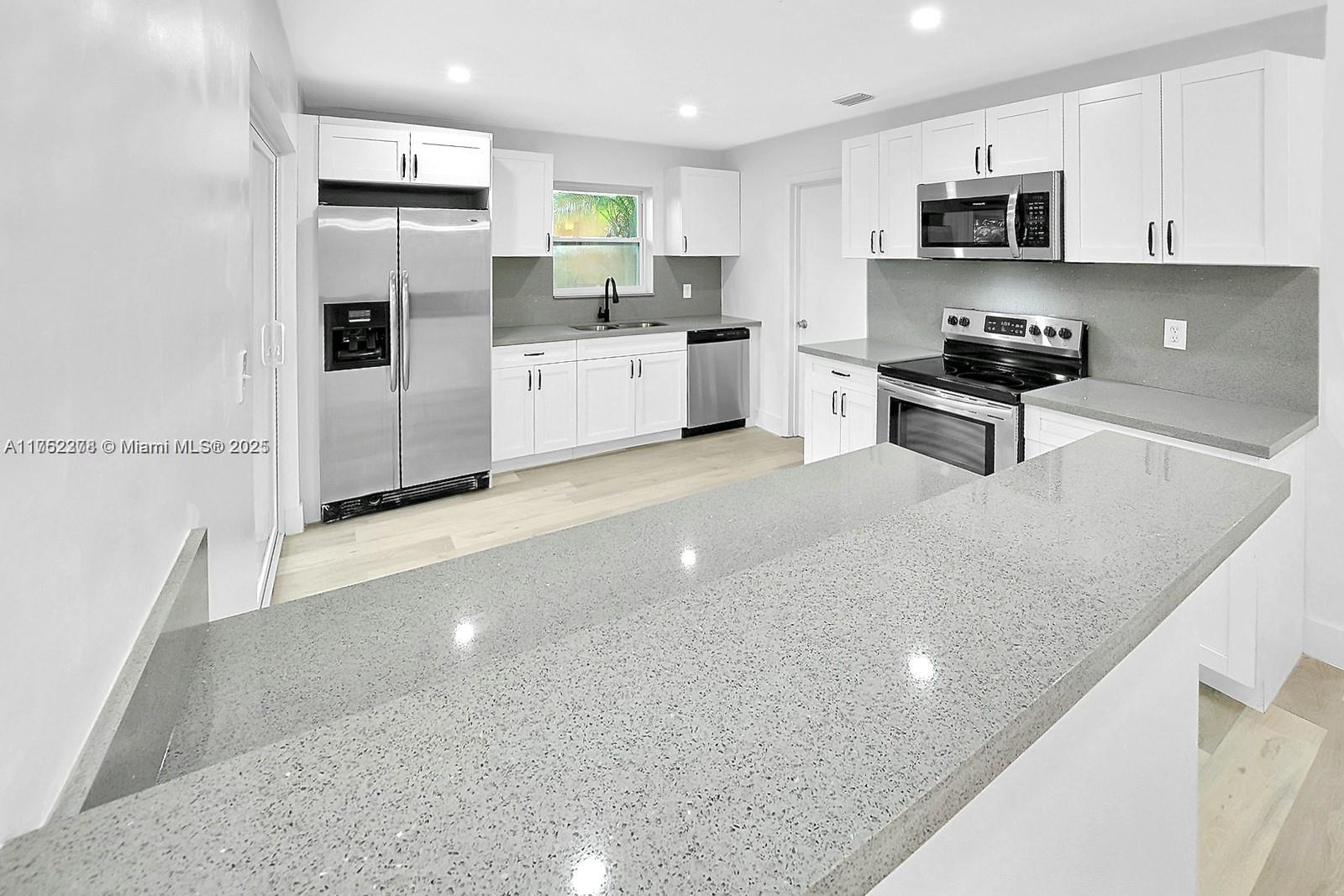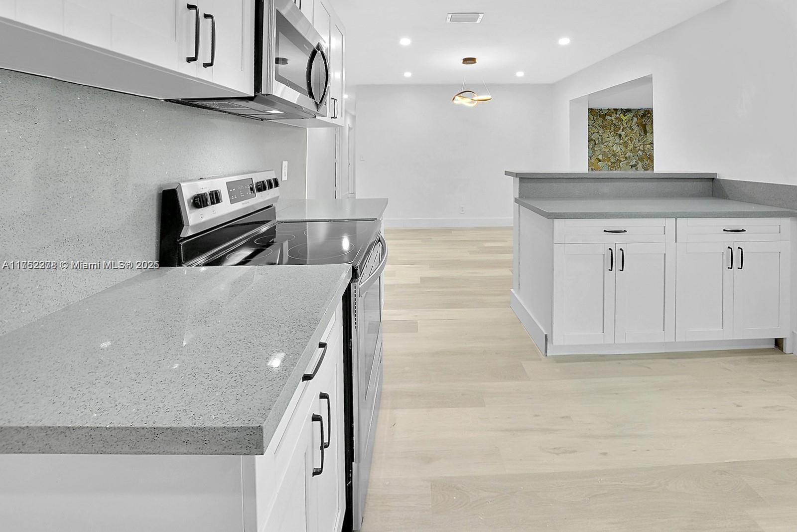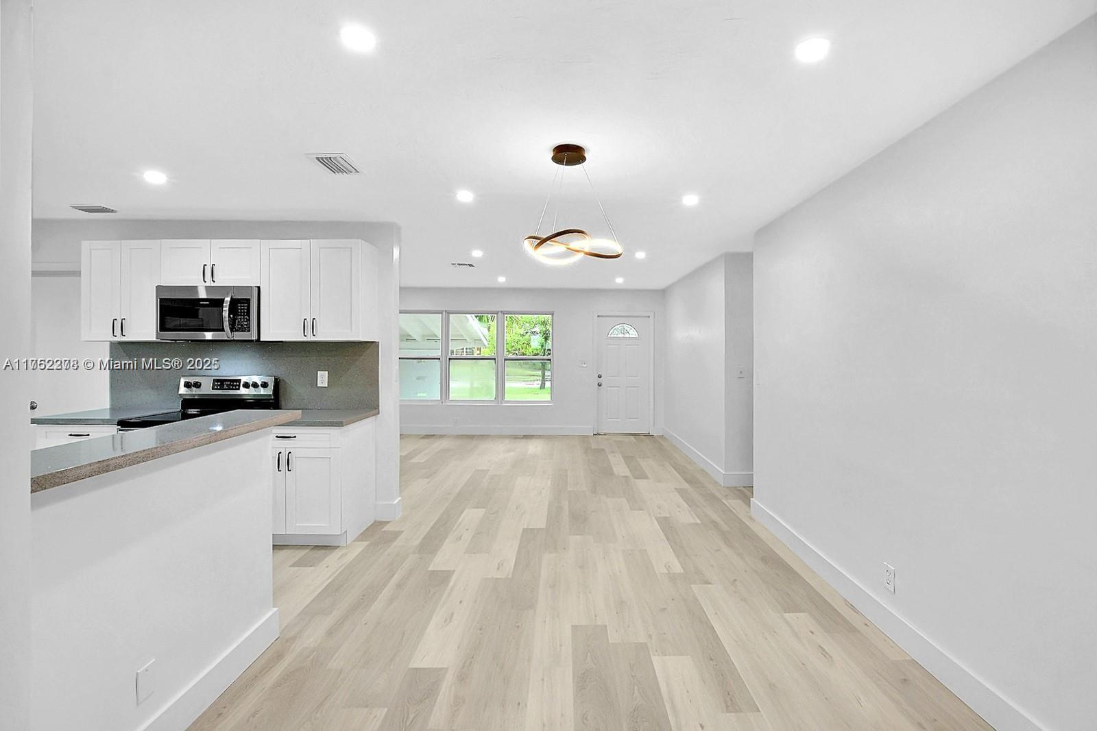 This beautiful 3-bedroom, 2-bathroom home in Pembroke Pines offers 1,612 square feet of spacious living space and has been newly renovated with a luxurious, modern design. The bright, inviting interior boasts fresh paint, impact windows, recessed lighting, updated fixtures, and elegant plank flooring throughout. Ideal for entertaining, the kitchen and living areas seamlessly connect to the expansive fenced backyard. Plus, there’s no HOA
