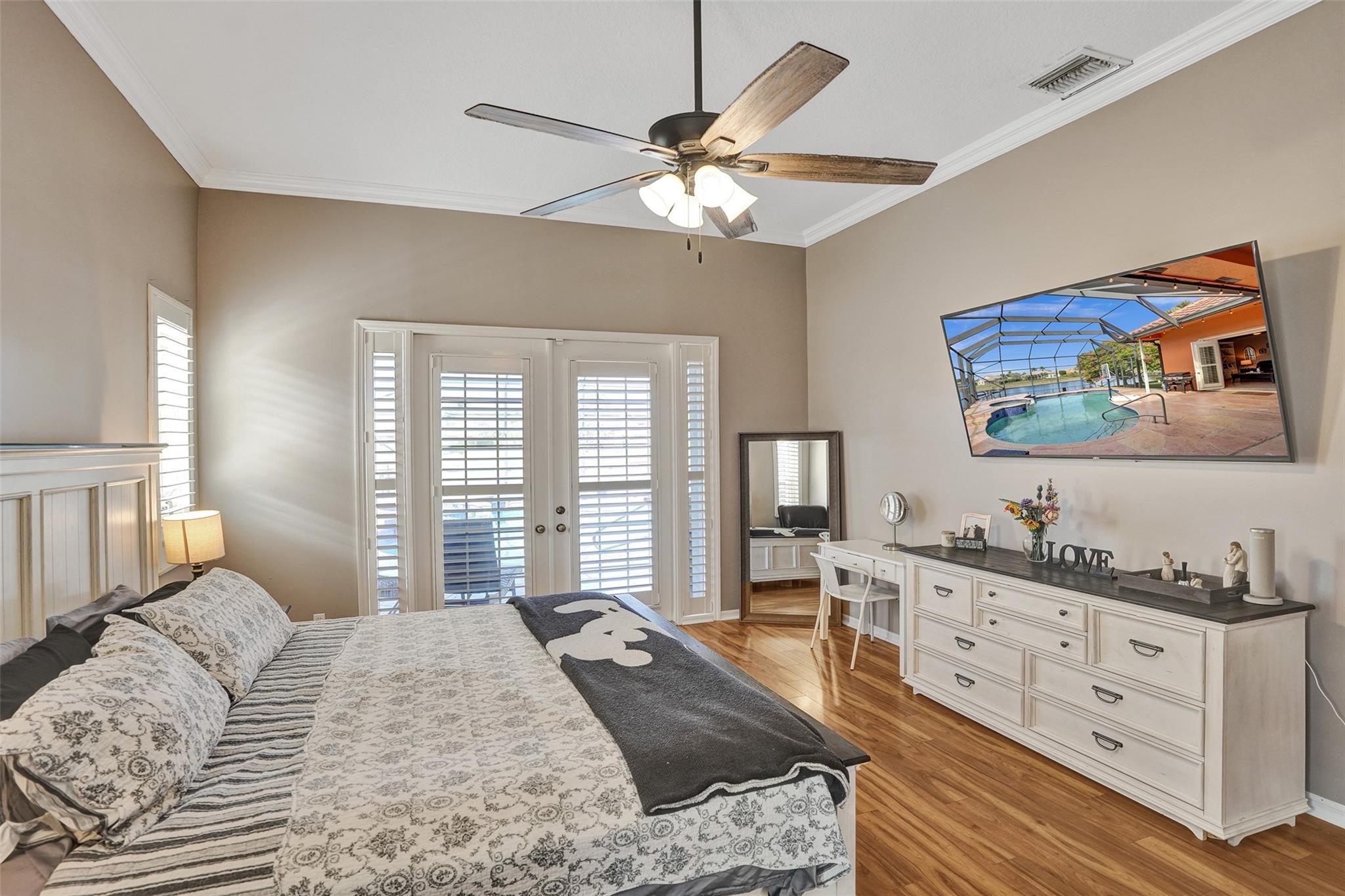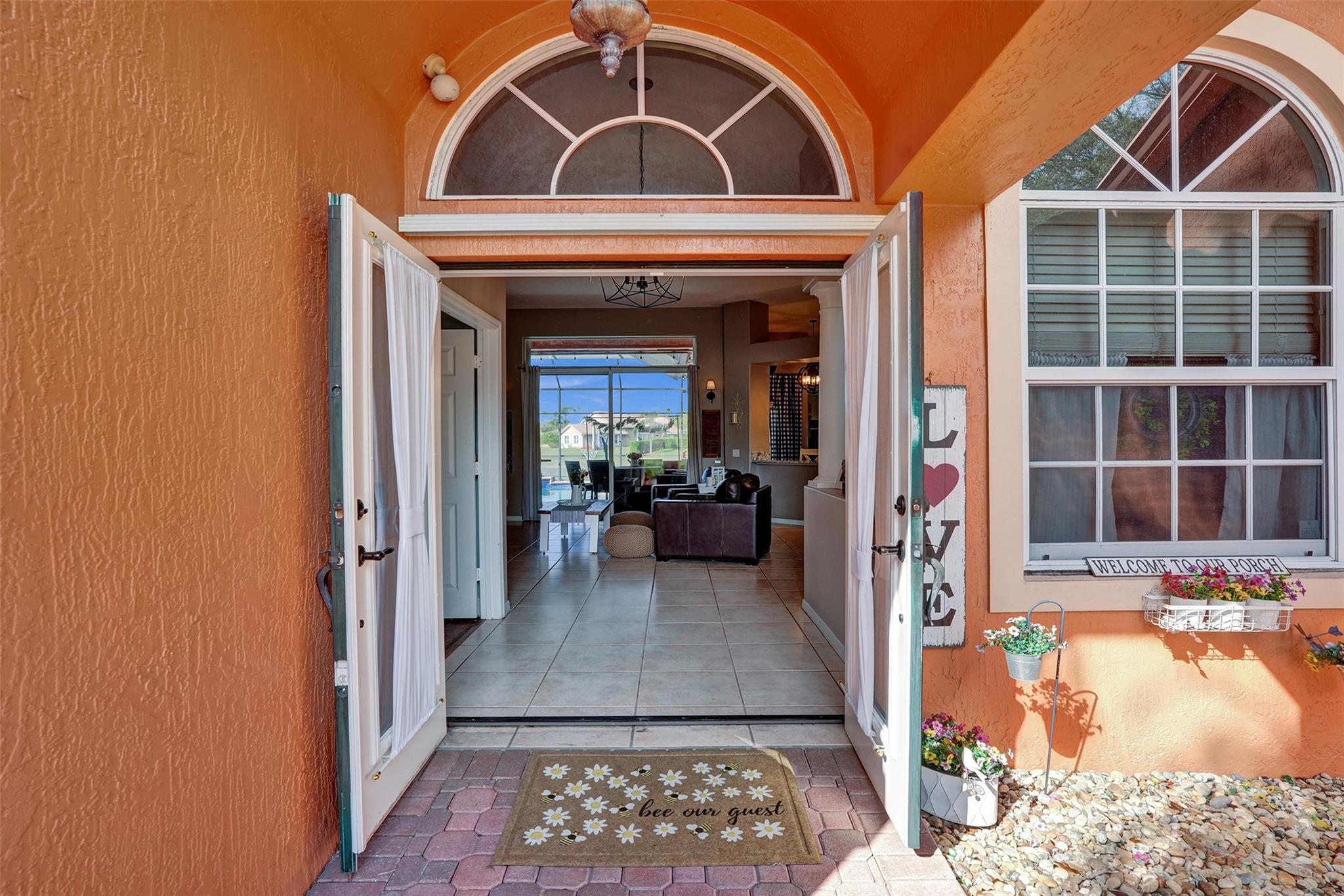 Experience Luxury Living In Carriage Pointe Estates! This Stunning Triple-Split 4Bed, 3Bath Home Includes A Bonus/Flex Rm & 3-Car Garage w/ EV Charger On An Oversized Lot w/ Breathtaking Lake Views! Savor The Sunset Landscape From Your Expansive Lanai, Take A Refreshing Dip In The Sparkling Pool Or Relax In The Spa. Designer Kitchen Features Large Undermount Sink, Deep Pots/Pans Drawers & Pull Outs, Spacious Pantry, LG Double Oven, Fridge & Microwave. Primary Suite Features Westward Views Through French Doors, Two Closets, En-Suite w/ Double Vanities, Shower Fit For A King w/ Sitting Ledge, Waterfall & Wand Shower Heads. Plantation Shutters & Charming Farmhouse Accents Elevate This Home’s Timeless Appeal. 24hr Manned Gate, Storm Protection, Low HOI & A 5Yr-Young Roof Provide Peace Of Mind.
