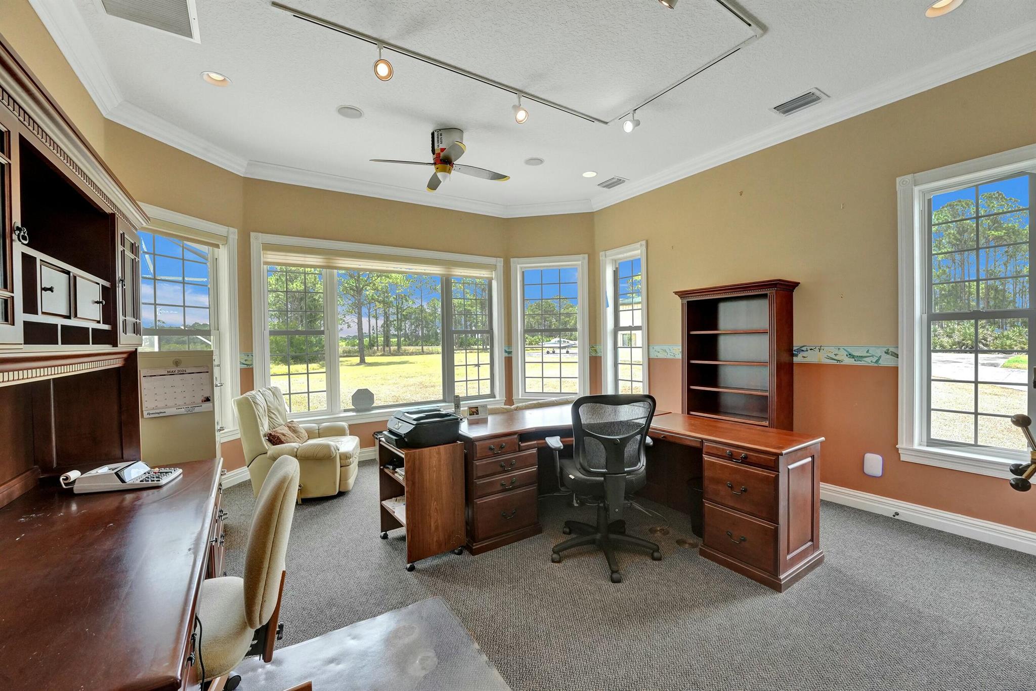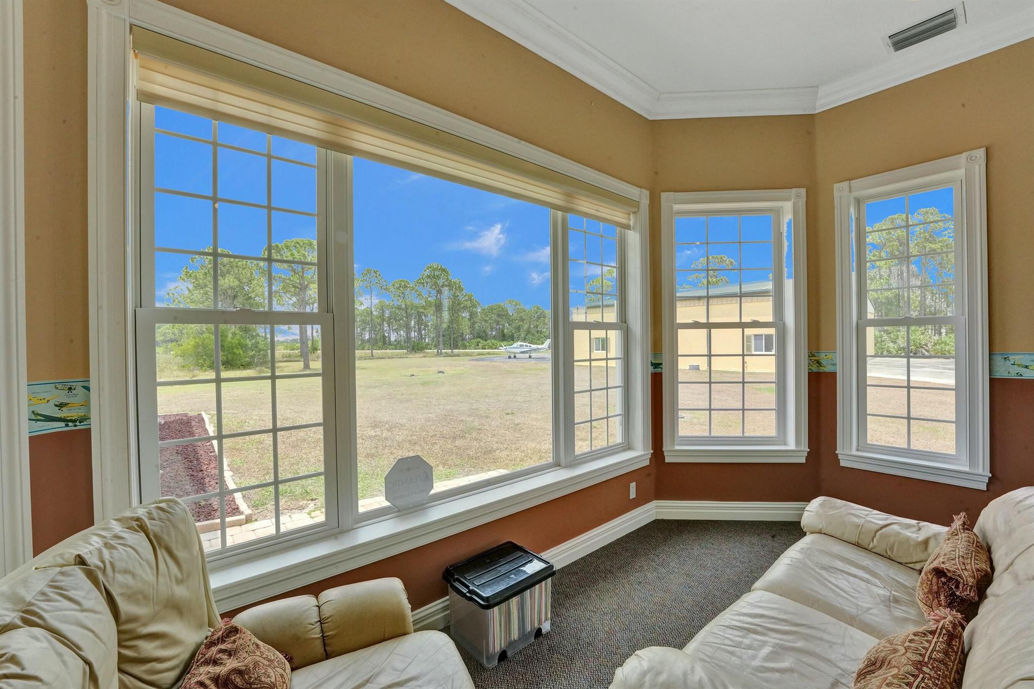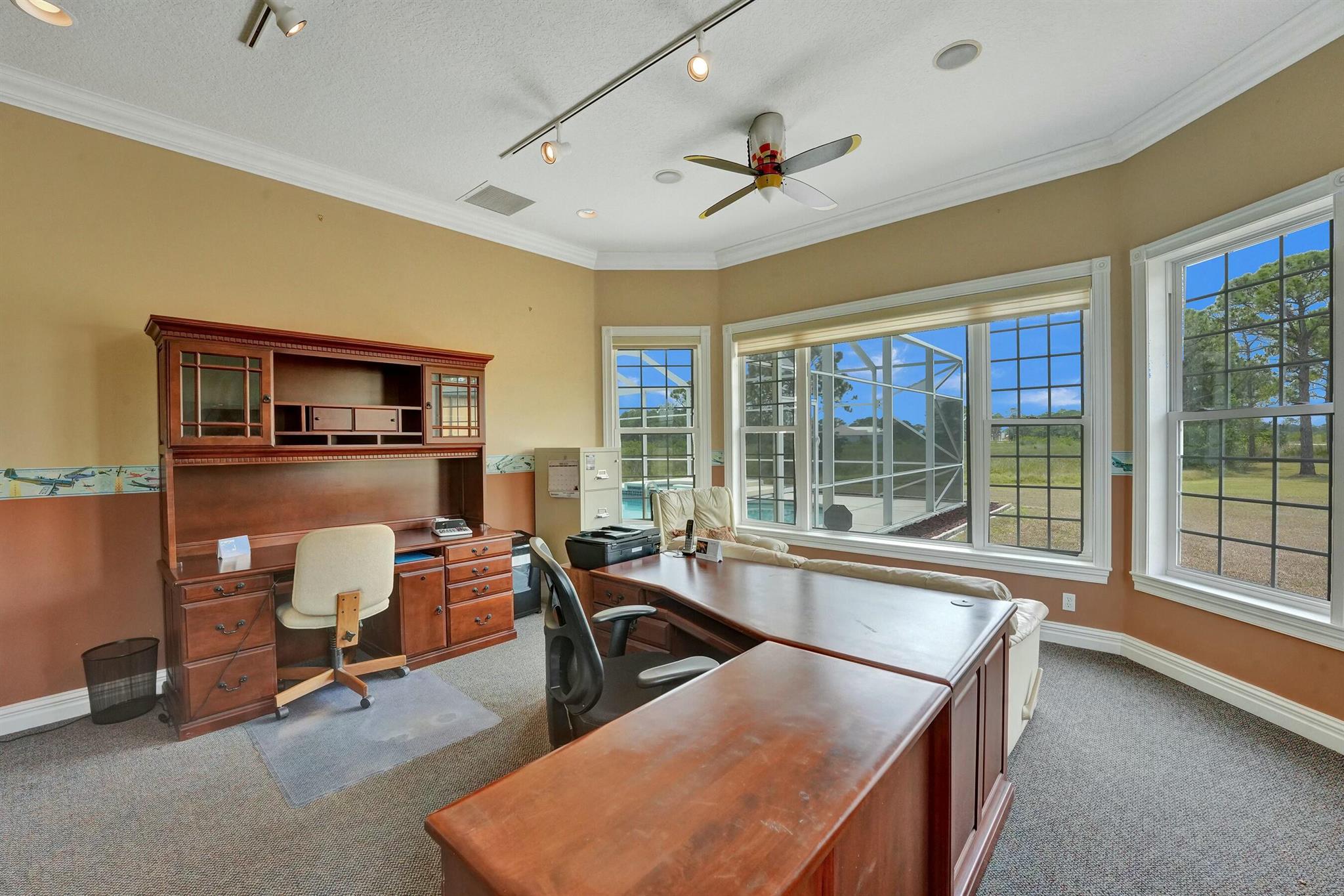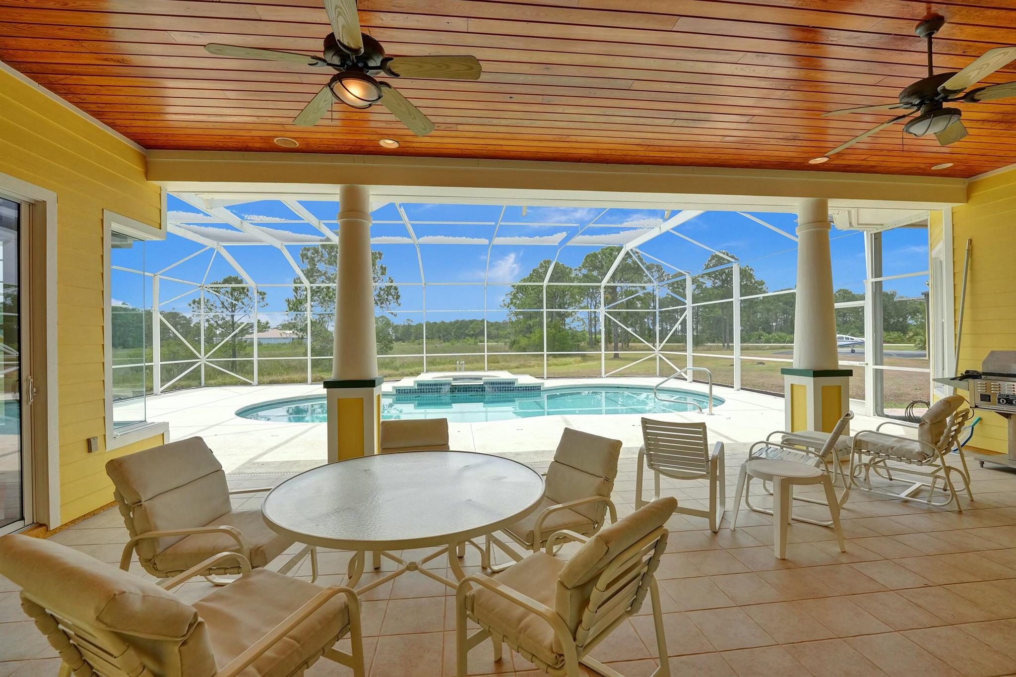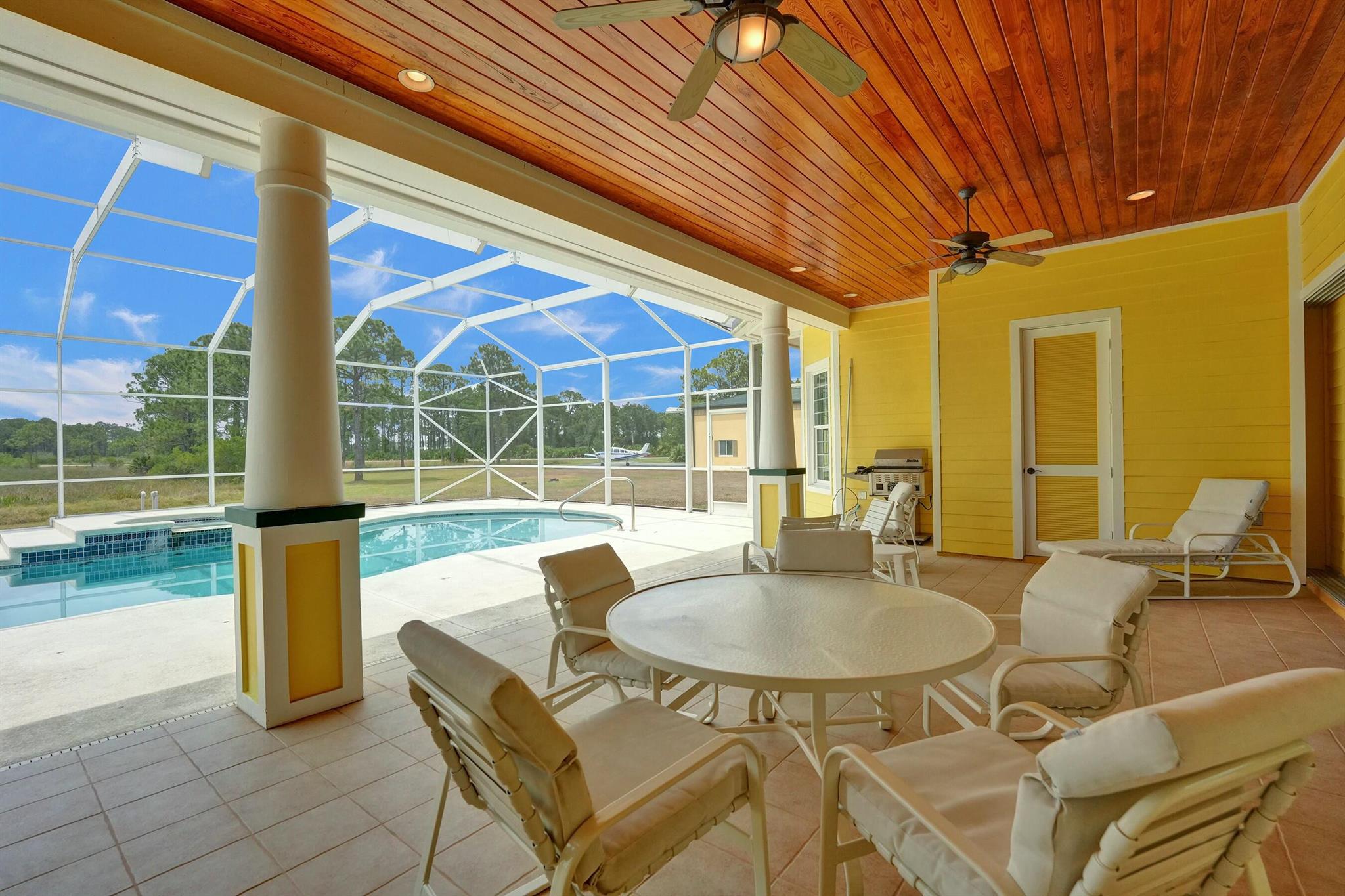 Welcome to an extraordinary aviation estate at 15350 Skyking Dr, located in the prestigious Treasure Coast Airpark (FL37) in Port Saint Lucie, FL. This remarkable property offers aviation enthusiasts direct access to a 4,067' x 48' paved and lighted runway (10-28), perfectly situated halfway down the runway for unparalleled views of aircraft taking off and landing. Property Highlights: Residence: - Spacious Living: 4 bedrooms and 3 baths, plus an outdoor cabana bath with a toilet and shower. - Expansive Grounds: 14.65 acres across 2 lots, providing ample privacy and room for outdoor activities. - Gourmet Kitchen: Featuring Slate countertops from Maine, a Miele oven, and an expansive walk-in pantry with abundant storage.