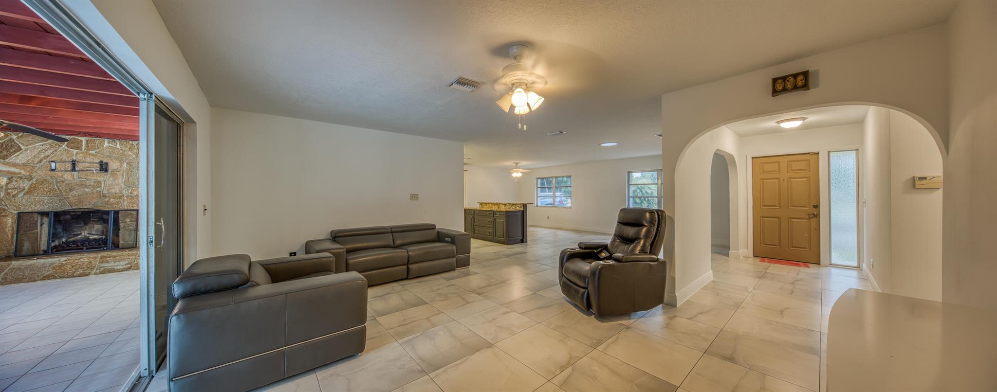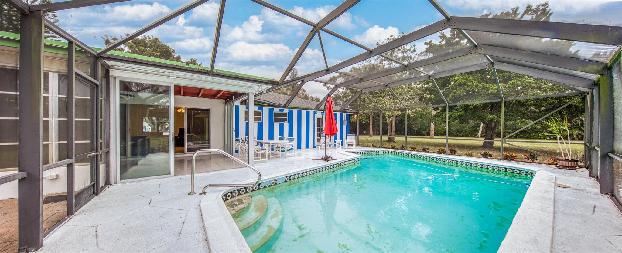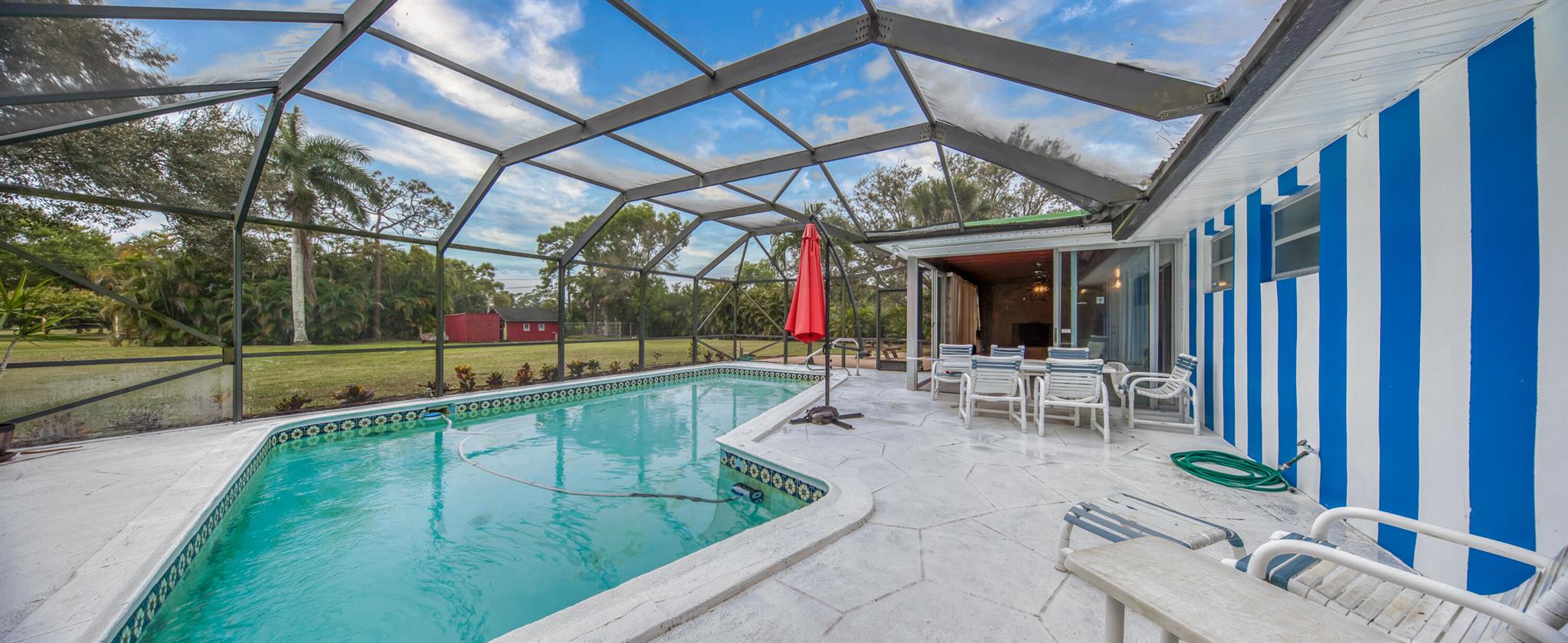 When city meets country you get the best of both worlds! Giant 1.98acre lot with large pond in a small enclave of homes on a private road. Shopping and access to highway is just around the corner yet you can sit by your pond and sip tea while listening to the birds in your shade tree. This 3/2 consists of nothing but space for all your day to day and entertaining needs. From the open living room/dining room/kitchen (with movable island) to an oversized master suite with French doors leading to the screened patio & pool. The 300 sf Florida room will give your family a comfortable gathering place. A two car attached garage and a shed/workshop complete this home just waiting for you to make your dreams come true.