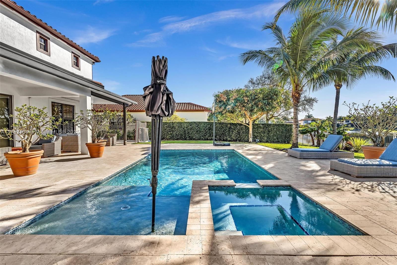 RARELY AVAILABLE VALENCIA MODEL ON OVERSIZED WIDE LAKE LOT IN MOST SOUGHT-AFTER ESTADA AT MONTERRA. YOU WILL LOVE ENTERTAINING IN THE AMAZING BACKYARD W/ HEATED POOL & JACUZZI, LARGE COVERED PATIO W/ OUTDOOR KITCHEN & 2 TV'S * 1ST FLOOR FEATURES A GOURMET KITCHEN W/ LARGE CENTER ISLAND OPEN TO GREAT ROOM, 2 BEDROOMS, 1.5 BATHS. 2ND FLOOR FEATURES 3 BEDROOMS, 3 BATHROOMS, AND SMALL LOFT AREA. OTHER FEATURES: FULLY FENCED YARD, IMPACT GLASS WINDOWS AND DOORS. WOOD FLOORS ON STAIRS & 2ND FLOOR. LOW HOA FEE INCLUDES 24-HR SECURITY GUARD, XFINITY CABLE, INTERNET & HBO, ADT ALARM MONITORING. CLOSE TO COOPER CITY'S A-RATED SCHOOLS, POSNACK JEWISH SCHOOL, JCC, HIGHWAYS, SHOPPING. HURRY TO SEE THIS ONE TODAY!!