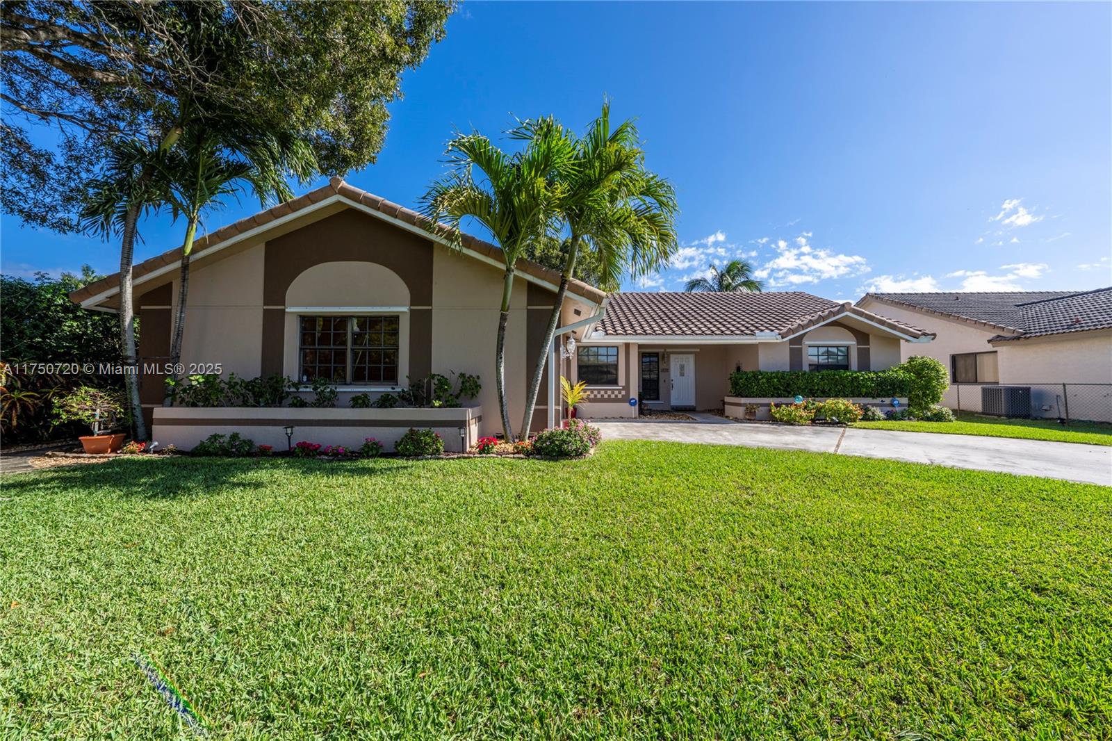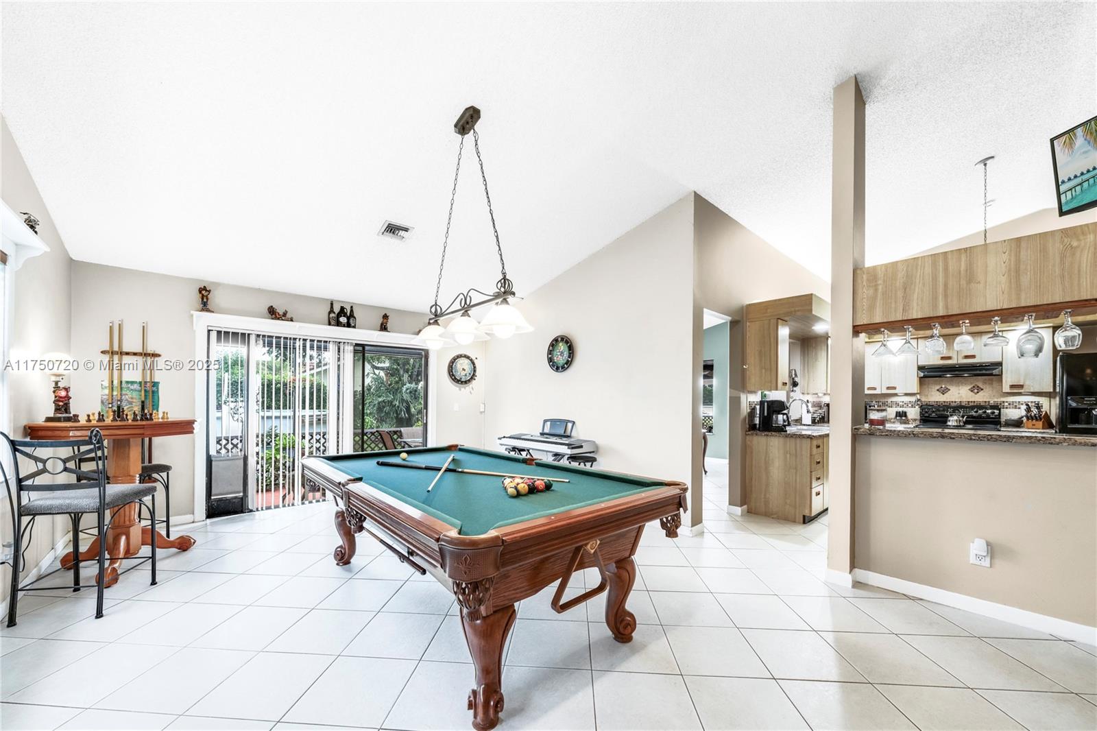 This lovely impeccable home welcomes you into a spacious living room with an expansive view of the charming back yard. The RENOVATED EAT-IN KITCHEN opens to the light, bright dining room and to a fabulous game room/family room with a built-in bar and traditional pool table (seller will leave POOL TABLE for you if you wish!). Split bedroom plan. RENOVATED BATHROOMS. Huge primary suite features an oversize walk-in closet, a vanity area, large linen closet, and a well-designed cabana bath. VAULTED CEILINGS throughout the house. Stereo sound system in living room, game room, and patio. Newer A/C. The covered screened patio is ideal for dining/entertaining and has a BEAUTIFUL LAKEVIEW. Quiet community. LOW MAINTENANCE fee ($325 per year). EXCELLENT SCHOOLS. Easy access to highways.