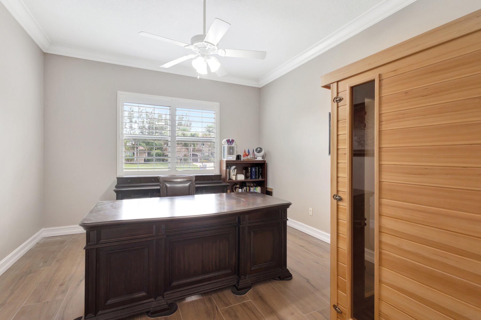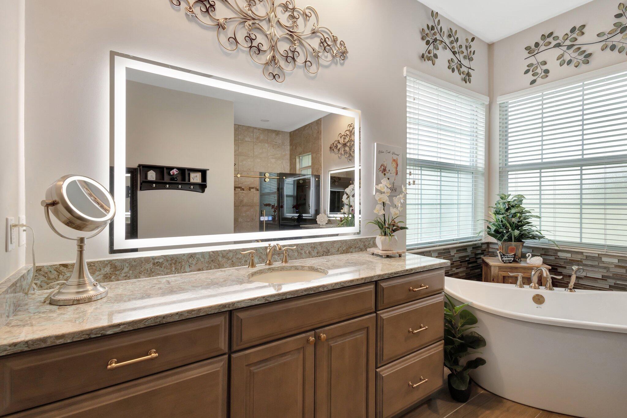 Enjoy pristine preserve views from this 4 bed, 4.5 bath + den + bonus room, home. Situated on just under 1/2 acre, this property provides ample room for a custom pool & has been impeccably updated, blending modern convenience with elegant charm. The open floor plan is perfect for entertaining, with large impact windows & doors flooding the space with natural light while offering stunning nature views. ''Wood look'' tile flooring throughout adds a touch of sophistication, while crown molding, wainscoting & plantation shutters enhance the home's elegant appeal. The gourmet kitchen was remodeled in 2024 & features new cabinetry, granite countertops, new appliances & a spacious walk-in pantry. The primary suite is a true retreat, with 2 custom walk-in closets & a spacious remodeled bathroom.
