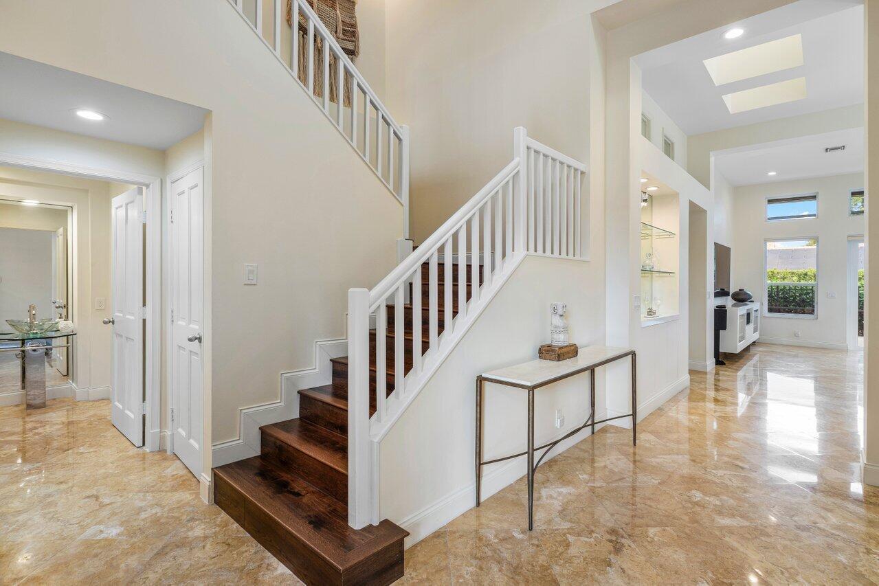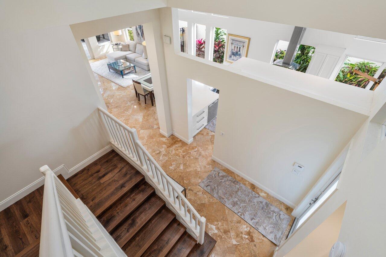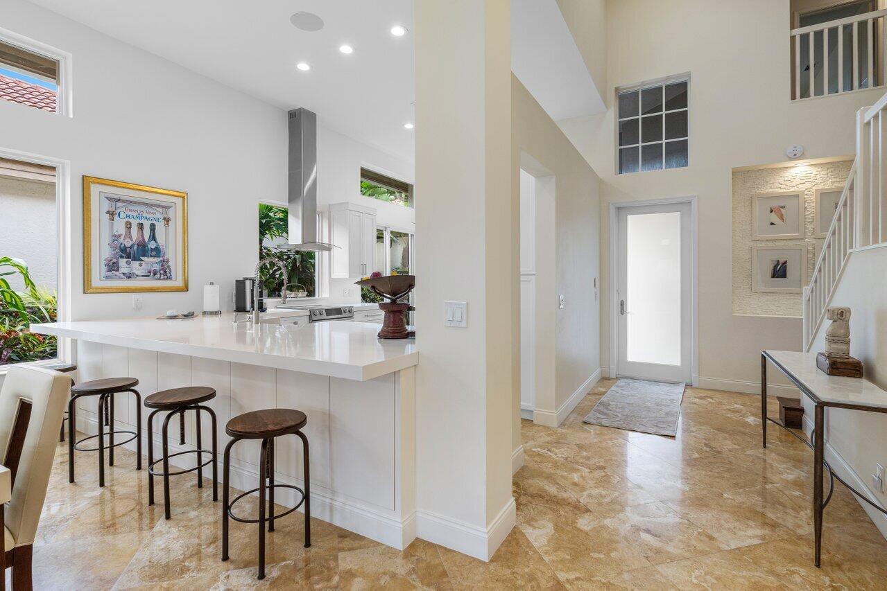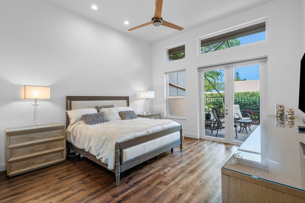 Stunning updated 3-BD, 2-BTH, 1-HB home is in the exclusive Santa Barbara 24-hr gated community. Home is light/bright with volume ceilings, oversized hurricane windows, open floor plan. Marble-wood floors throughout. Gourmet kitchen with eat-in bar is great for entertaining family & friends. Kitchen features SS appliances, quartz counters. Oversized living room walks out to a 36.0'x14.8' screened patio. 1st floor primary bedroom has volume ceilings w/ updated BTHRM, oversized shower, dual sinks & walk-in closet. 2nd floor 2-BD & 1-BTH is perfect for a growing family, guests or office space. Roof-2013, A/C-2016 and Tankless H2O system. Club house features a state of the art fitness center, card room, kitchen, pool & clay tennis courts. NO Membership or Application fee. A must see!!