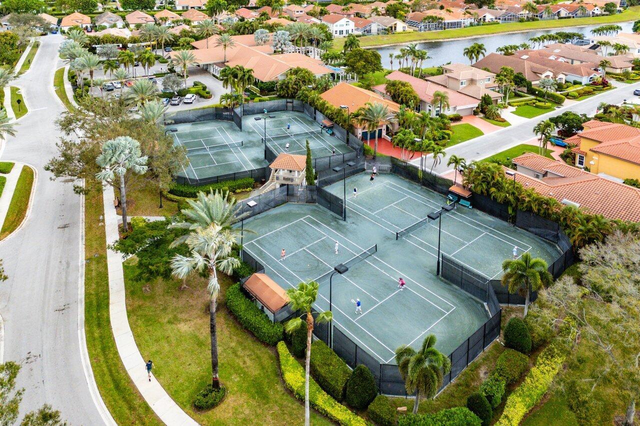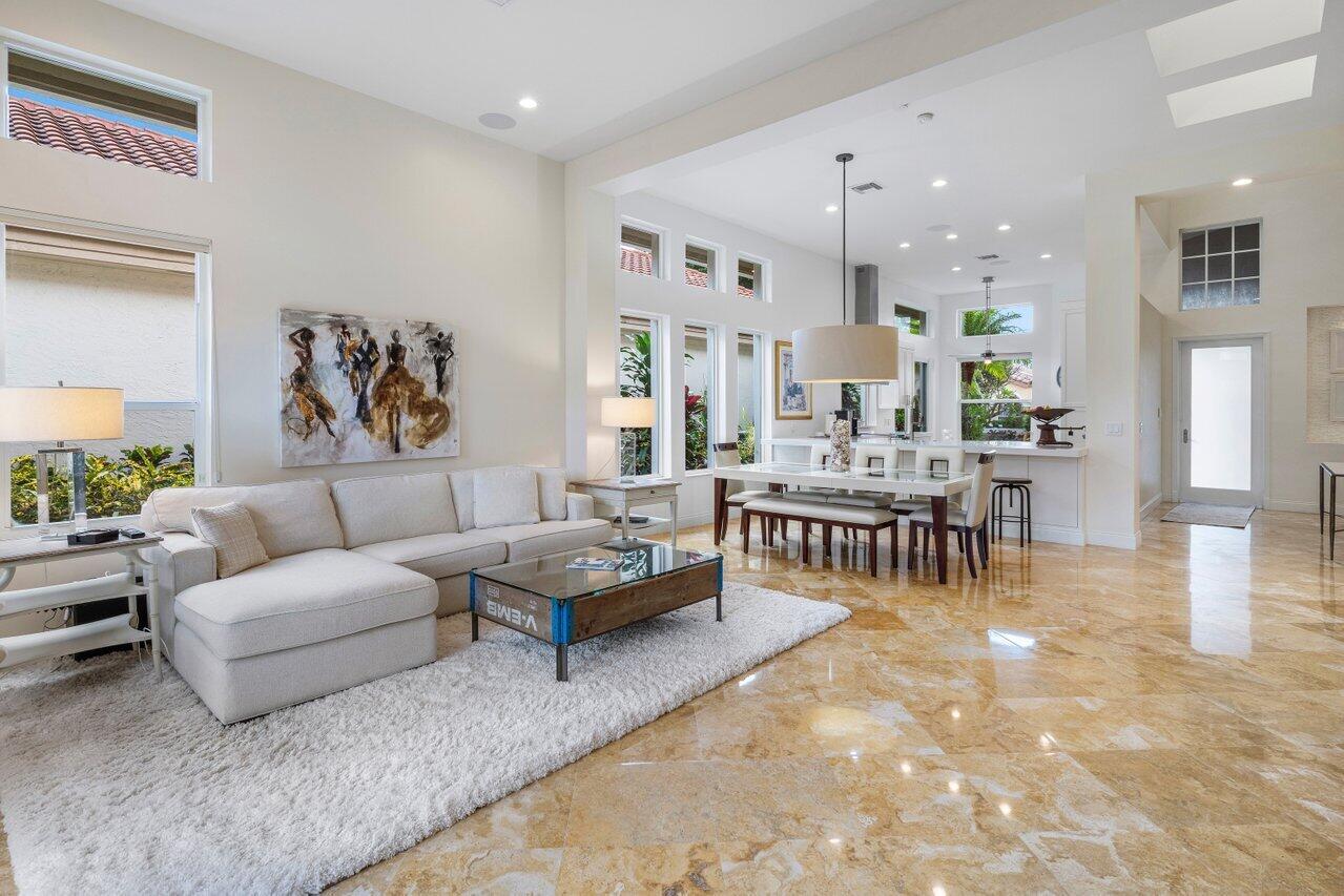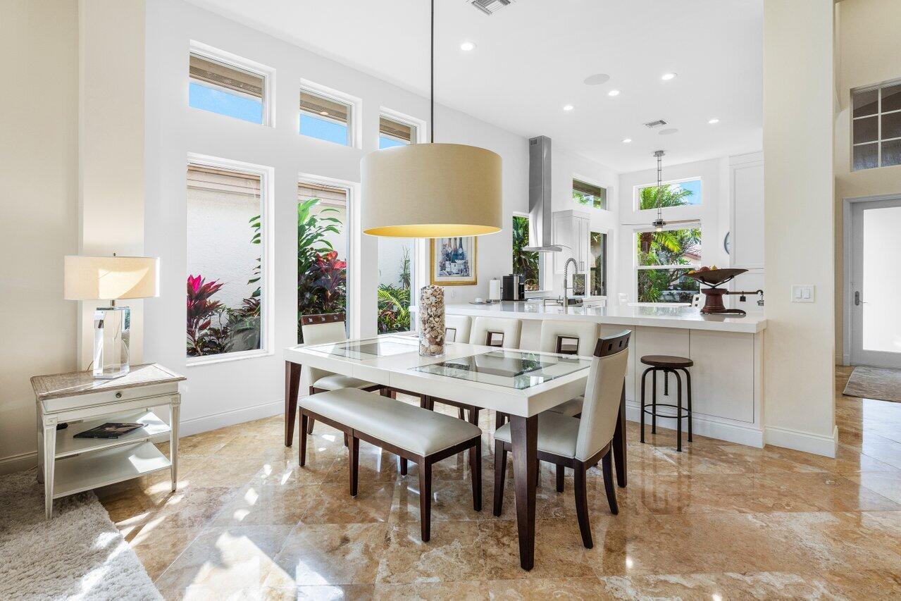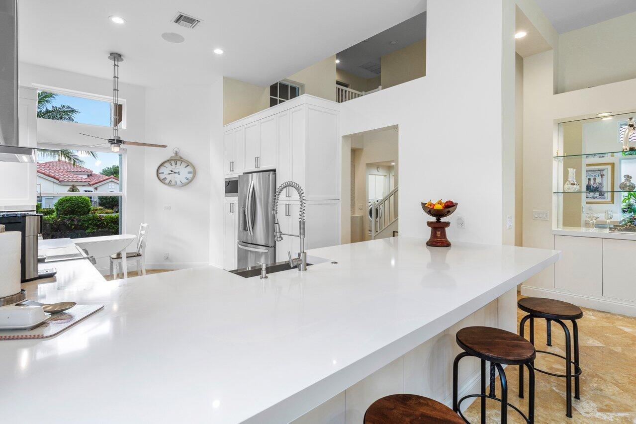 Stunning updated 3-BD, 2-BTH, 1-HB home is in the exclusive Santa Barbara 24-hr gated community. Home is light/bright with volume ceilings, oversized hurricane windows, open floor plan. Marble-wood floors throughout. Gourmet kitchen with eat-in bar is great for entertaining family & friends. Kitchen features SS appliances, quartz counters. Oversized living room walks out to a 36.0'x14.8' screened patio. 1st floor primary bedroom has volume ceilings w/ updated BTHRM, oversized shower, dual sinks & walk-in closet. 2nd floor 2-BD & 1-BTH is perfect for a growing family, guests or office space. Roof-2013, A/C-2016 and Tankless H2O system. Club house features a state of the art fitness center, card room, kitchen, pool & clay tennis courts. NO Membership or Application fee. A must see!!