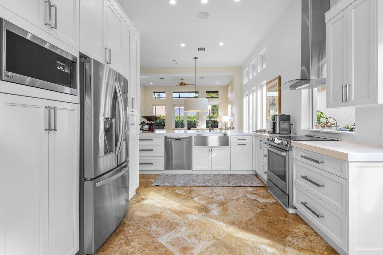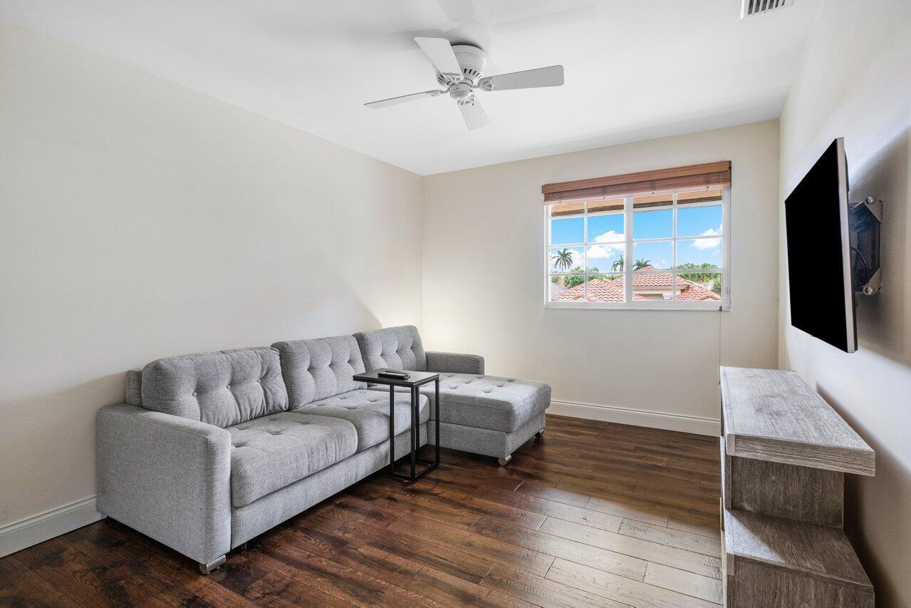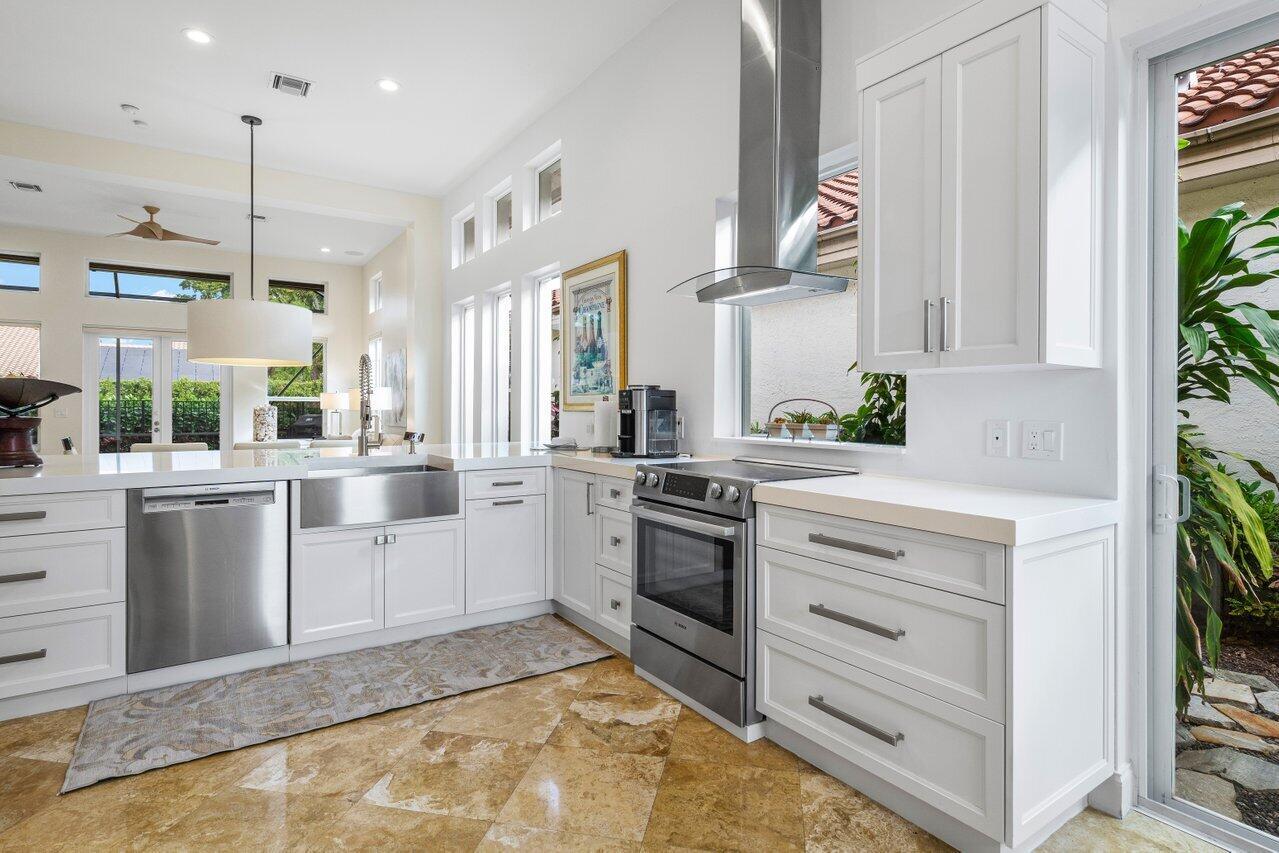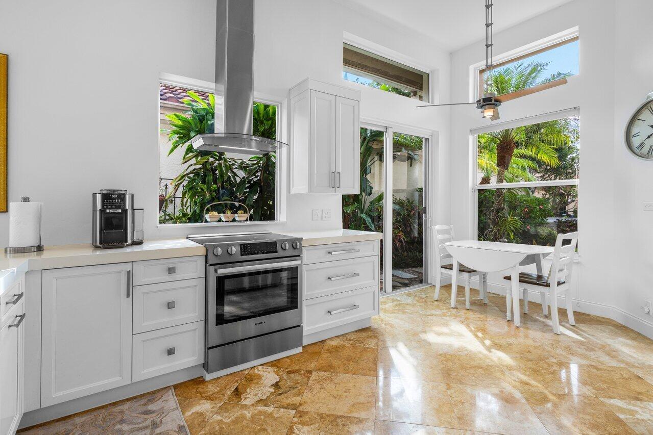 Stunning updated 3-BD, 2-BTH, 1-HB home is in the exclusive Santa Barbara 24-hr gated community. Home is light/bright with volume ceilings, oversized hurricane windows, open floor plan. Marble-wood floors throughout. Gourmet kitchen with eat-in bar is great for entertaining family & friends. Kitchen features SS appliances, quartz counters. Oversized living room walks out to a 36.0'x14.8' screened patio. 1st floor primary bedroom has volume ceilings w/ updated BTHRM, oversized shower, dual sinks & walk-in closet. 2nd floor 2-BD & 1-BTH is perfect for a growing family, guests or office space. Roof-2013, A/C-2016 and Tankless H2O system. Club house features a state of the art fitness center, card room, kitchen, pool & clay tennis courts. NO Membership or Application fee. A must see!!