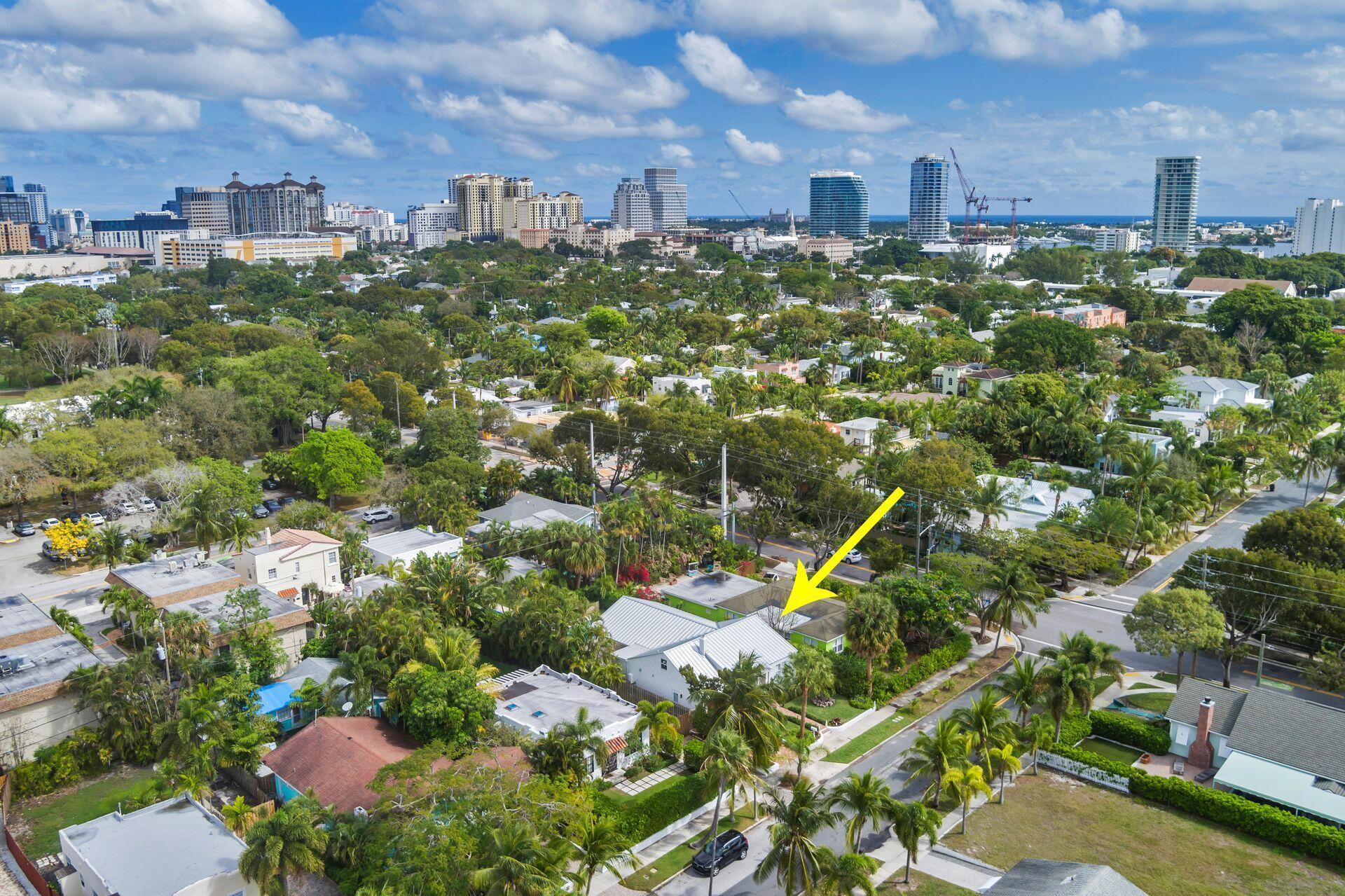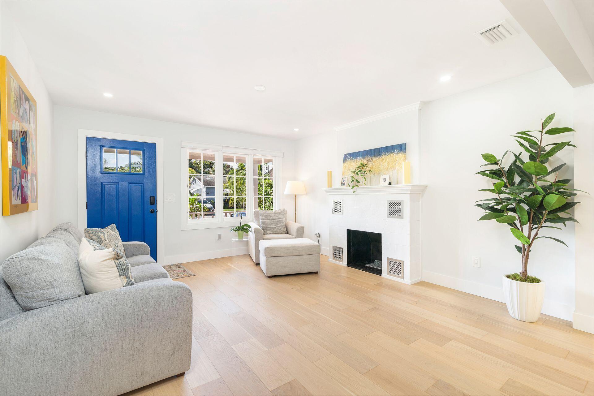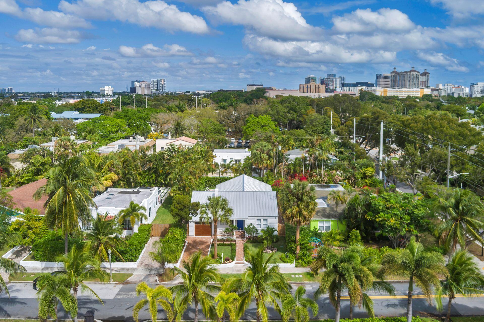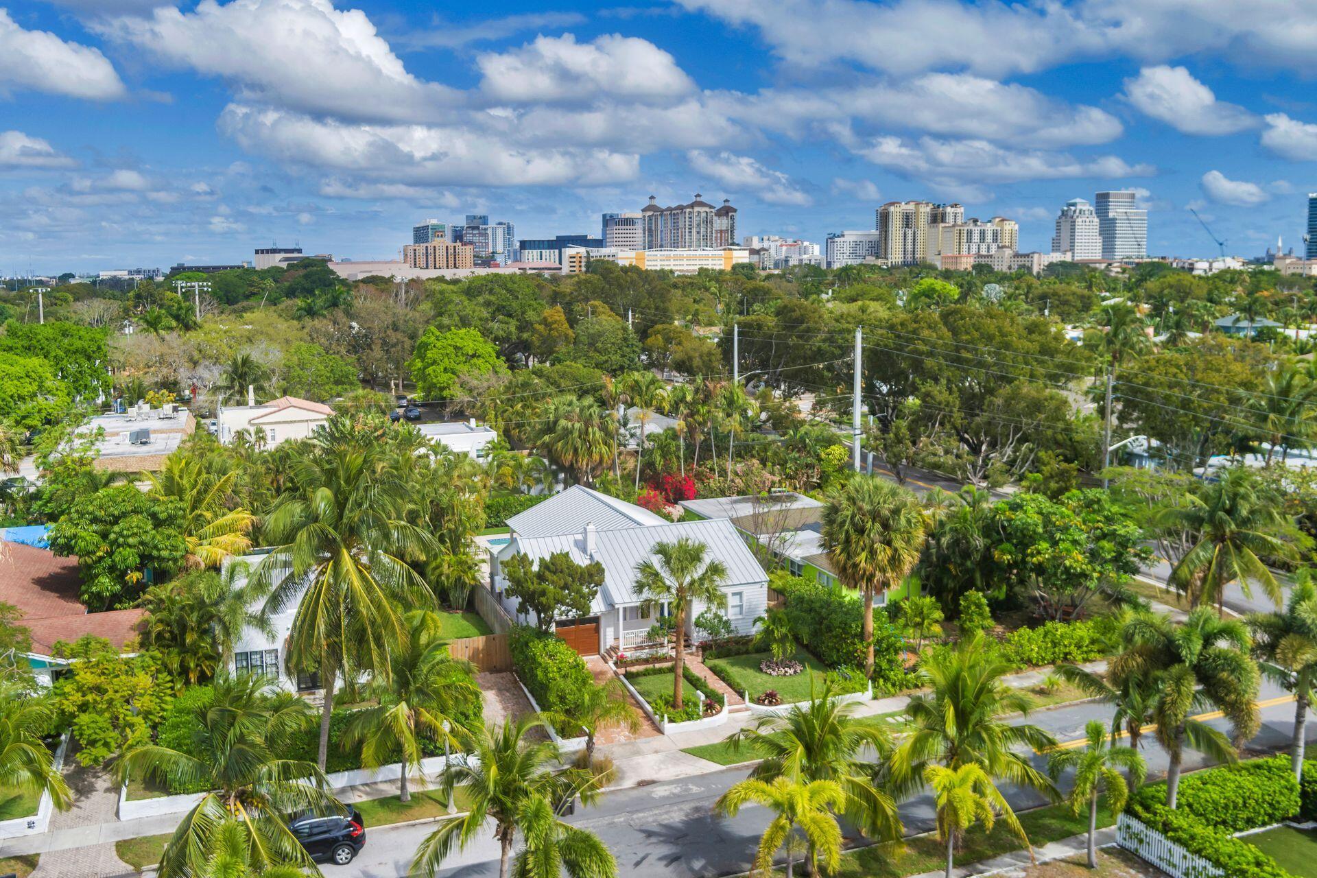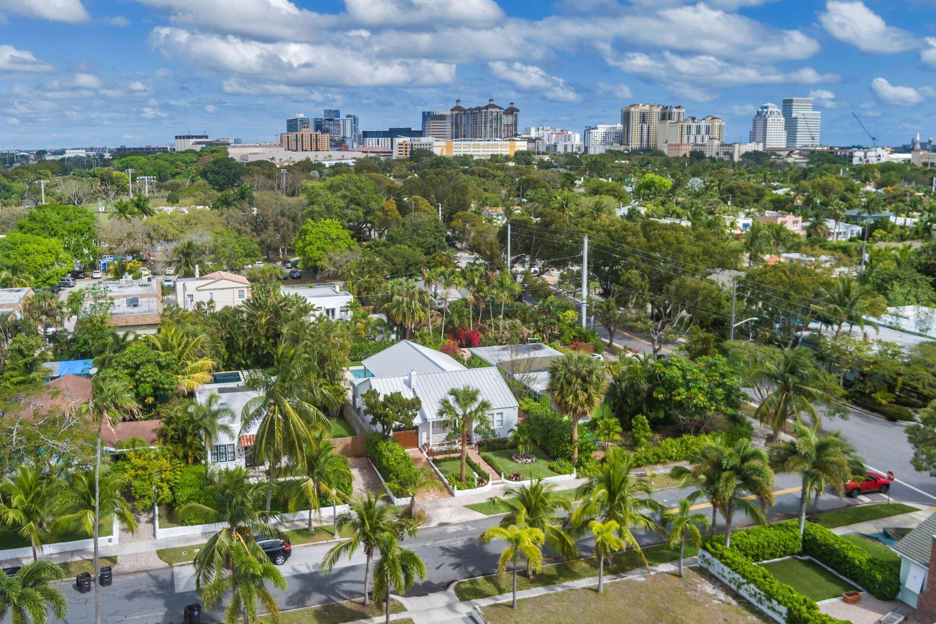 True Florida Bungalow in the Heart of Historic Flamingo Park! Spectacularly renovated to combine modern amenities with 'Old Florida' charm. Situated on an elevated lot, a welcoming front porch opens to a light filled living room with original fireplace. Wide-plank floors throughout, impact windows and doors! Gorgeous kitchen with quartz counters, prep island with sink, abundant cabinetry, gas range & high vaulted ceilings extending over dining area. Large primary bedroom opens to porch. Bright bath, dual vanities & oversized shower. 2 guest bedrooms with en suite baths. Large covered porch with cabana bath, New pool surrounded by greenery for the utmost private outdoor experience. 1 car garage with pull down stairs to attic. Brick paver drive and walkways. Close to everything downtown WPB
