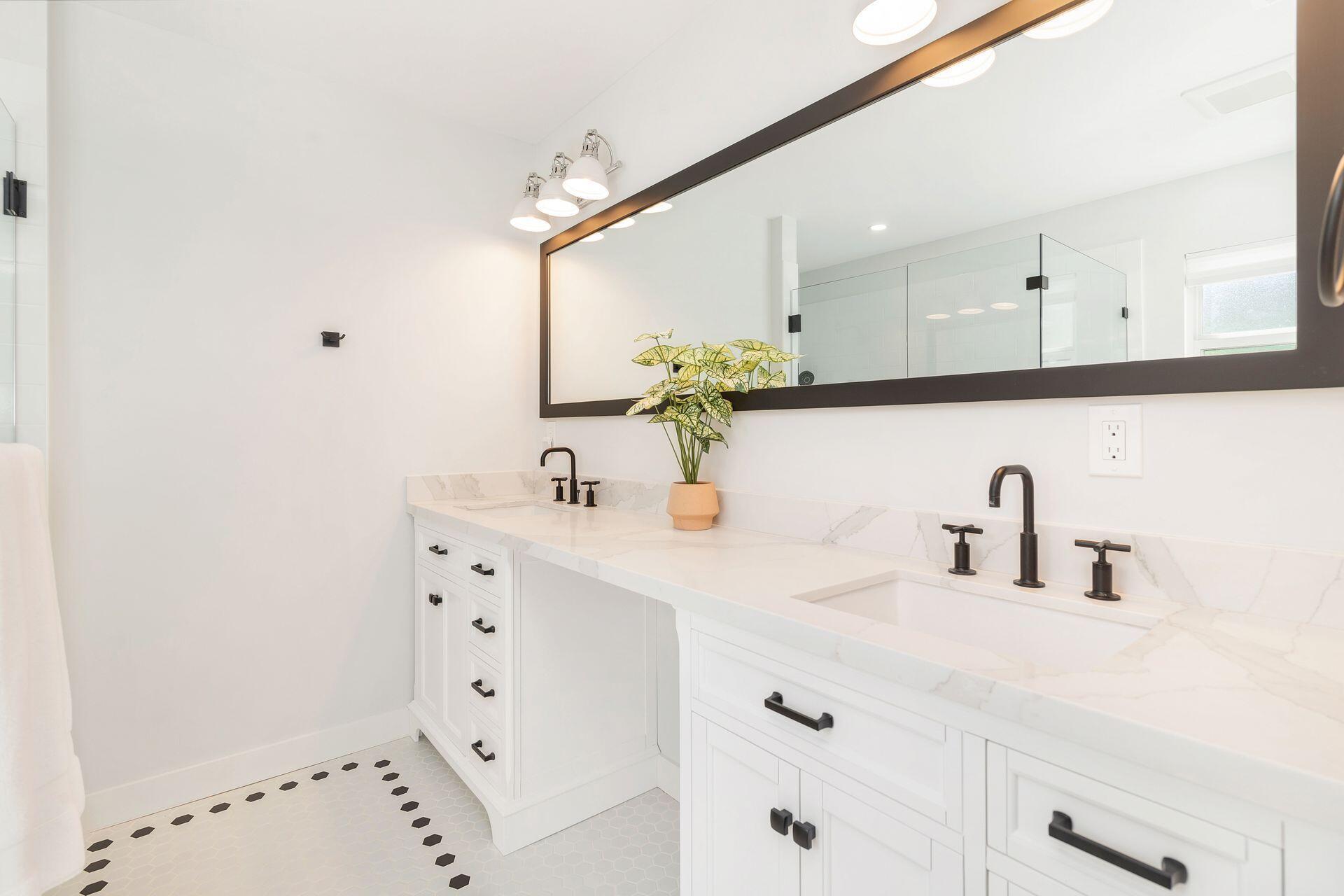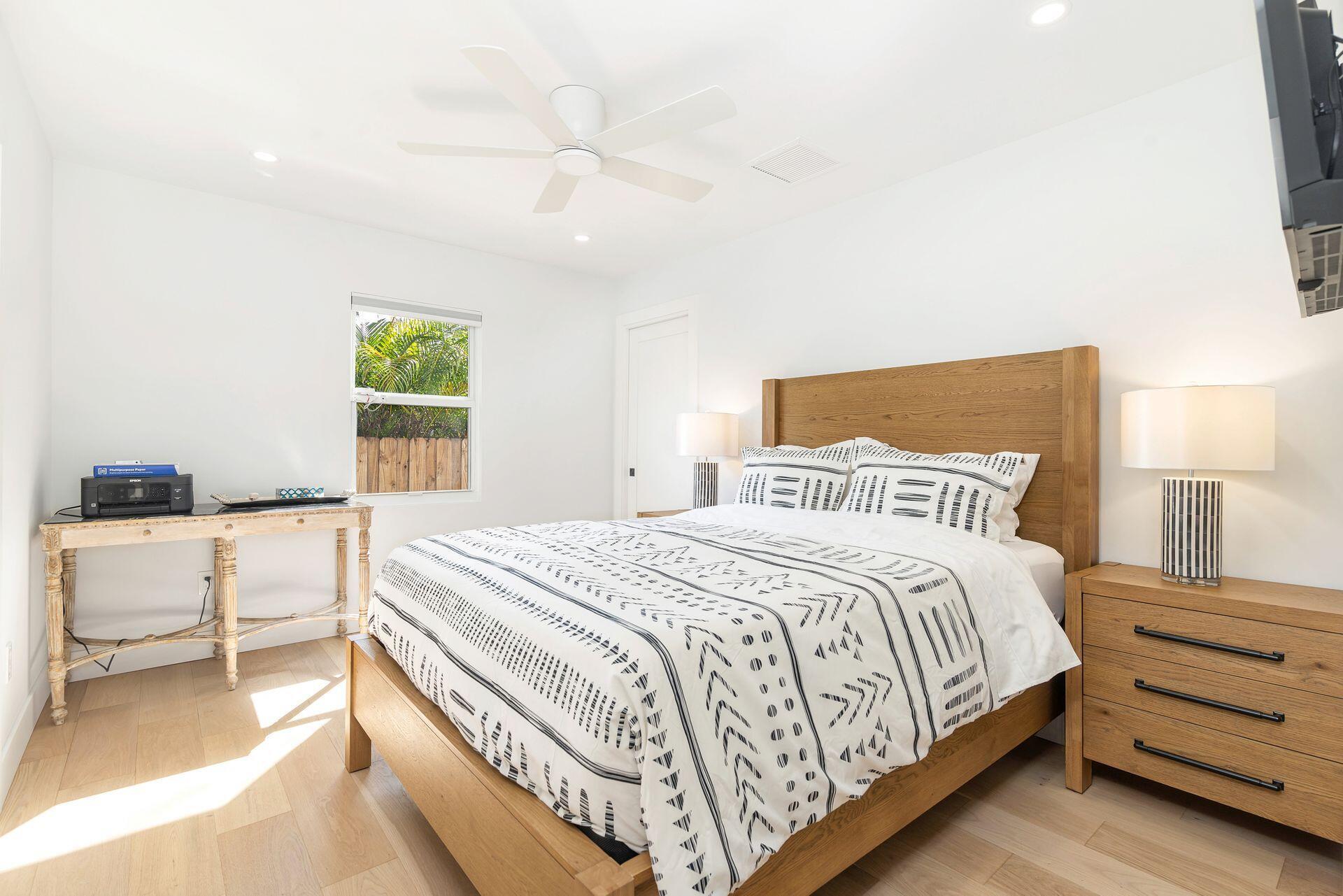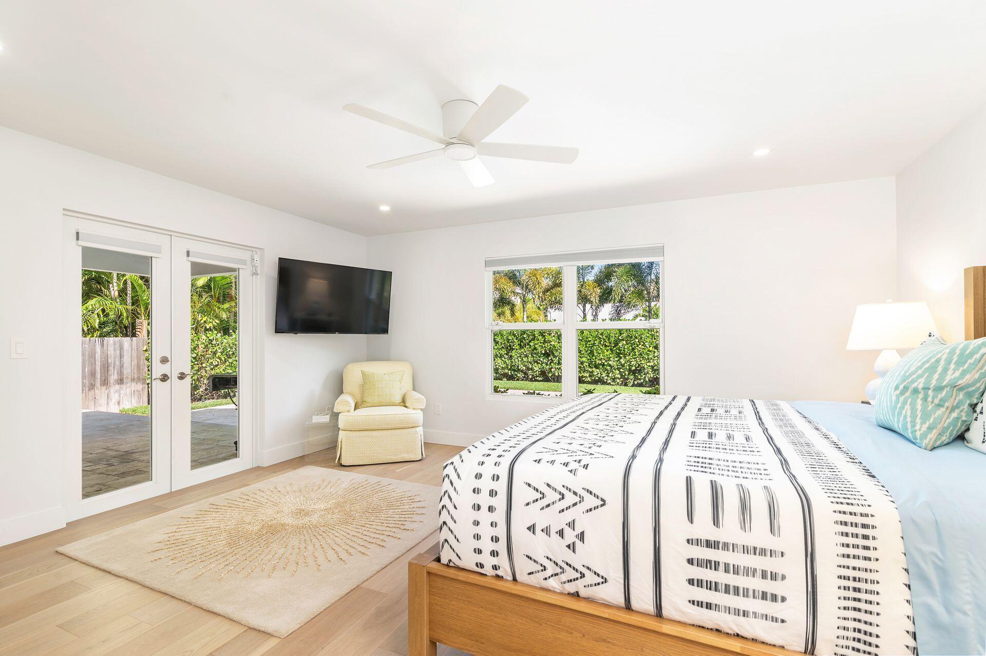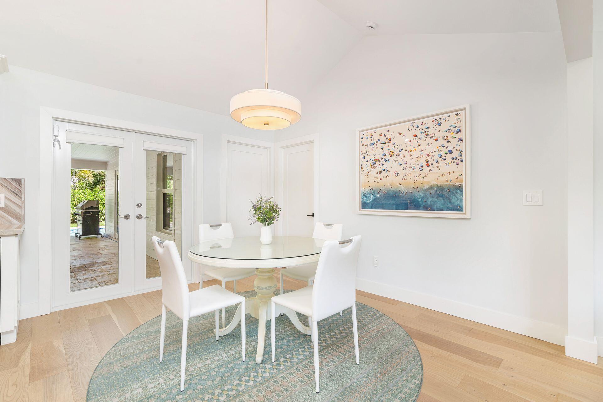 True Florida Bungalow in the Heart of Historic Flamingo Park! Spectacularly renovated to combine modern amenities with 'Old Florida' charm. Situated on an elevated lot, a welcoming front porch opens to a light filled living room with original fireplace. Wide-plank floors throughout, impact windows and doors! Gorgeous kitchen with quartz counters, prep island with sink, abundant cabinetry, gas range & high vaulted ceilings extending over dining area. Large primary bedroom opens to porch. Bright bath, dual vanities & oversized shower. 2 guest bedrooms with en suite baths. Large covered porch with cabana bath, New pool surrounded by greenery for the utmost private outdoor experience. 1 car garage with pull down stairs to attic. Brick paver drive and walkways. Close to everything downtown WPB