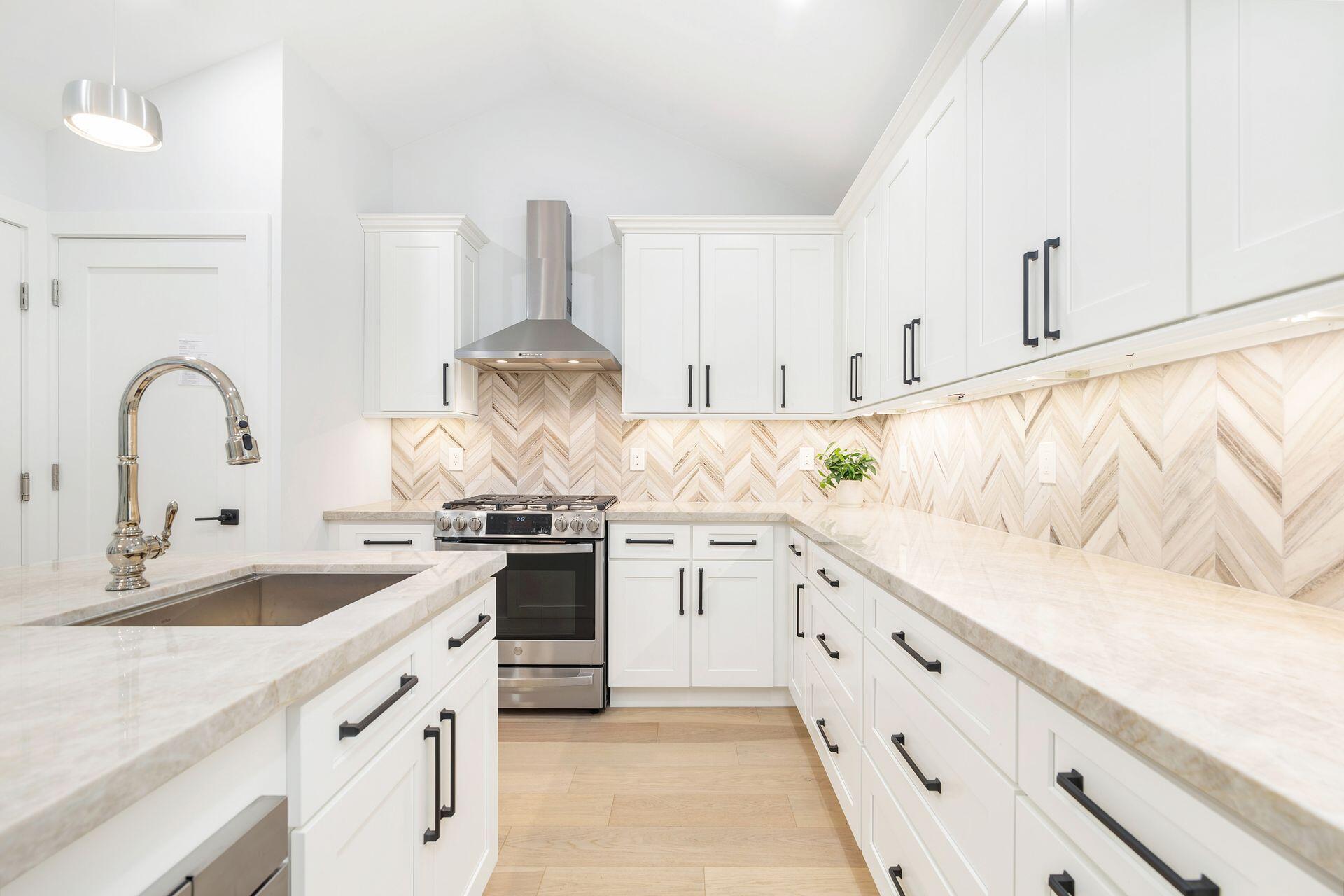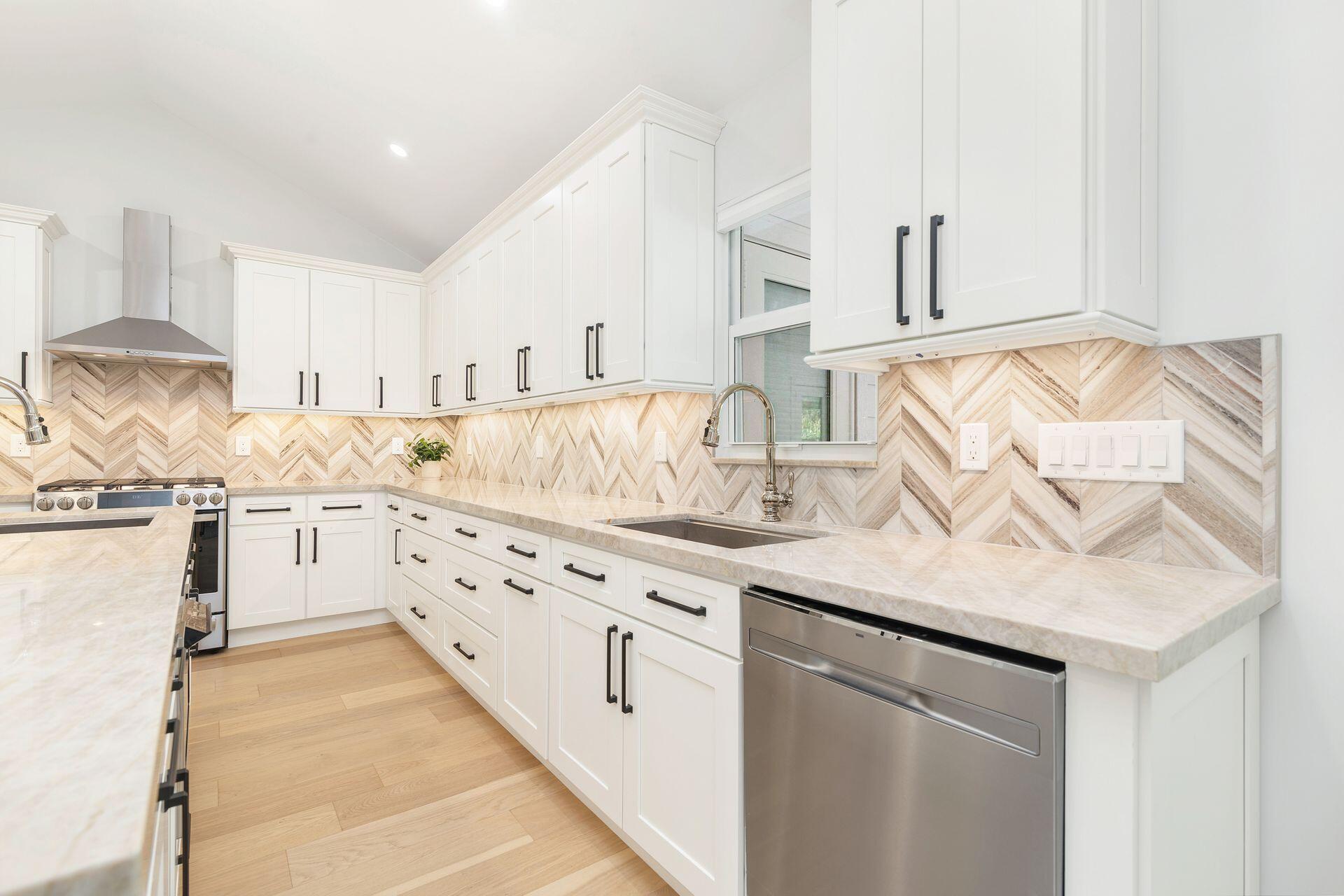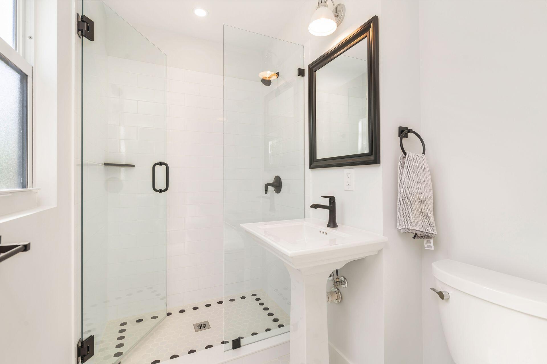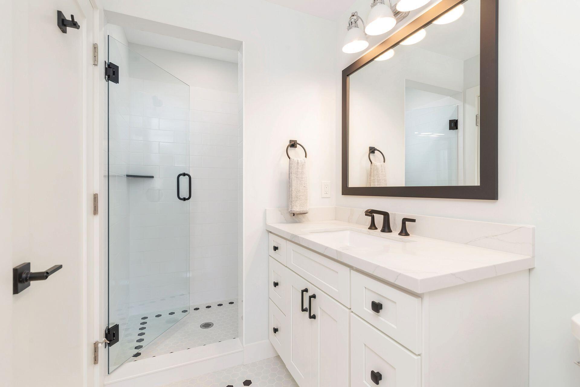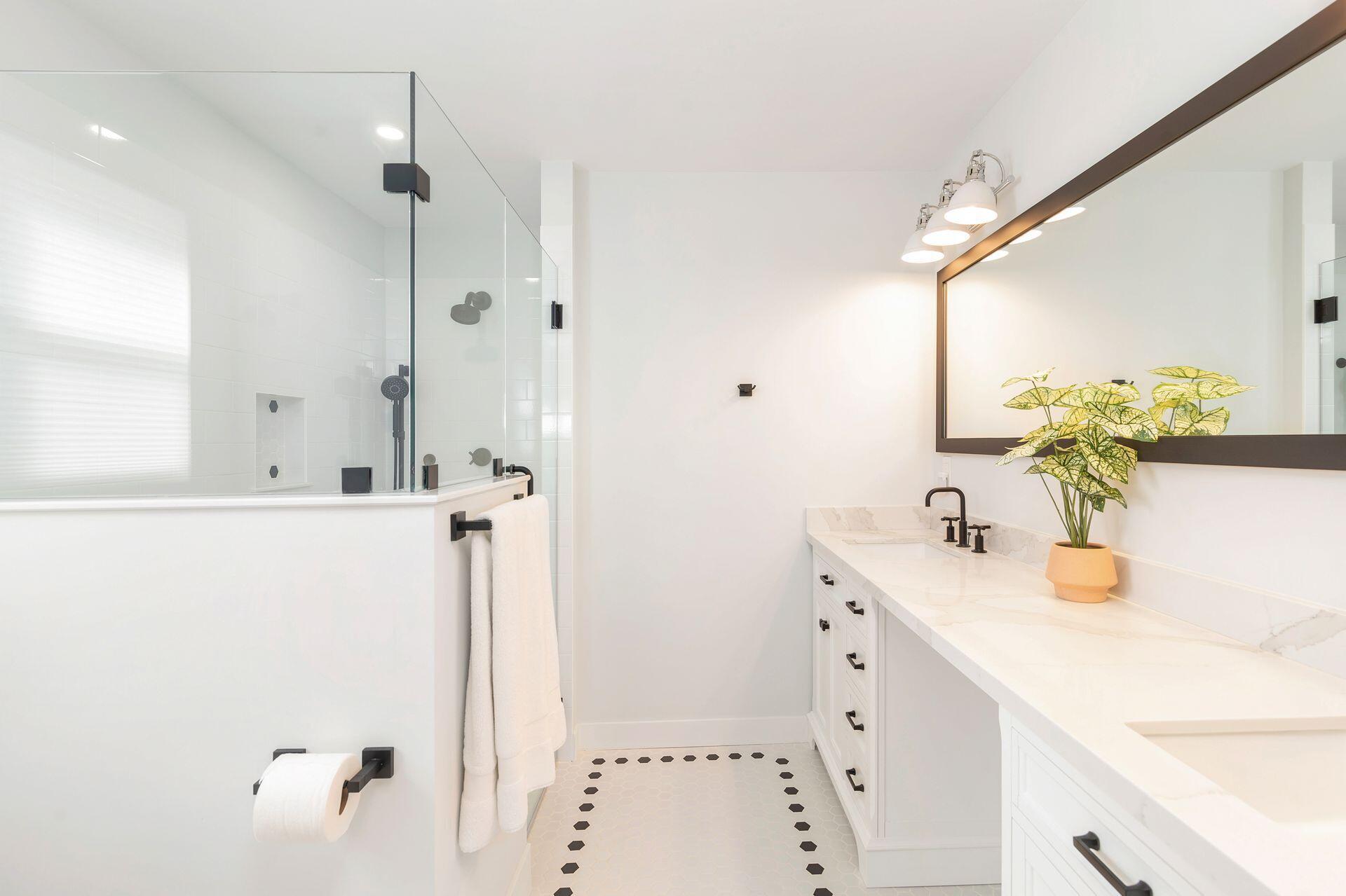True Florida Bungalow in the Heart of Historic Flamingo Park! Spectacularly renovated to combine modern amenities with 'Old Florida' charm. Situated on an elevated lot, a welcoming front porch opens to a light filled living room with original fireplace. Wide-plank floors throughout, impact windows and doors! Gorgeous kitchen with quartz counters, prep island with sink, abundant cabinetry, gas range & high vaulted ceilings extending over dining area. Large primary bedroom opens to porch. Bright bath, dual vanities & oversized shower. 2 guest bedrooms with en suite baths. Large covered porch with cabana bath, New pool surrounded by greenery for the utmost private outdoor experience. 1 car garage with pull down stairs to attic. Brick paver drive and walkways. Close to everything downtown WPB