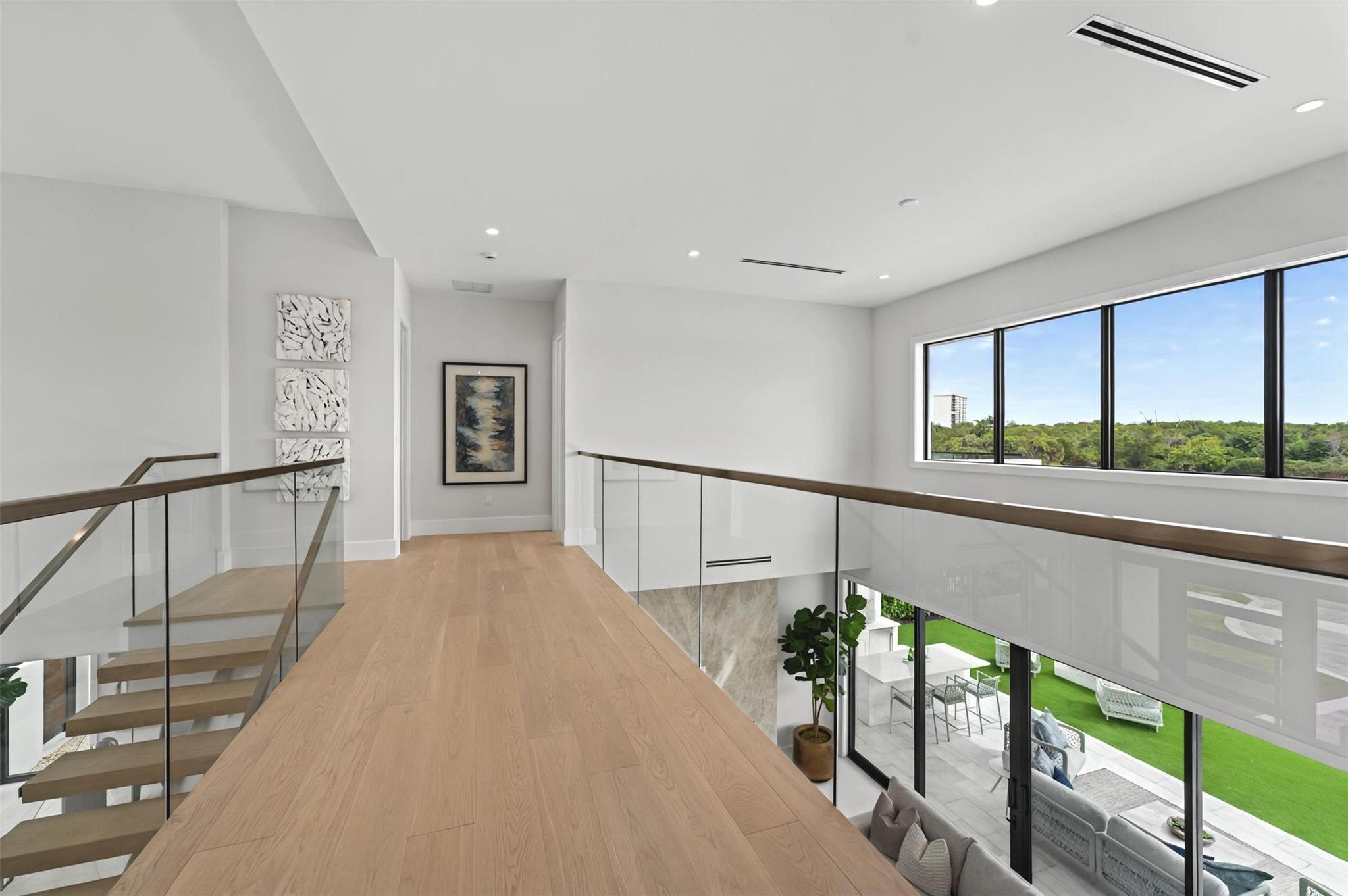 This newly built 6-bed, 6.5-baths waterfront masterpiece boasts 85 feet of prime Intracoastal frontage and unobstructed views of Birch State Park. A floating glass staircase serves as a striking centerpiece, while floor-to-ceiling windows frame breathtaking water views. The chef’s kitchen boasts custom millwork, Wolf appliances, SubZero refrigerators, Miele coffee station, walk-in pantry, and a cooled wine room. The primary suite features a private terrace, spa bath and lively intracoastal action. Outside, a resort-style pool with iridescent pearl tile glistens, while a fire pit and wet bar overlook a dockside paradise, creating the ultimate entertaining space. Built by renowned builder Glenn Wright and pre-wired by Illusive Automation, this estate blends innovation with timeless elegance