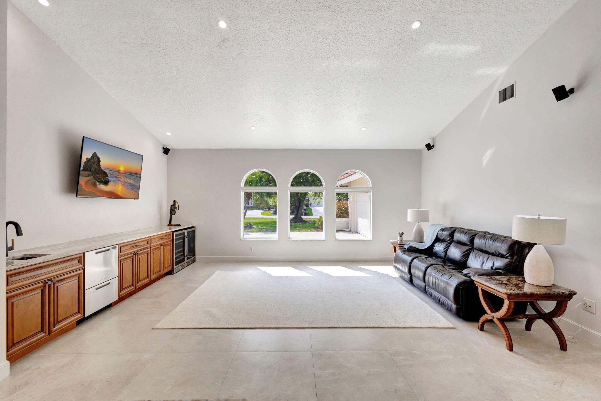 Imagine yourself in this sophisticated residence within the coveted Banyan Lakes gated community! Set on a lush, sprawling acre, this freshly painted abode presents a stunning interior with vaulted ceilings, stylish tile flooring, and upgraded impact windows. The entertainer's kitchen features stainless steel appliances, abundant cabinetry, and granite countertops extending to the multi-seater island. Your primary suite steals the show with its coved ceiling, walk-in closet, and convenient ensuite. A resort-inspired screened-in patio is ideal for gatherings by the pristine pool. Notables include brand-new roofing, an attached oversized 3-car garage, access to community amenities, and activities such as kayaking, water-skiing, and swimming. Come for a tour before it passes you by!