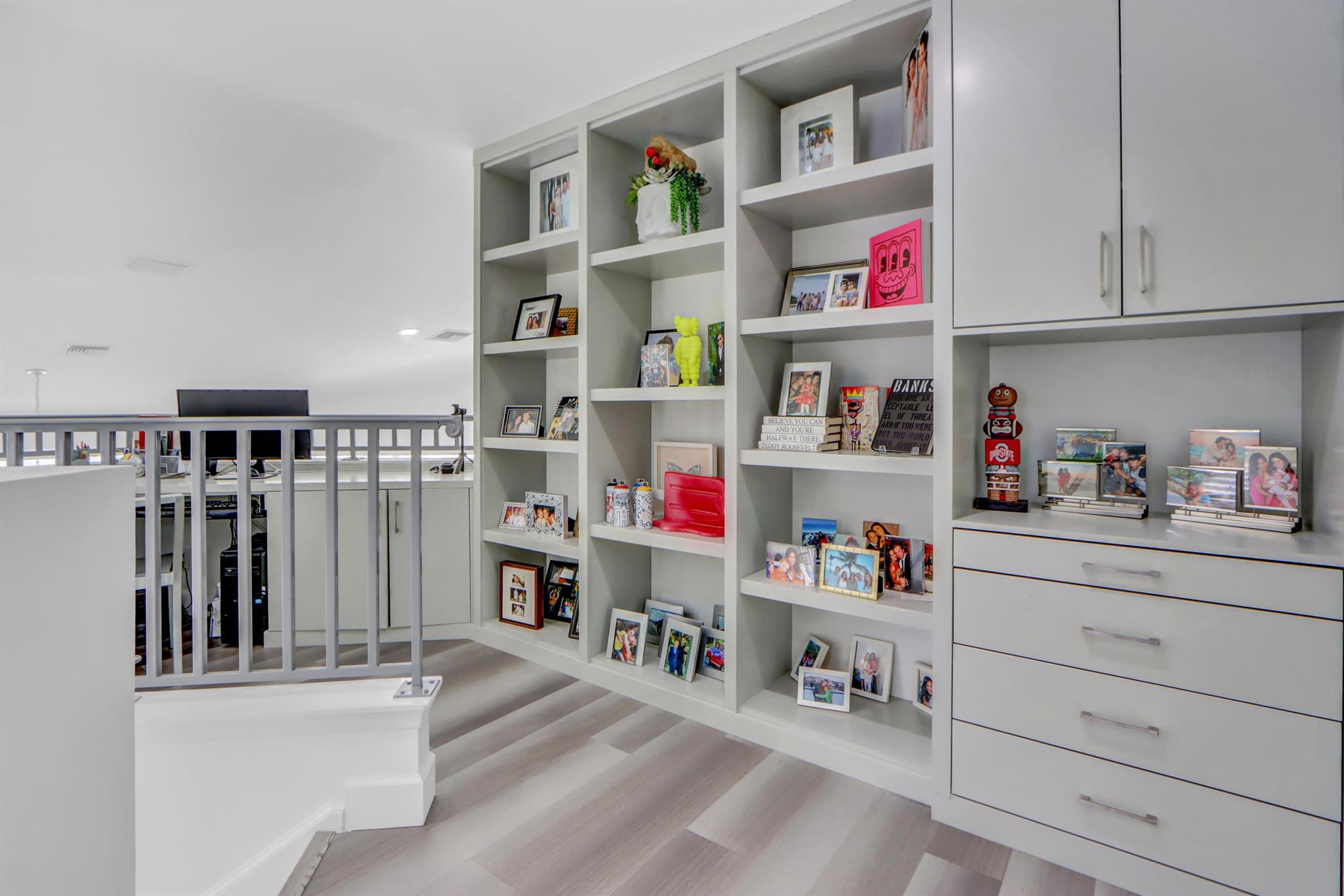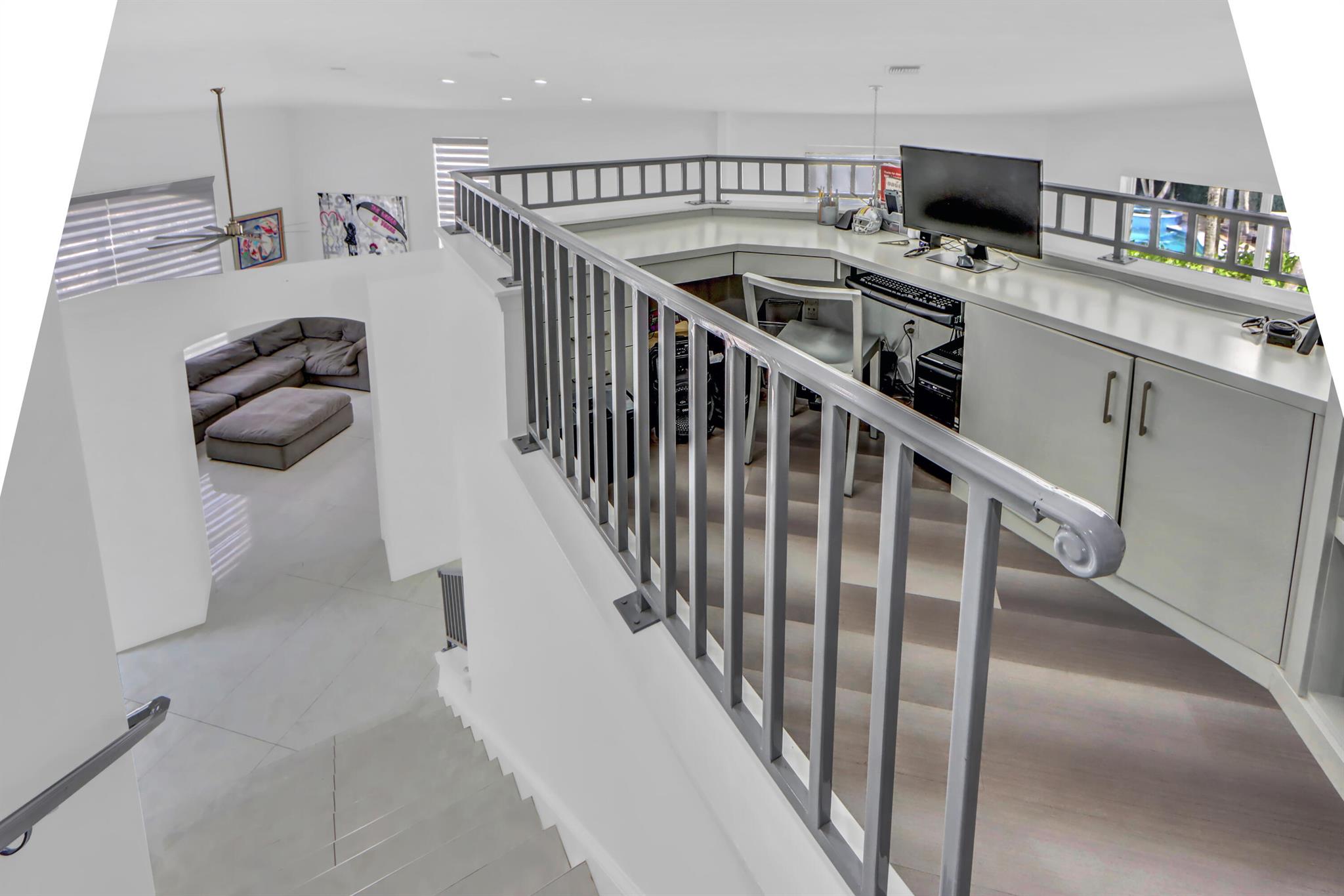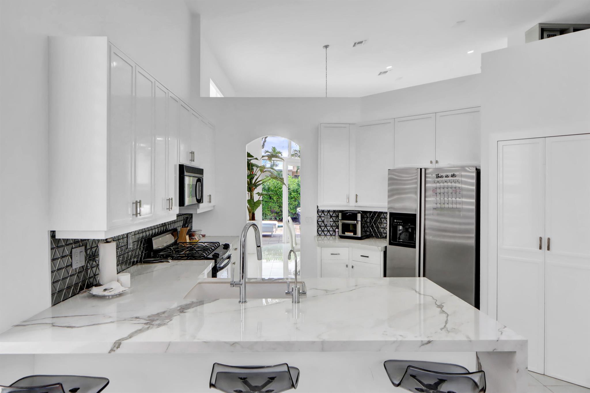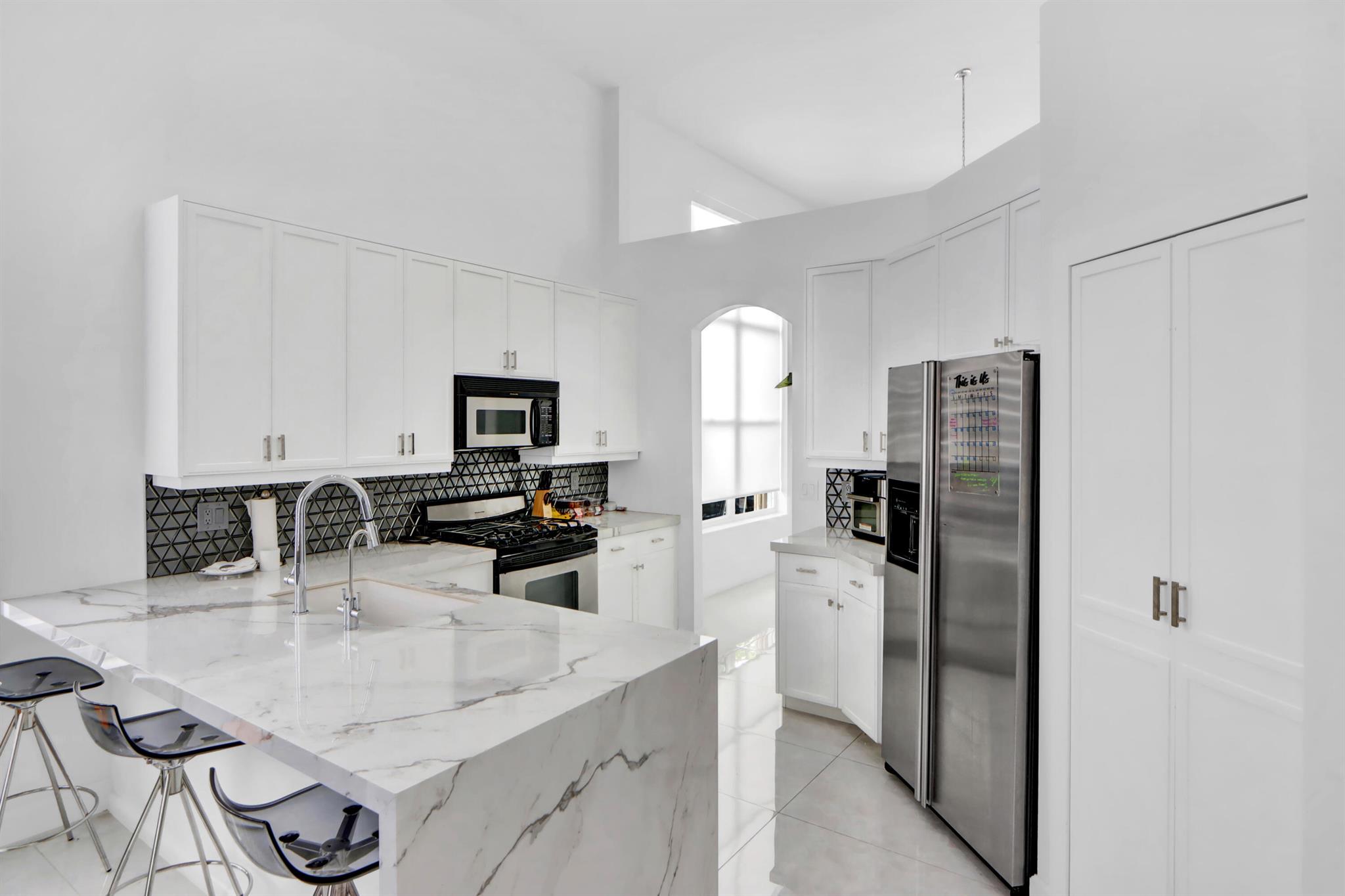 Frosted glass front door opens into this immaculate two-story home offering 3 bedrooms & 2 1/2 baths. This lovely home with a beautifully landscaped front elevation is spacious & tastefully appointed featuring volume ceilings; 2' X 4' white porcelain tile & luxury vinyl flooring; a remodeled contemporary open kitchen with 42'' white shaker style cabinetry, quartz countertops, decorative mirrored tile backsplash & breakfast counter seating; built-in loft office in light grey; custom window treatments; FLAT wall finish; a large master suite with custom closet design in light wood; garage storage cabinetry; and hurricane accordion shutters. French doors open to a charming private open patio. AC approx 2018, water heater 2024.