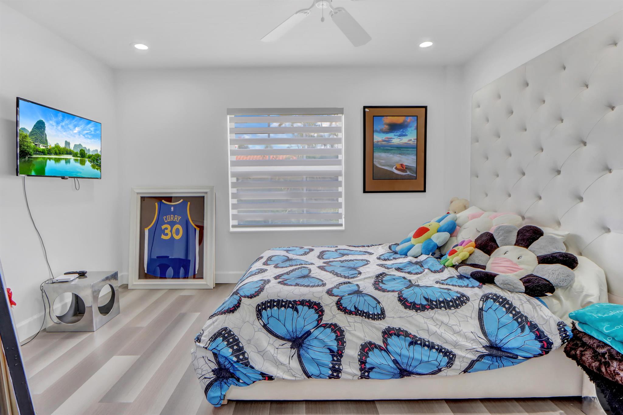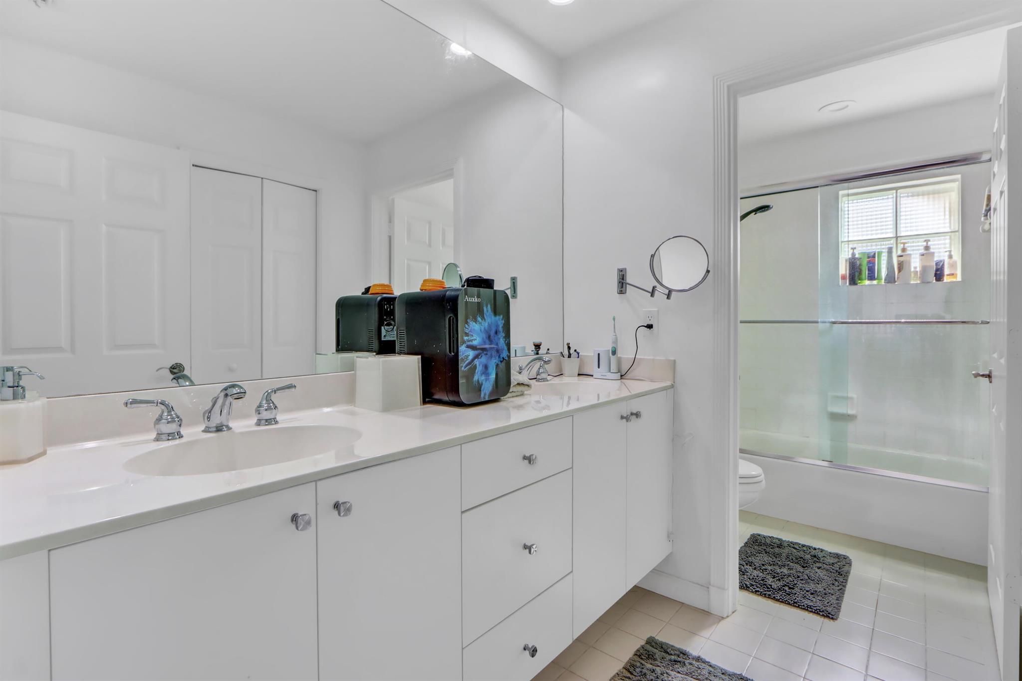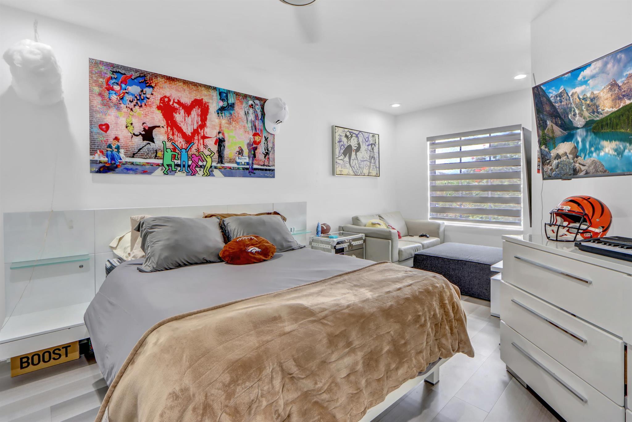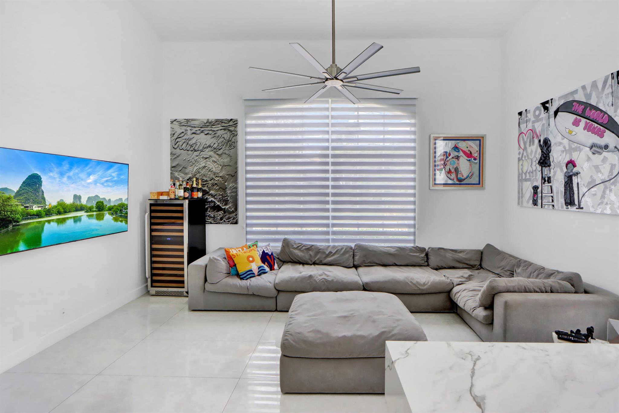 Frosted glass front door opens into this immaculate two-story home offering 3 bedrooms & 2 1/2 baths. This lovely home with a beautifully landscaped front elevation is spacious & tastefully appointed featuring volume ceilings; 2' X 4' white porcelain tile & luxury vinyl flooring; a remodeled contemporary open kitchen with 42'' white shaker style cabinetry, quartz countertops, decorative mirrored tile backsplash & breakfast counter seating; built-in loft office in light grey; custom window treatments; FLAT wall finish; a large master suite with custom closet design in light wood; garage storage cabinetry; and hurricane accordion shutters. French doors open to a charming private open patio. AC approx 2018, water heater 2024.