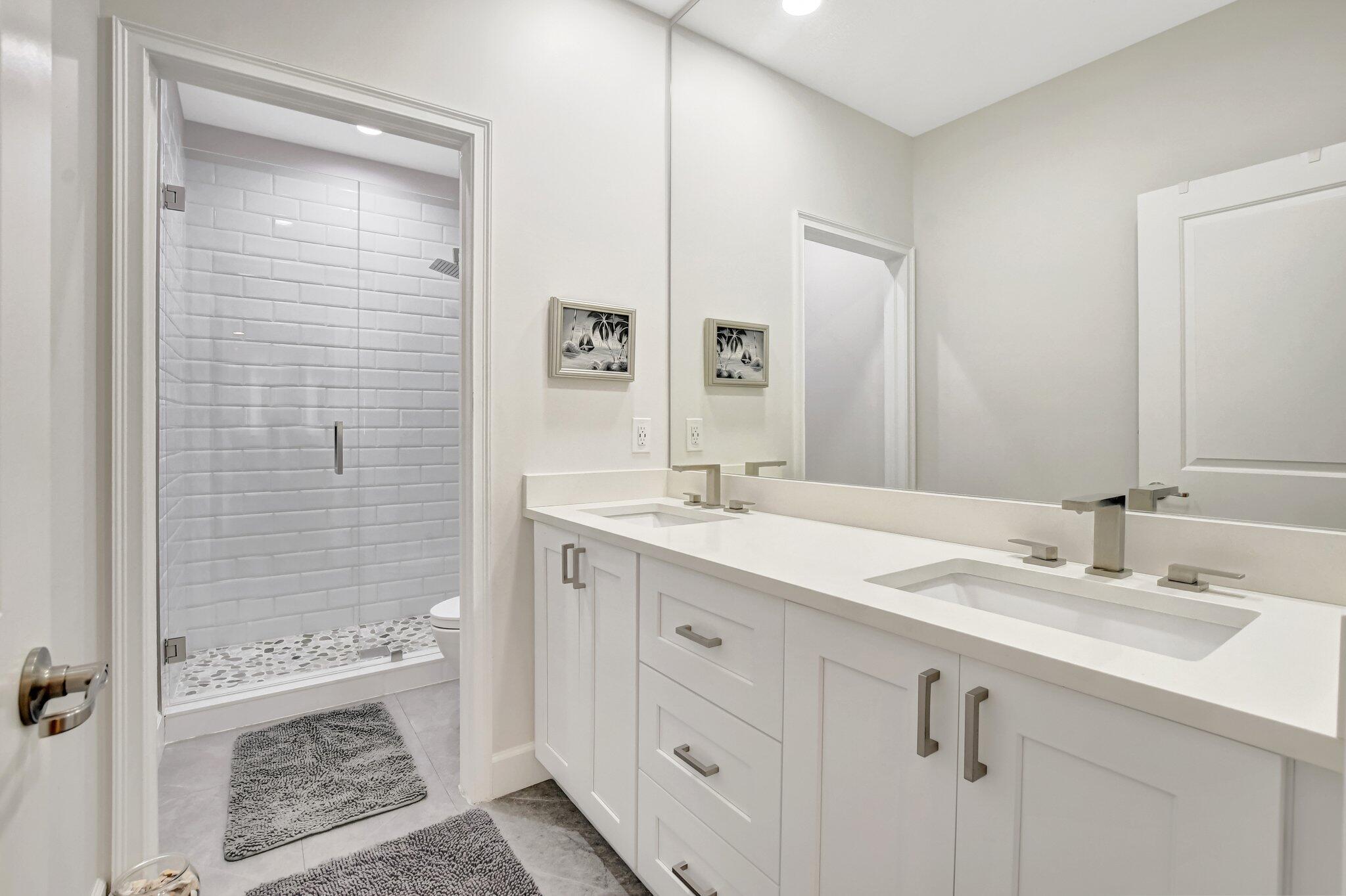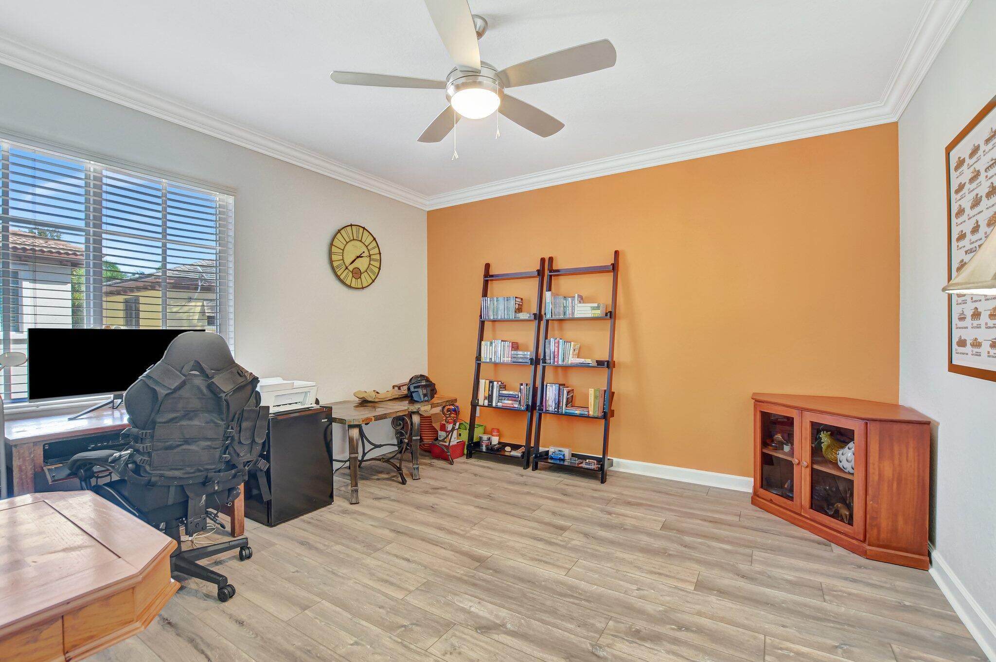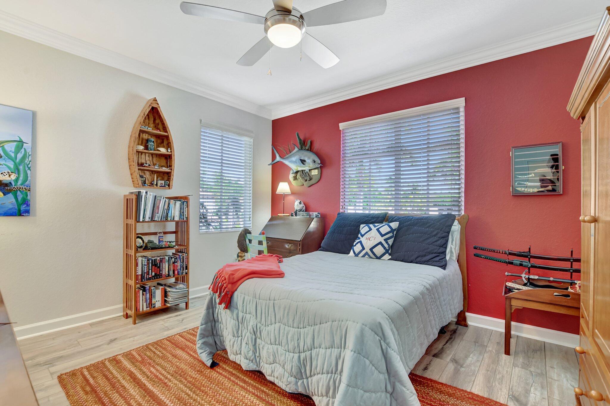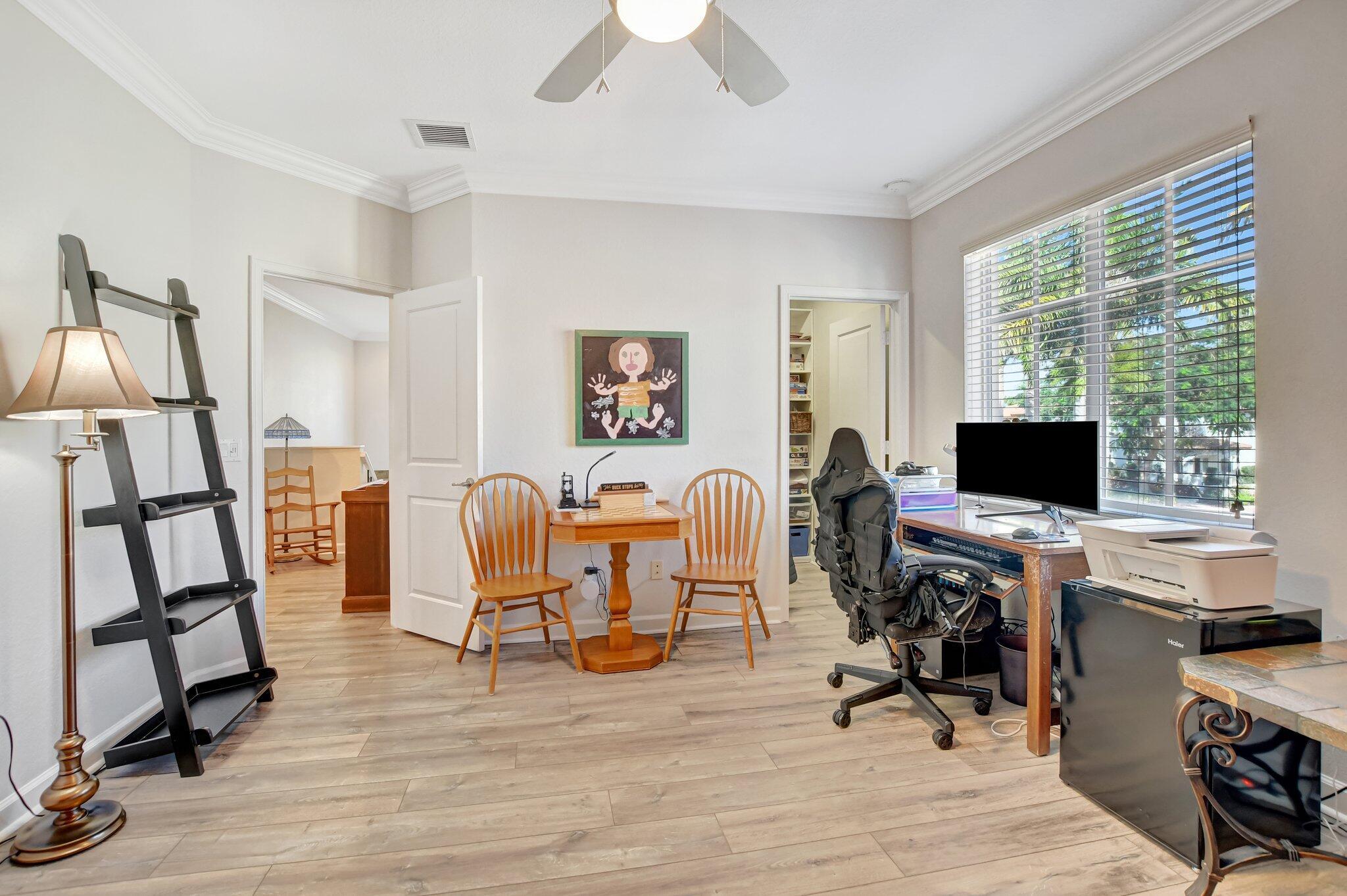 In the heart of East Boca, beautifully renovated single-family home in the picturesque community of Library Commons. The charming open concept with an abundance of light is perfect for entertaining. This stunning 4 bedroom, 2.5 bath residence, complete with office, has it all and embodies the essence of South Florida living and charm. The high-end kitchen features quartz countertops, an abundance of soft close cabinetry, Fisher & Paykel stainless steel appliances including a six-burner gas stove, a double drawer dishwasher, and built-in microwave, farmhouse sink, large kitchen island with storage, and a walk-in pantry are just a few things that make this kitchen so wonderful and functional.The kitchen seamlessly flows into a large family room, perfect for casual living which features