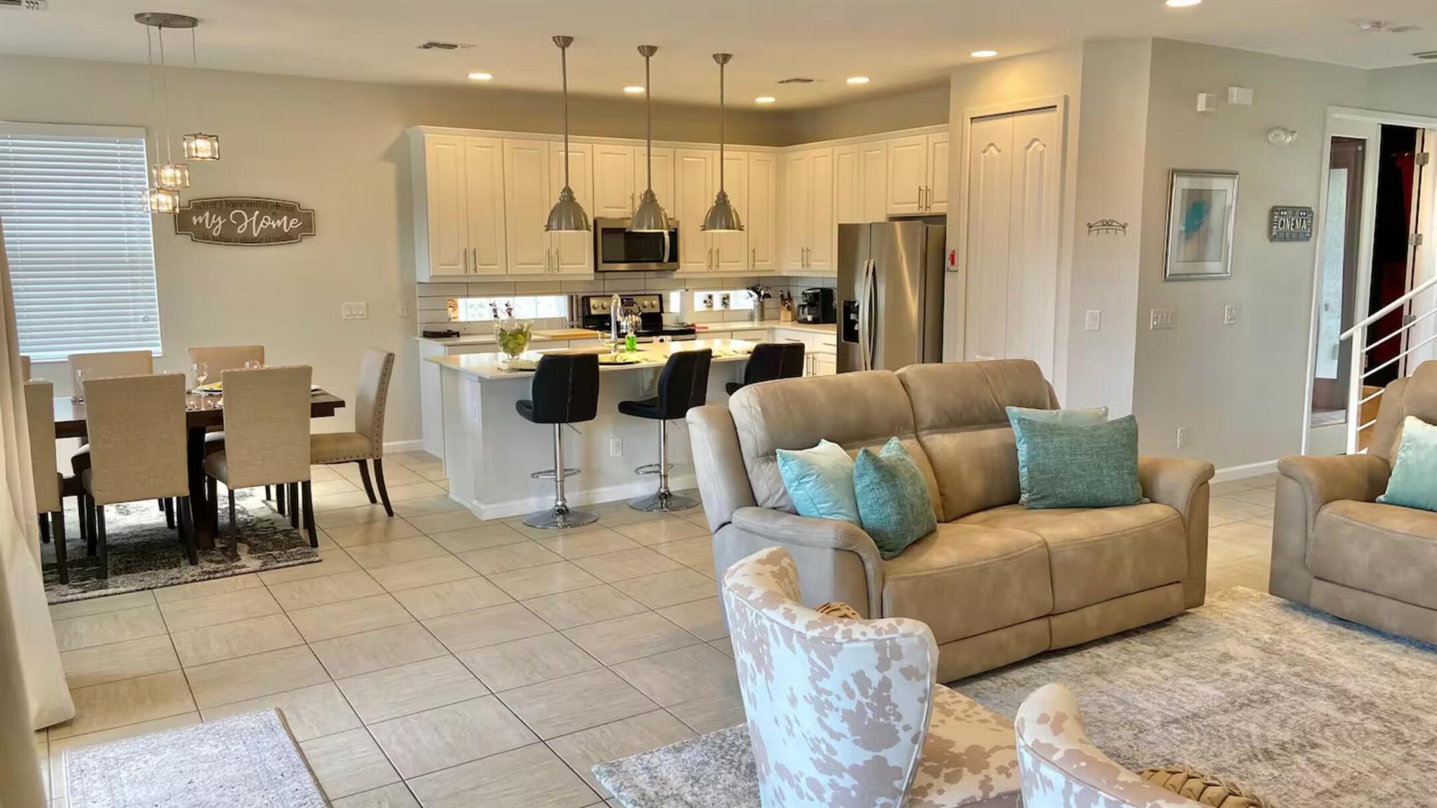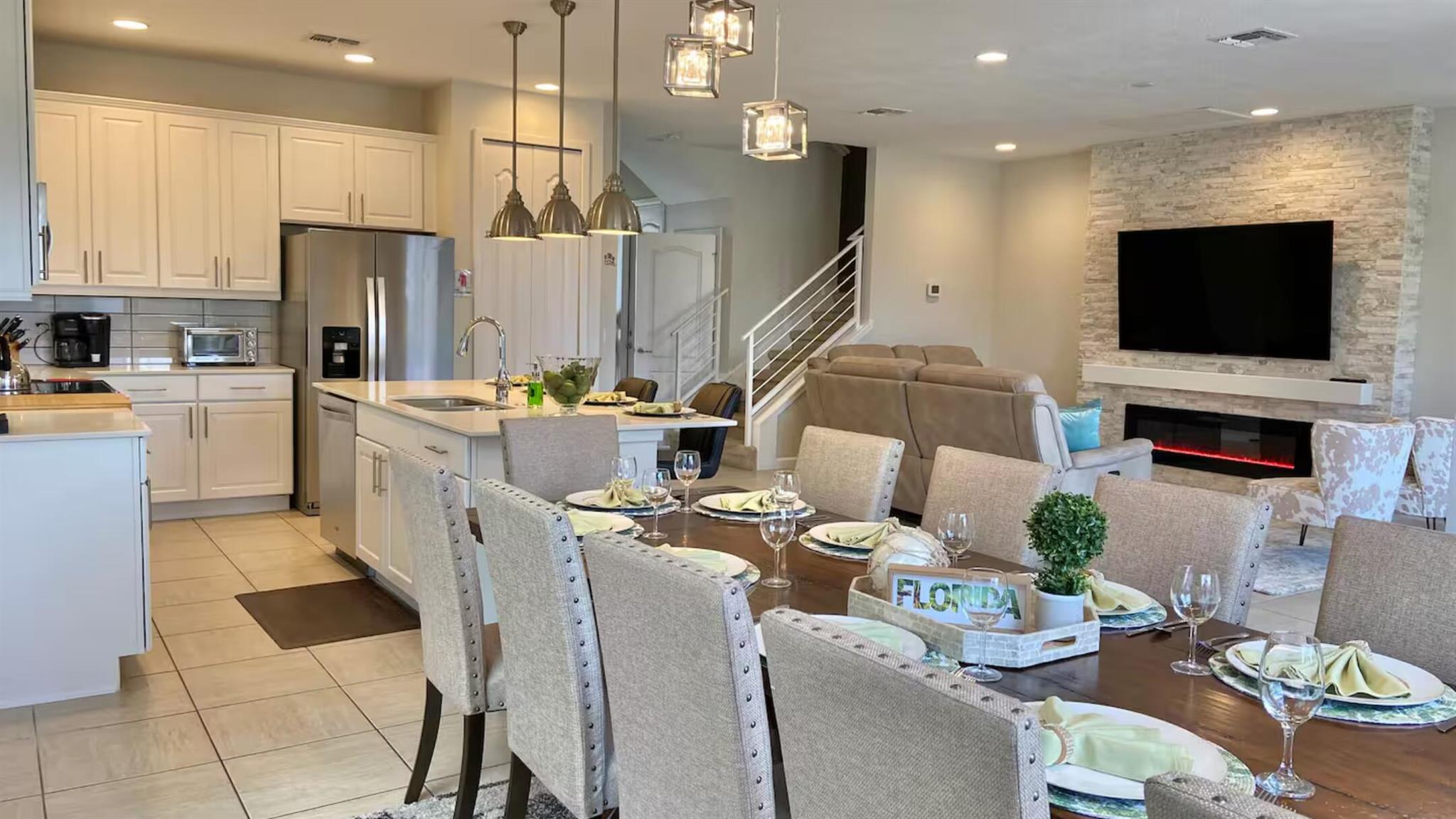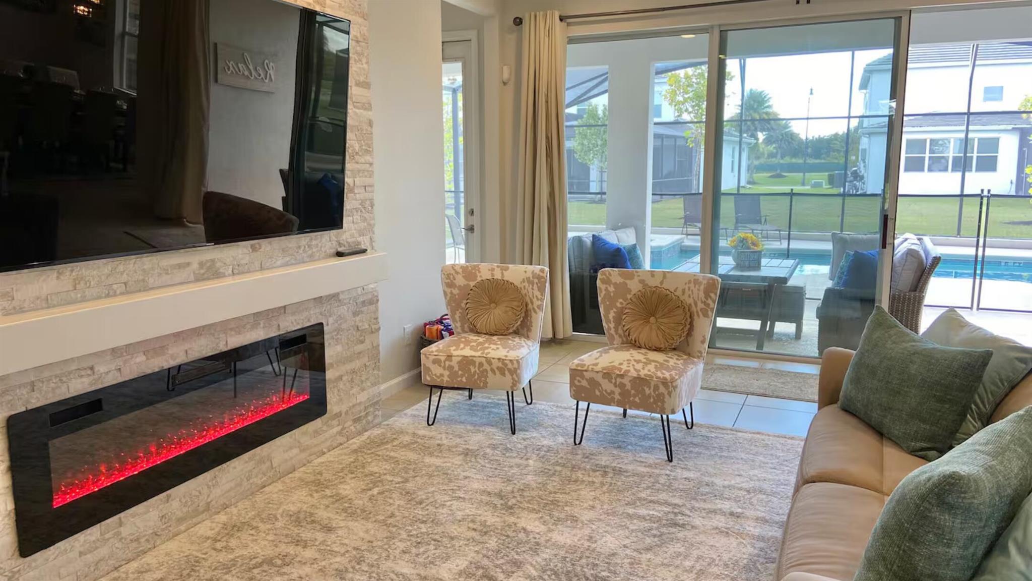Welcome to this stunning resort-style home in Sonoma Resort at Tapestry, just minutes from Disney. This open-concept home features a modern living area with an electric fireplace, large sliders to a screened-in private pool, and a layout perfect for entertaining. Located in a gated community with clubhouse, gym, and resort pool. Short-term rentals allowed for high ROI.