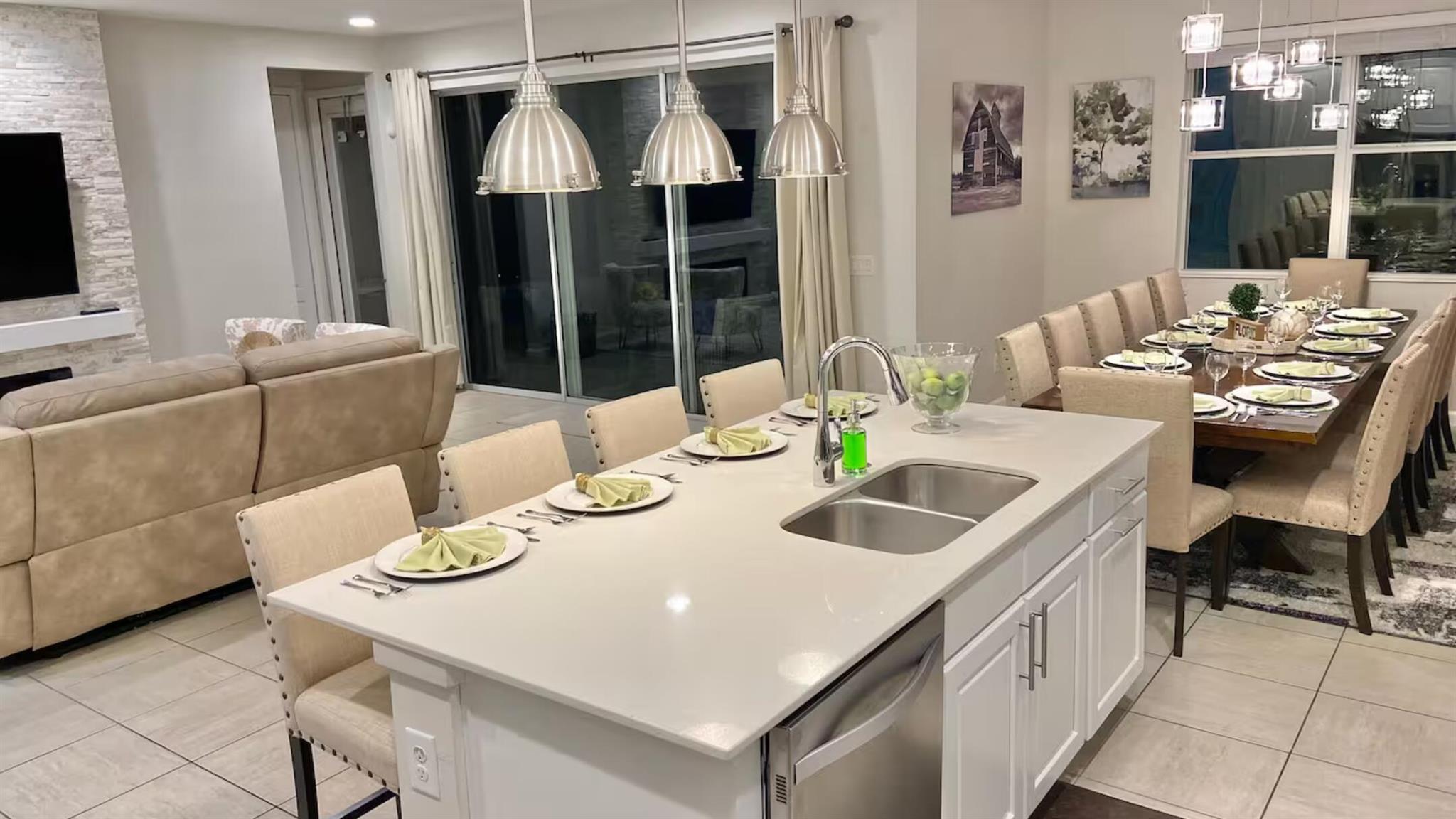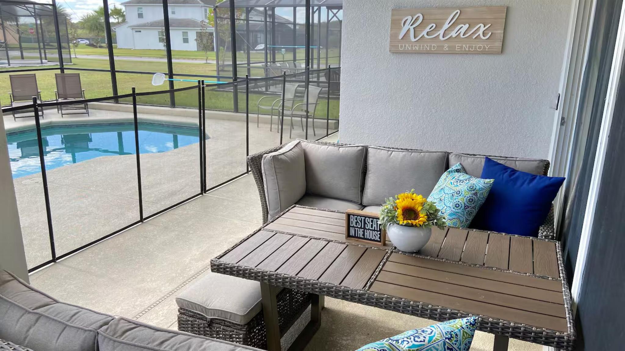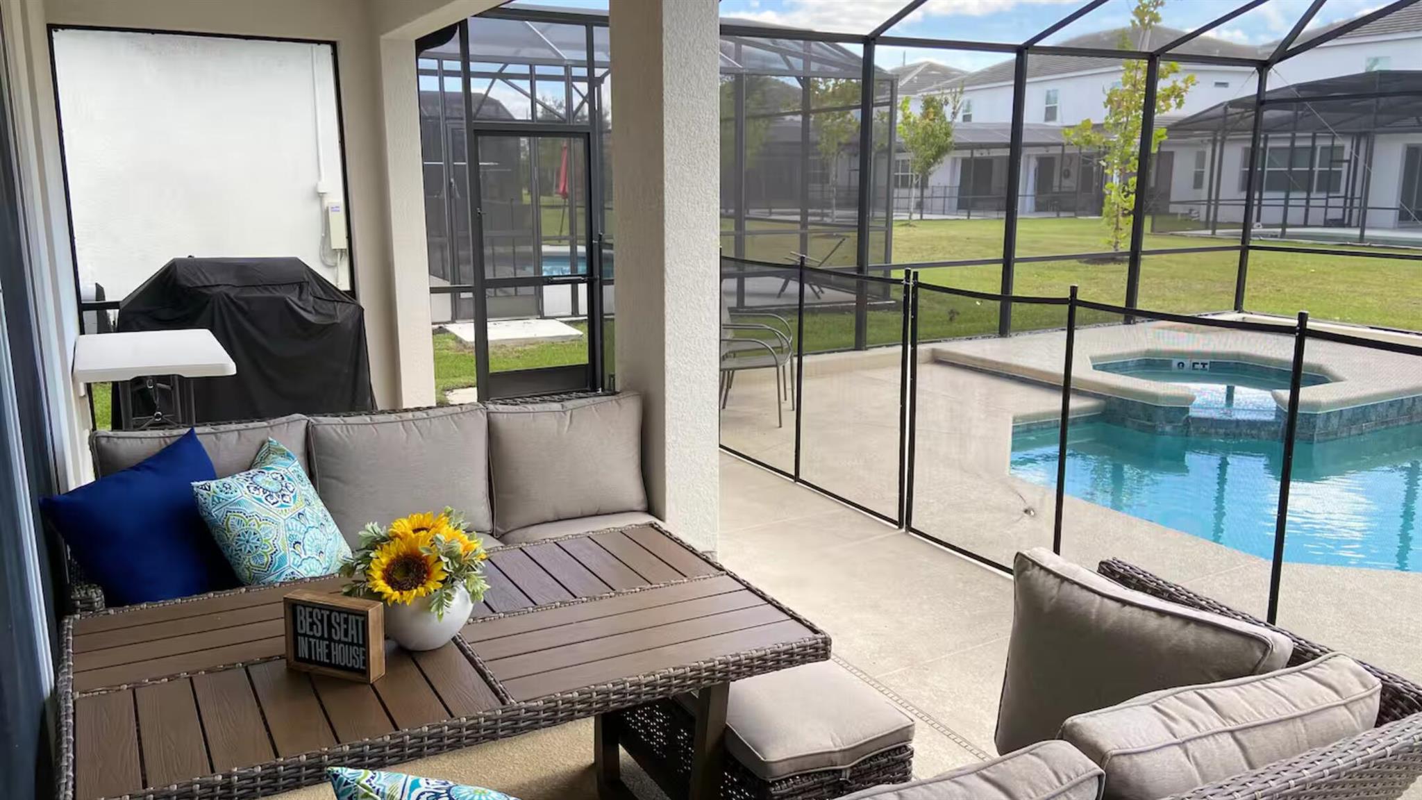 Welcome to this stunning resort-style home in Sonoma Resort at Tapestry, just minutes from Disney. This open-concept home features a modern living area with an electric fireplace, large sliders to a screened-in private pool, and a layout perfect for entertaining. Located in a gated community with clubhouse, gym, and resort pool. Short-term rentals allowed for high ROI.