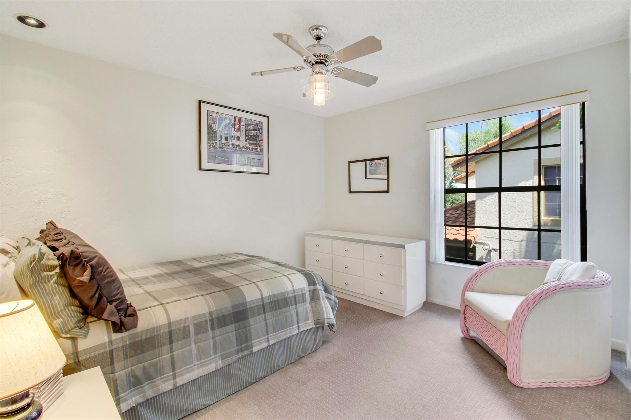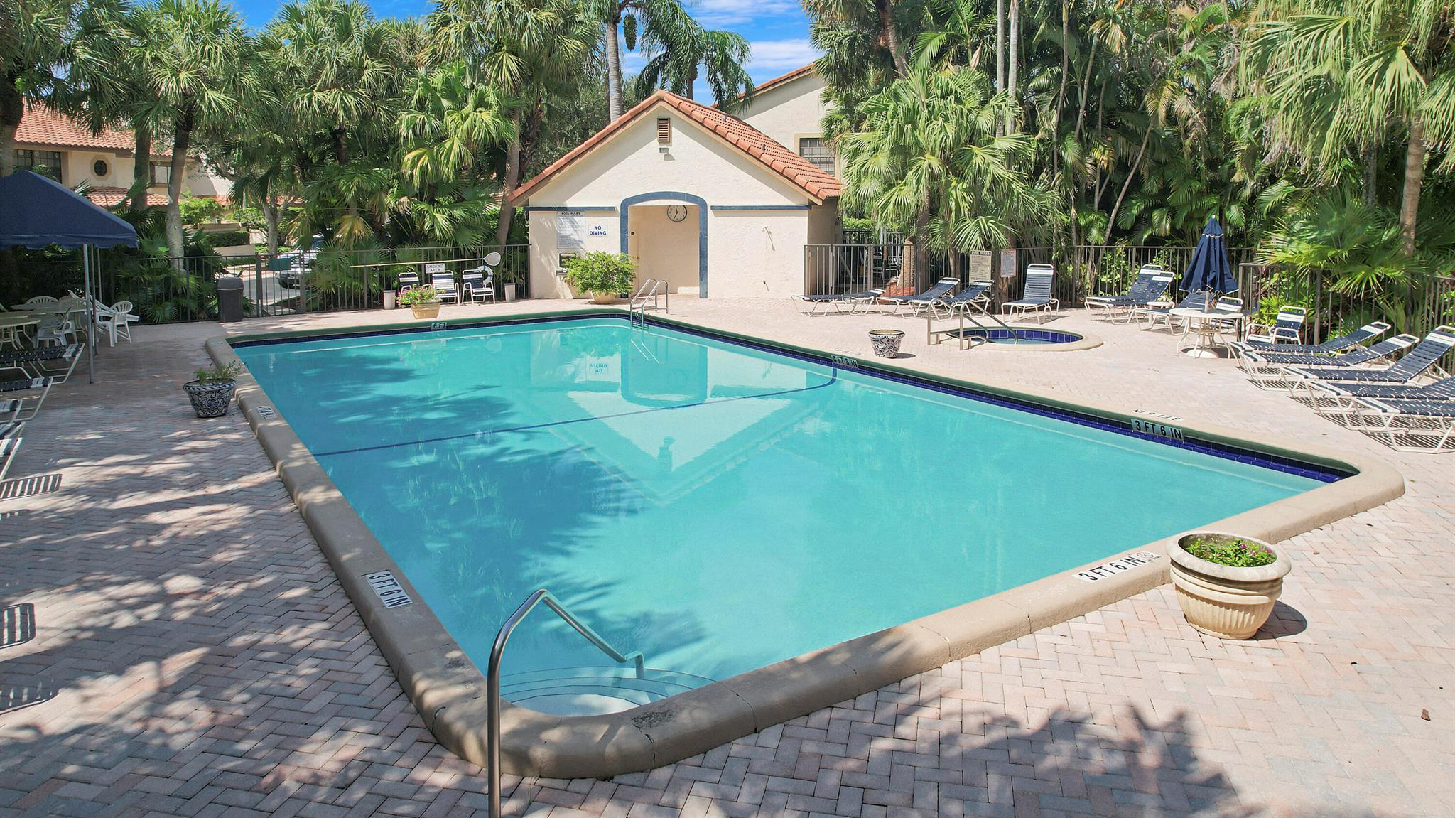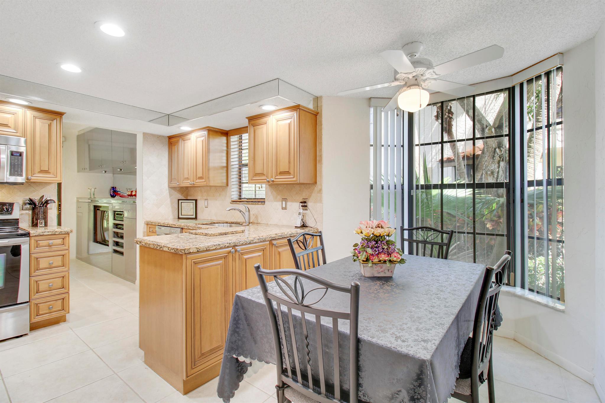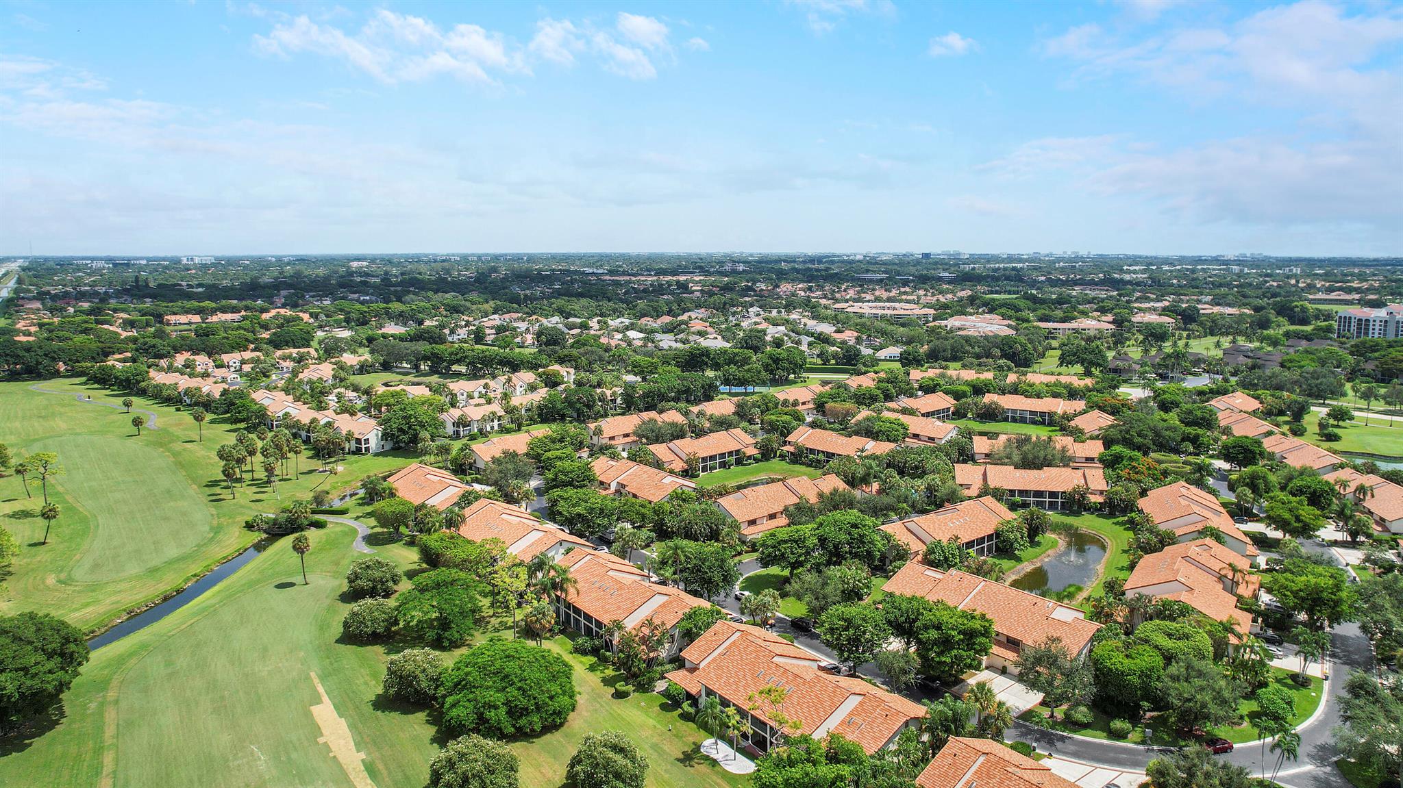 Mediterranean style townhome directly on the golf course is located in beautiful La Mirada@ Boca Pointe. This corner unit is a 3 bedroom, 2.5 bath, with high vaulted ceiling, open floor plan, with plenty of light. Eat-in kitchen, wood cabinets, granite counter-tops, stainless-steel appliance. Impact skylights, Glass enclosed patio comes with electric wind shades. All ages, & pet friendly community, Screened patio with views of both the golf course & it's beautiful greenery. 2 car impact garage doors. Manage on site. Community pool, & spa. Close to I95, turnpike, restaurants, schools, and our beautiful beaches. You don't need to be a member of Boca Pointe, but memberships are available