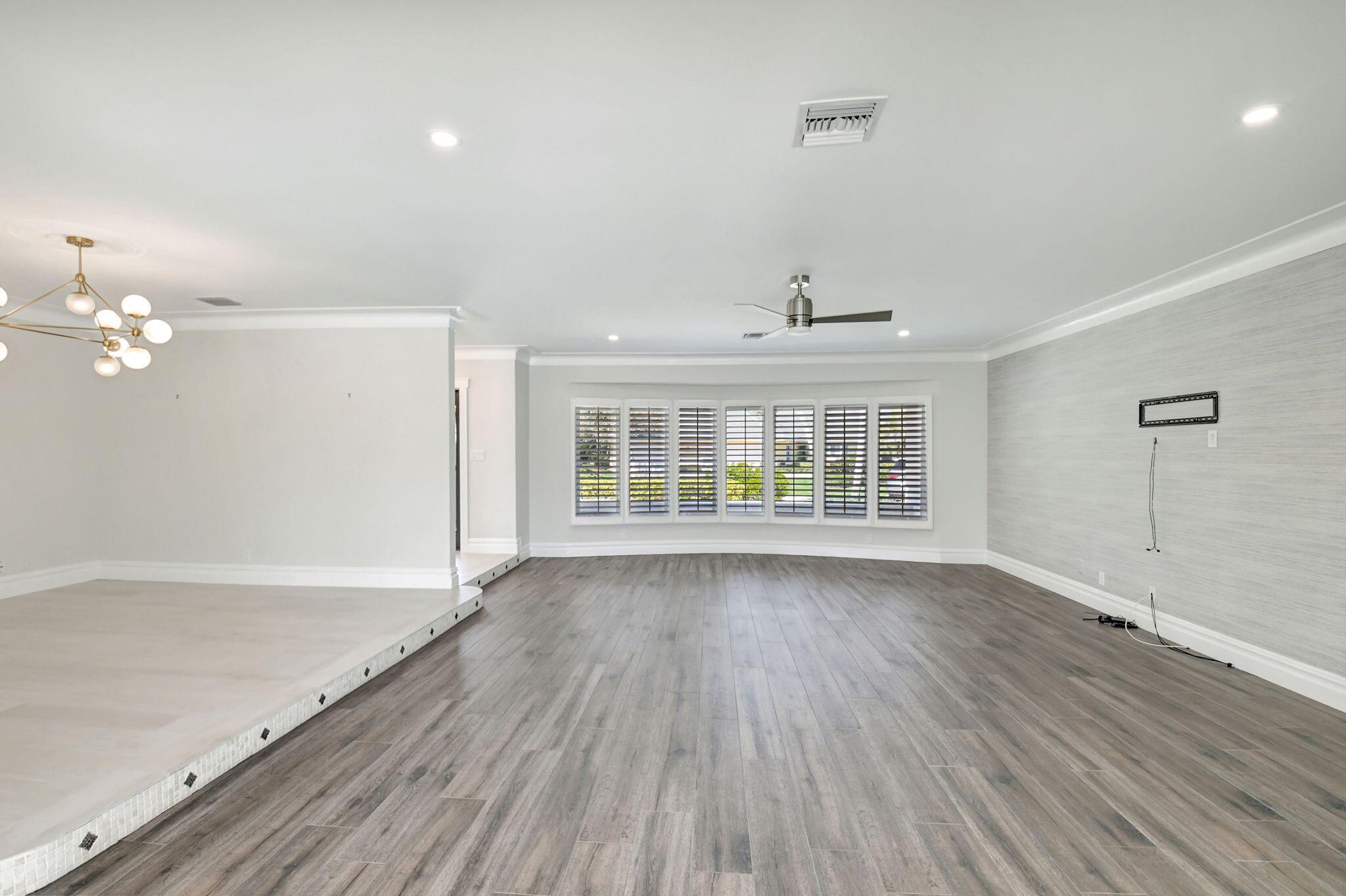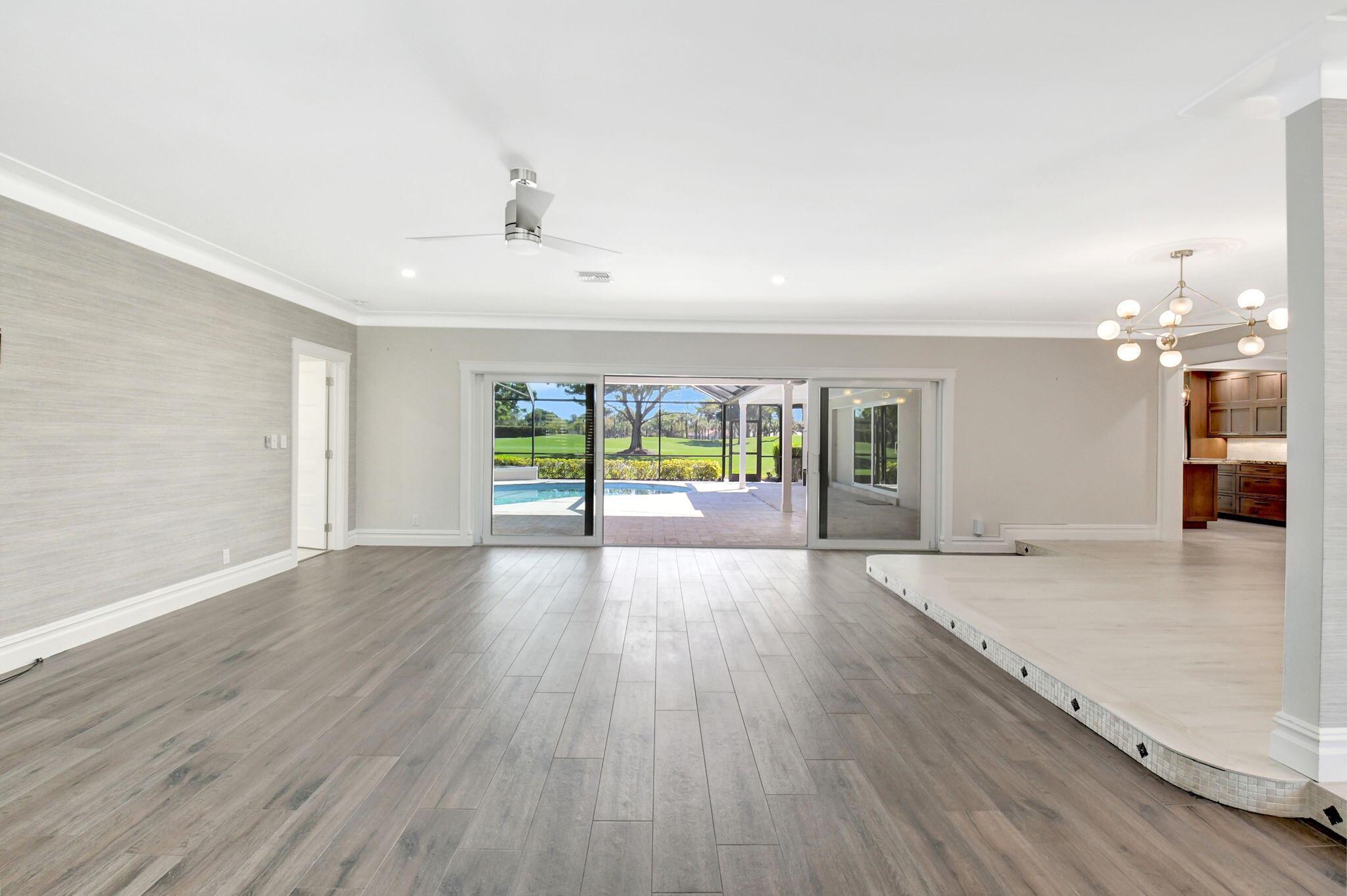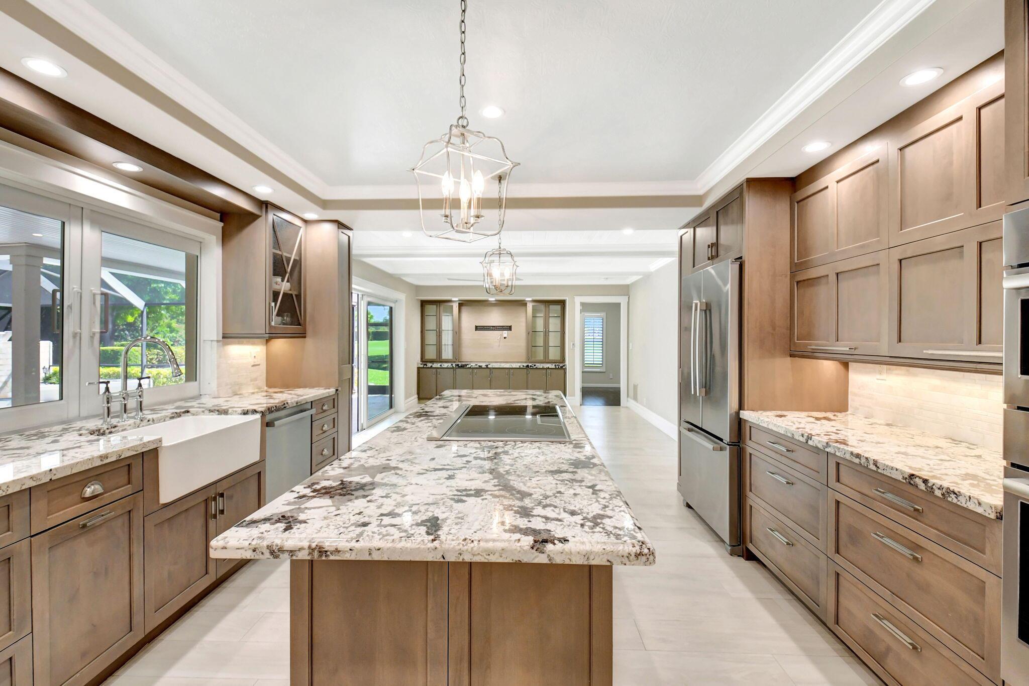 A rare opportunity is now available on one of the most exquisite golf course lots in Delray Dunes. You are greeted with expansive course views of 8th & 10th greens and 9th tee and a resort style heated pool area all from the large glass openings in almost all of the rooms. This beautiful 3BR/3BA pool home has a new roof in 2023, impact windows & a full home generator . The large 2 car garage also has a golf cart parking area.From the moment you enter the handcrafted double-door you will be impressed with the size of the rooms, the split bedrooms (all with ensuite baths and walk-in closets), a custom kitchen with custom wood cabinets, granite, Bosch and Thermador appliances plus a large pantry. All of this located in Delray Dunes Golf and Country Club.