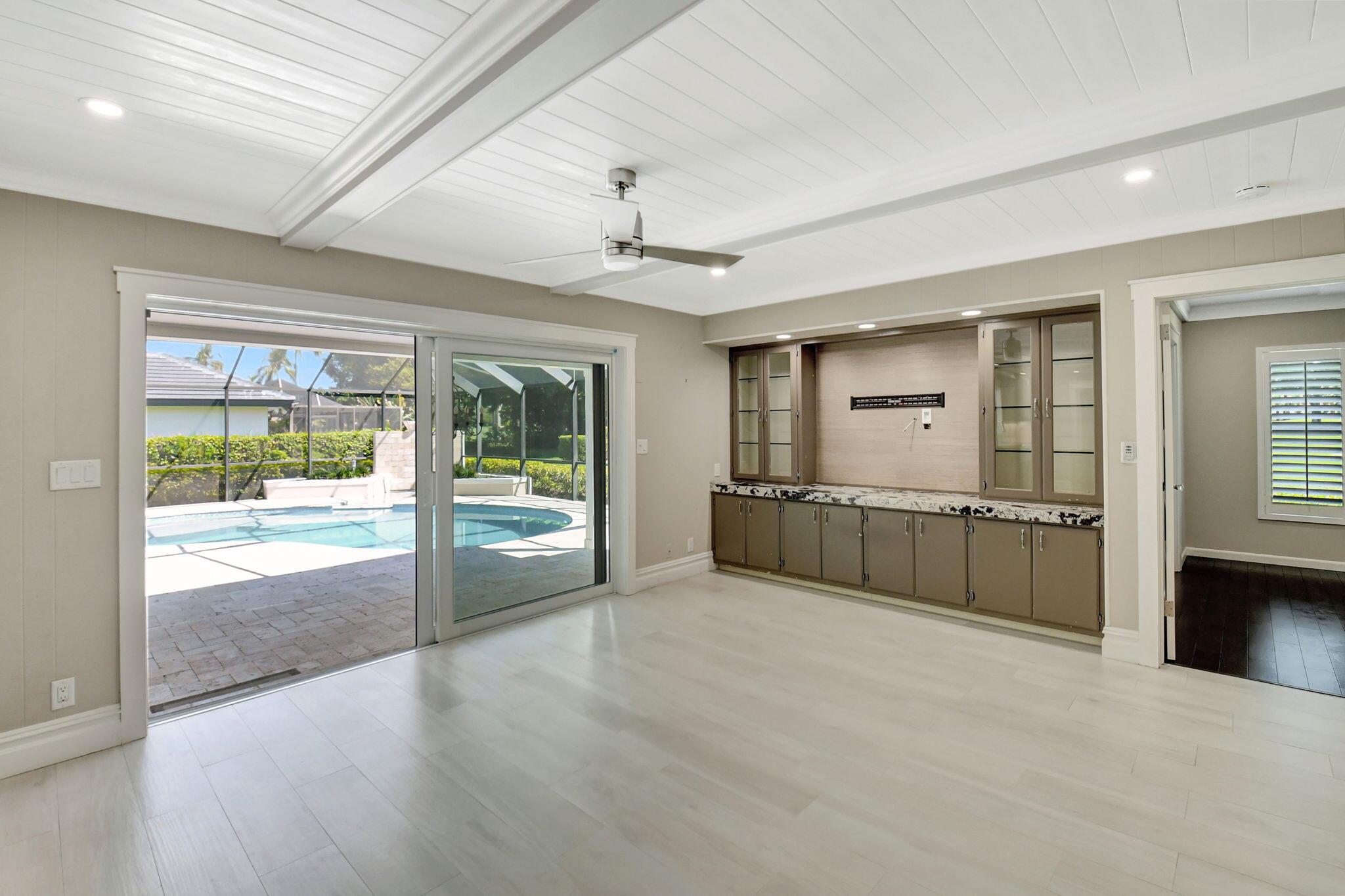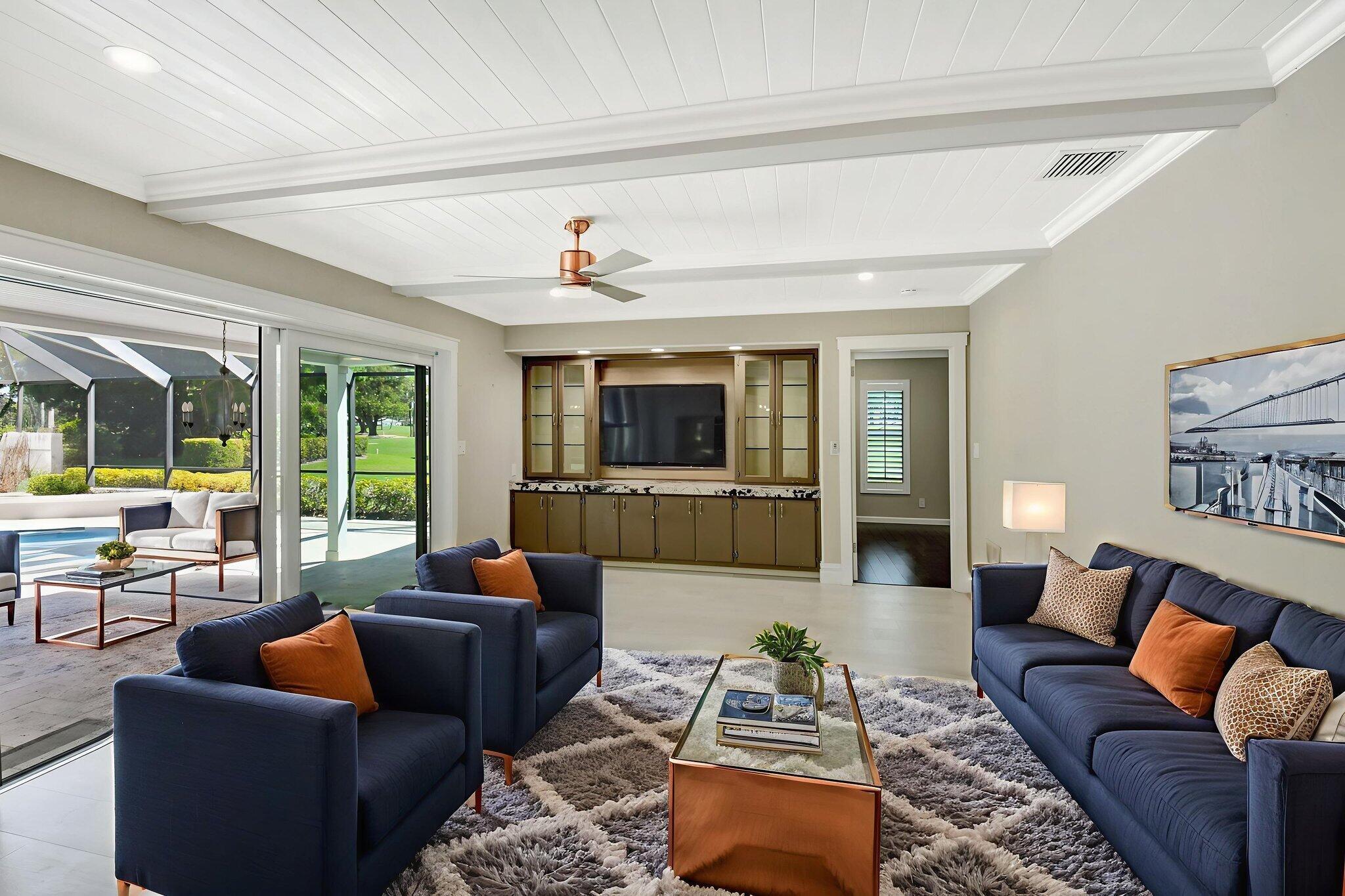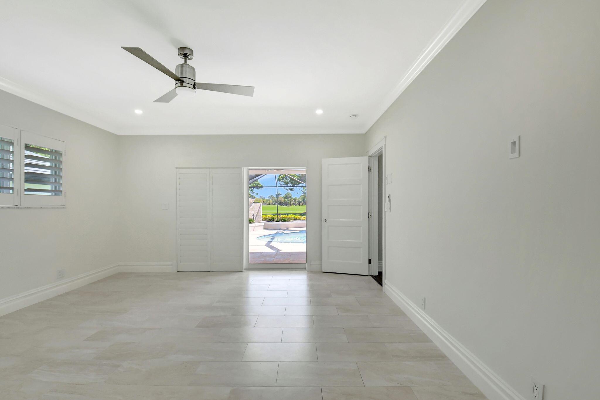 A rare opportunity is now available on one of the most exquisite golf course lots in Delray Dunes. You are greeted with expansive course views of 8th & 10th greens and 9th tee and a resort style heated pool area all from the large glass openings in almost all of the rooms. This beautiful 3BR/3BA pool home has a new roof in 2023, impact windows & a full home generator . The large 2 car garage also has a golf cart parking area.From the moment you enter the handcrafted double-door you will be impressed with the size of the rooms, the split bedrooms (all with ensuite baths and walk-in closets), a custom kitchen with custom wood cabinets, granite, Bosch and Thermador appliances plus a large pantry. All of this located in Delray Dunes Golf and Country Club.