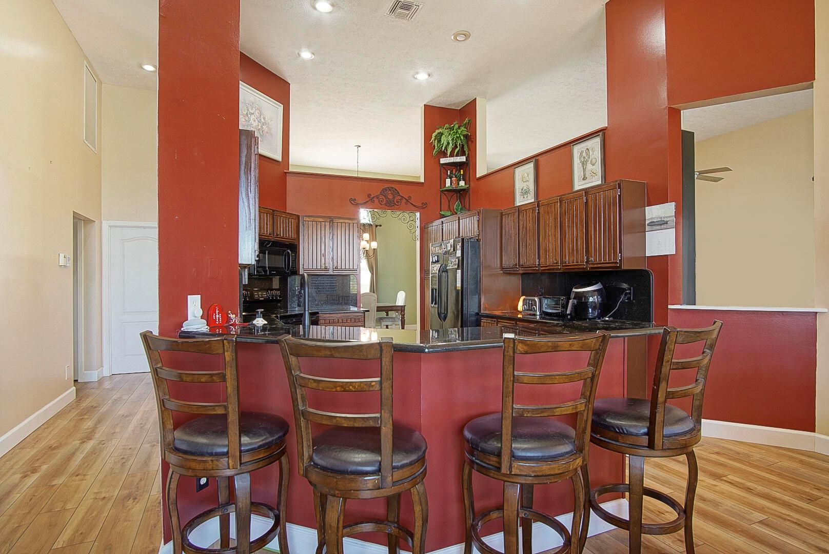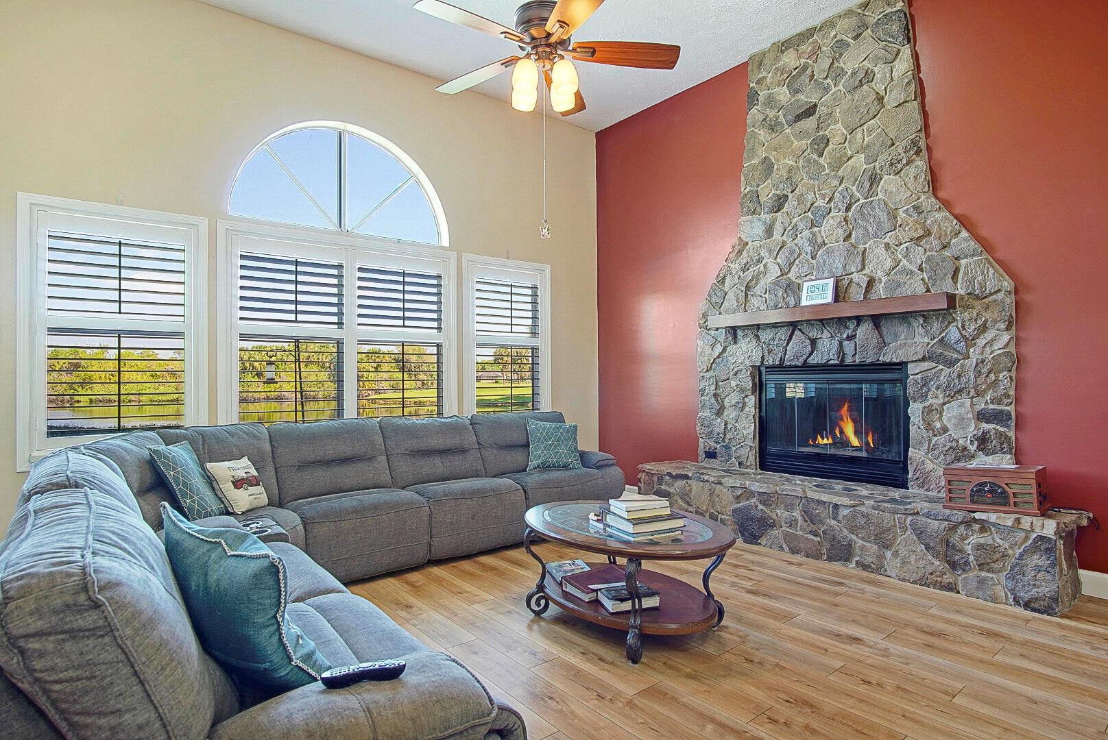 This is it! Location, spacious & elegant best describe this water front home quietly nestled adjacent to the 11th hole of the Gator Trace golf club. The 2700 sq ft home offers soaring 14' ceilings in the living areas and the family room includes a wood burning fireplace with floor to ceiling stone accent. The owners suite is huge and includes a walk in closet and bath en suite. Private second bedroom includes a large office/flex area that can easily be used as in law suite, guest suite, nursery or 4th BR. Natural gas avail. in the comm with low HOA fees at 121. per month. Clubhouse is in walking distance. The home boasts a side entry garage and the home has an electric roll down shutter system that makes storm preparation quick & easy. A must see home, call for your private tour asap!