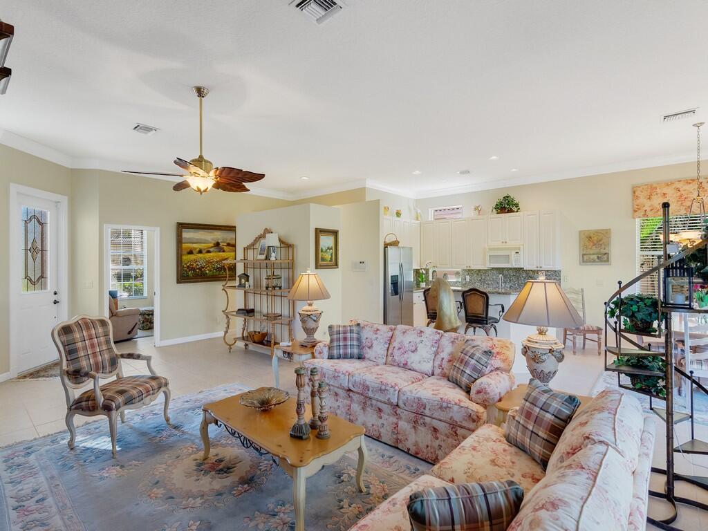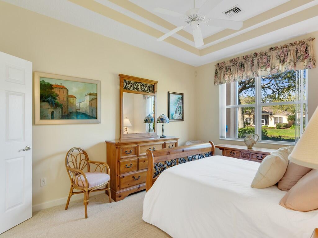 WOW! $25,000 REDUCTION SO NOW ITS THE LOWEST PRICE ON THE ISLAND! Welcome to this lakefront 2 bedroom +den in desirable Old Orchid. 1,700+ Square feet of living. Kitchen with large granite island & open to great room. 2023 AC & accordion shutters. Security gate, tennis court, heated community pool & workout room complete the neighborhood nestled between the historic jungle trail, the Indian river & the Atlantic Ocean!