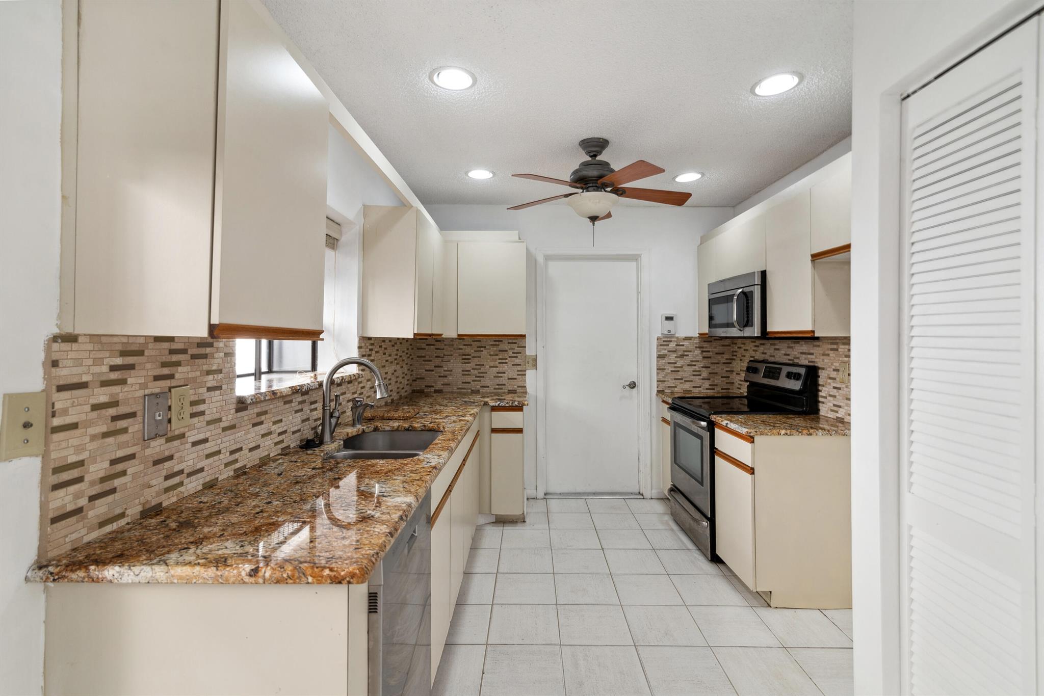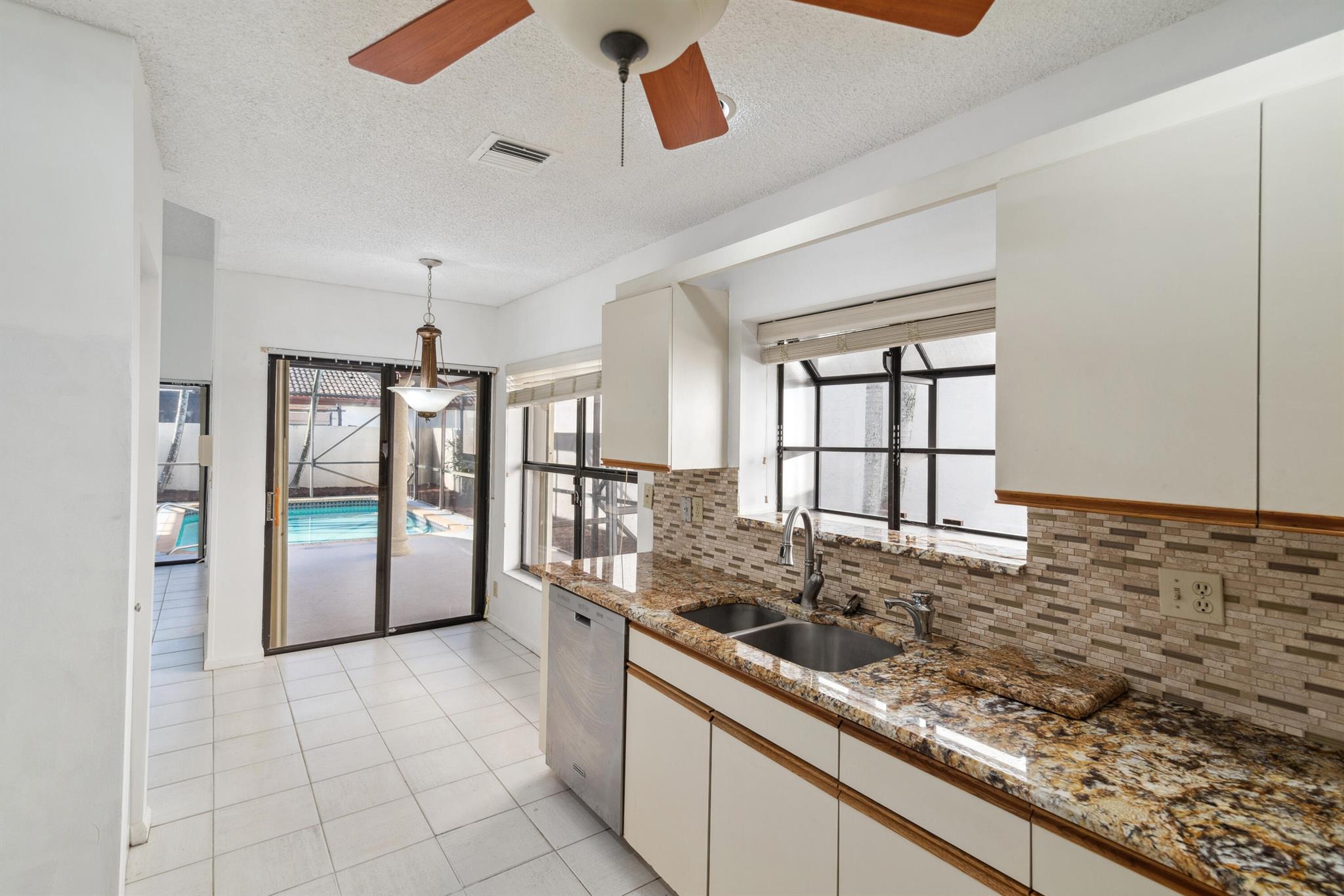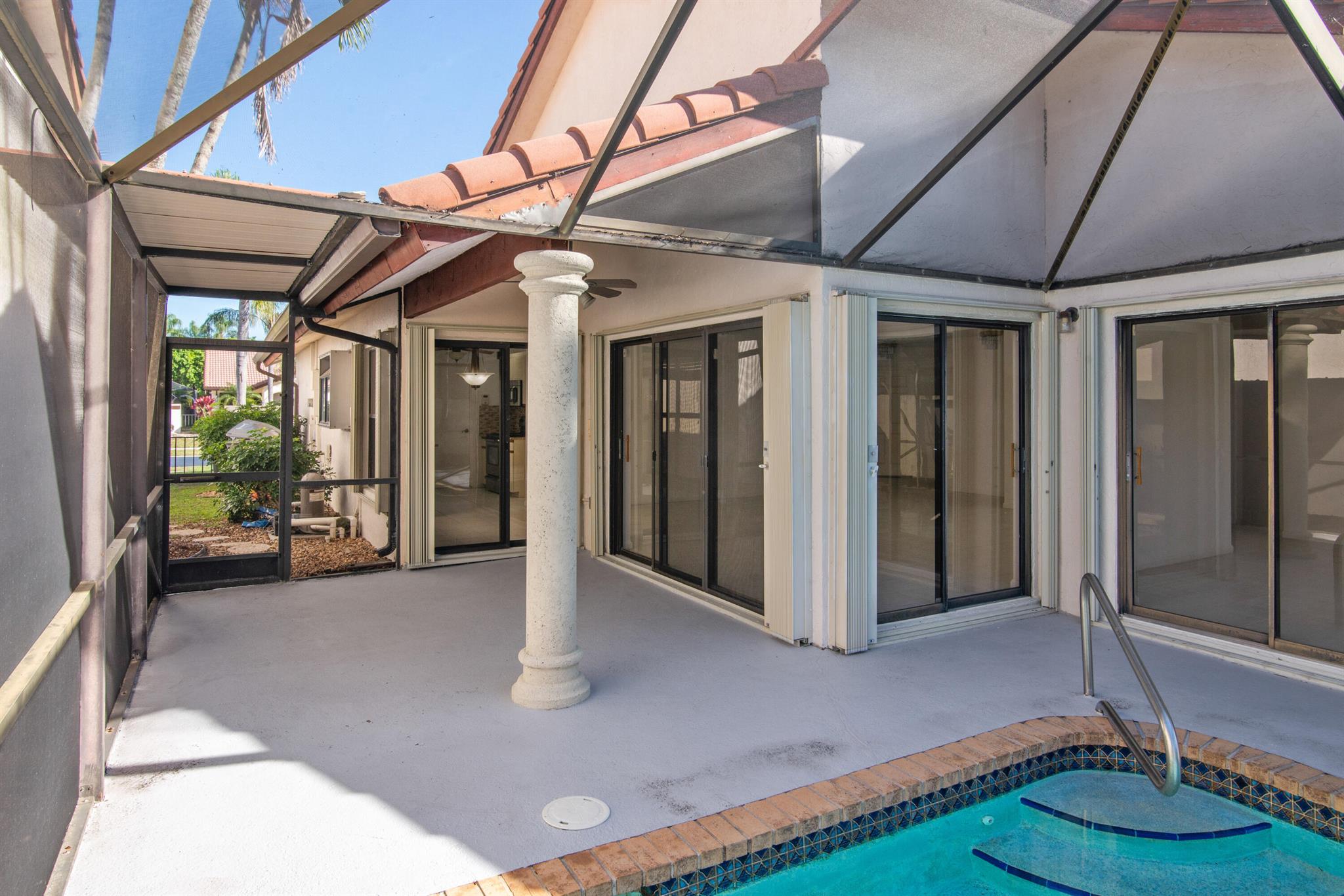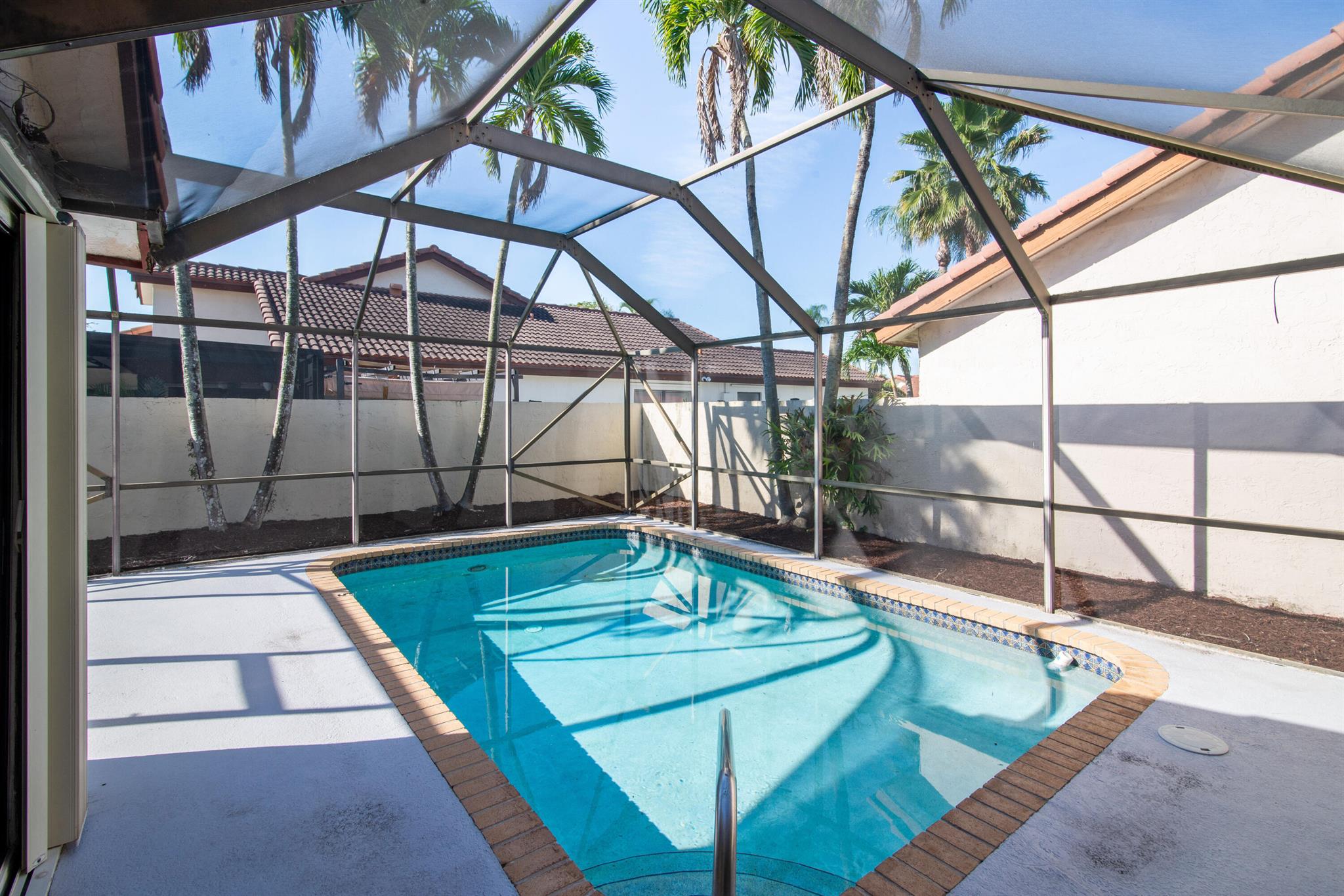 Come see this turnkey 3 bedroom/2 bathroom 1576 SQFT home with granite kitchen countertops, a stainless-steel split sink, a bright and naturally lit living room overlooking the covered patio and private screened-in pool, vaulted ceiling throughout, dual vanities in the master bath, jacuzzi tub with separate shower, walk-in closets, hurricane protection, two-car garage, poolside outdoor shower, low HOA fees, community tennis court, conveniently located next to Del Prado Elementary, near 3 grocery stores (Grove Kosher/Winn Dixie/Publix), the Boca Raton Town Center Mall, Sugar Sand Park, Boca Del Mar parks, schools, highways, and places of worship. It is investor friendly and can be rented immediately with a long-term Lease. Roof is 2008. AC is 2020.