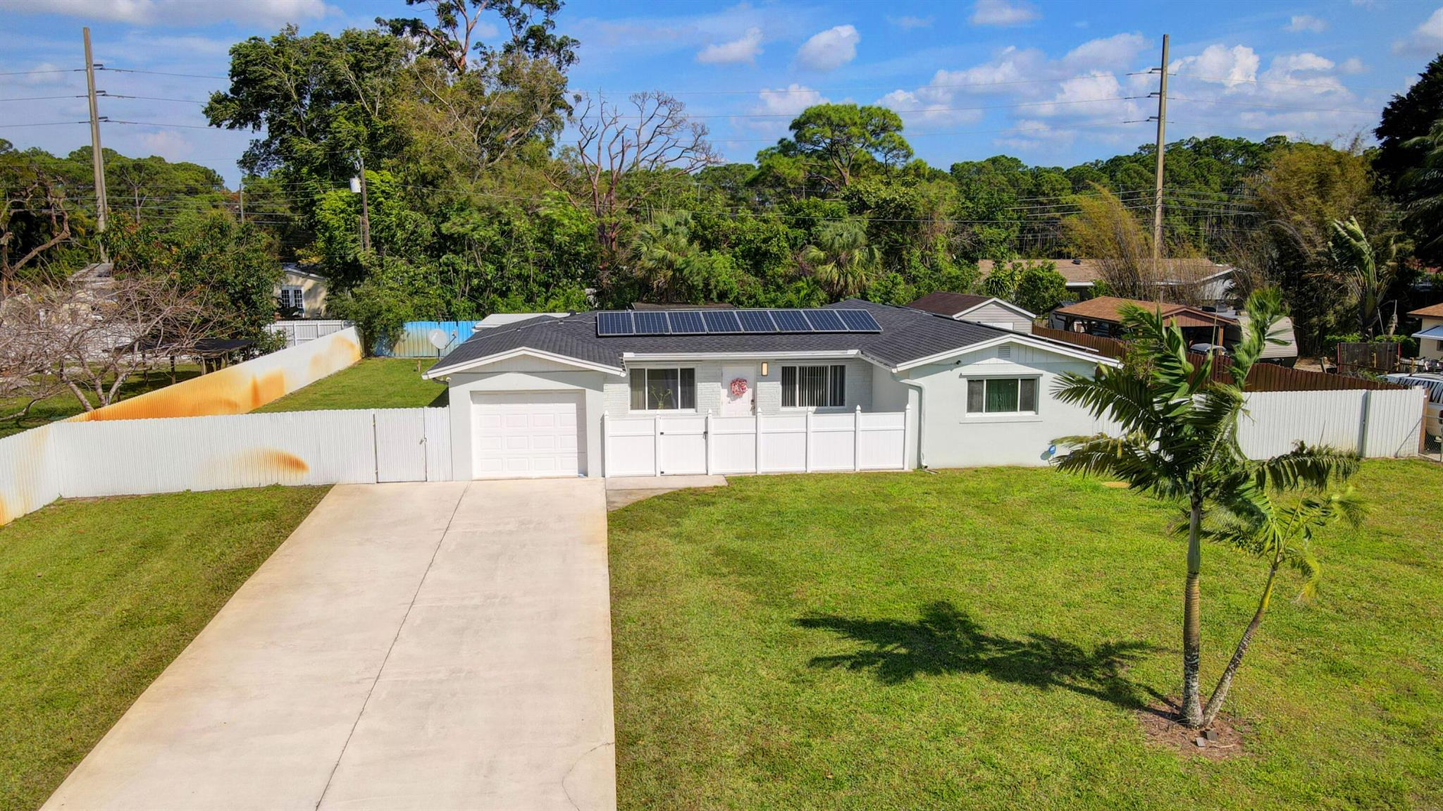 Taking Backup Offers. Welcome to 628 Madeline Dr in West Palm Beach, a beautifully updated four-bedroom home with no HOA restrictions. Inside, you'll find upgraded flooring throughout, creating a fresh and modern feel. The spacious layout offers plenty of room for comfortable living. Step outside to your private backyard oasis, featuring a heated saltwater pool--perfect for year-round enjoyment. This home also boasts a brand-new roof installed in 2024 and solar panels to help you save on electric bills. With no HOA, you have the freedom to make this home truly your own. Conveniently located just 10 minutes from Palm Beach International Airport, 15 minutes from Downtown WPB, and only 8 min from I95 and 4 min from the Turnpike. Don't miss out--schedule your showing today!