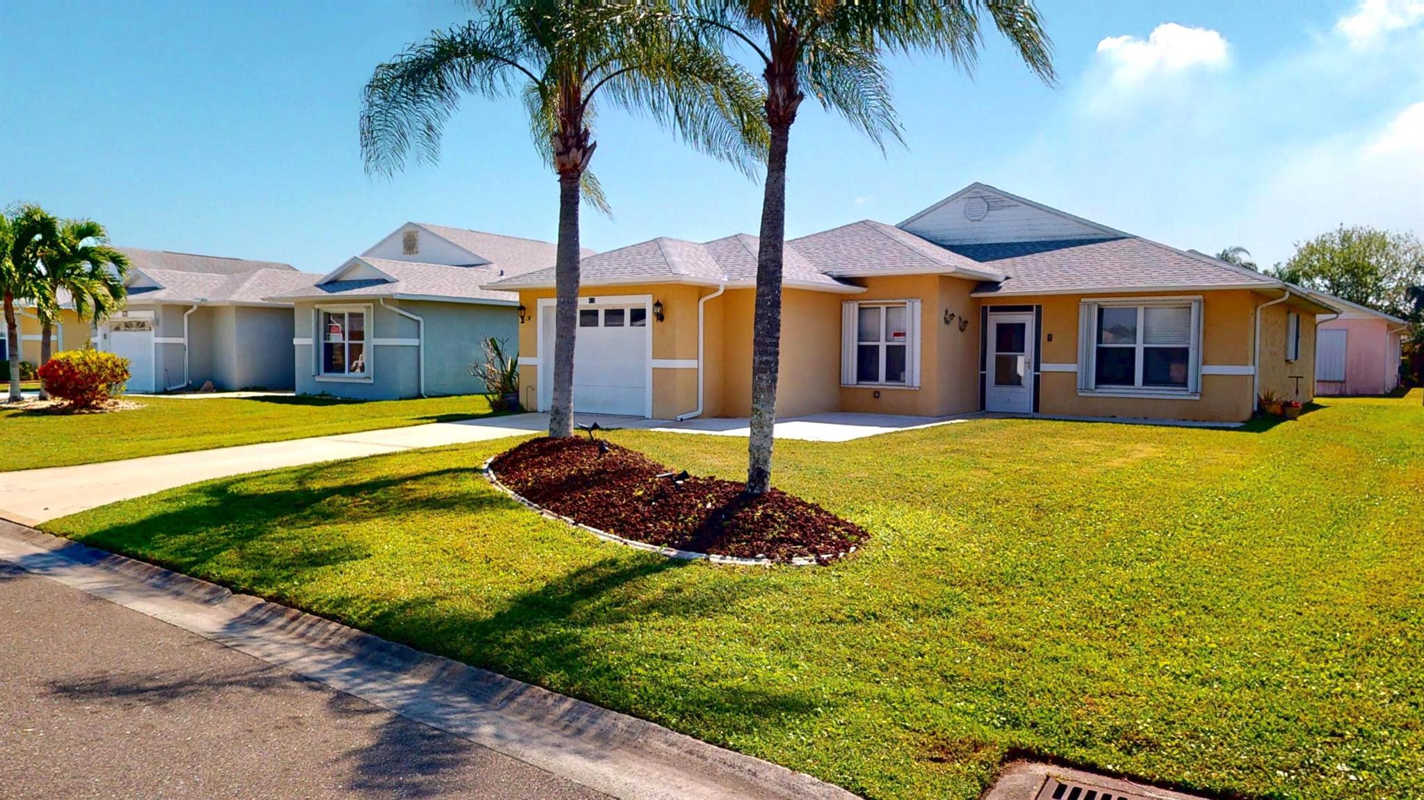 Discover this charming 2-bedroom, 2-bathroom CBS home nestled in the sought-after 55+ gated community of Palm Grove. This residence boasts a newly installed roof, ensuring peace of mind for years to come. The spacious layout includes a covered patio, perfect for enjoying Florida's serene mornings and evenings!Community Highlights: Palm Grove: A well-maintained, active adult community offering a plethora of amenities. Security: Benefit from 24/7 manned gate security, providing residents with a safe and secure environment. Amenities: Enjoy access to a luxurious clubhouse, heated pool, tennis courts, pickleball, bocce ball, shuffleboard, and a variety of social clubs and events. Convenience: Located just minutes from shopping centers, restaurants, hospitals,