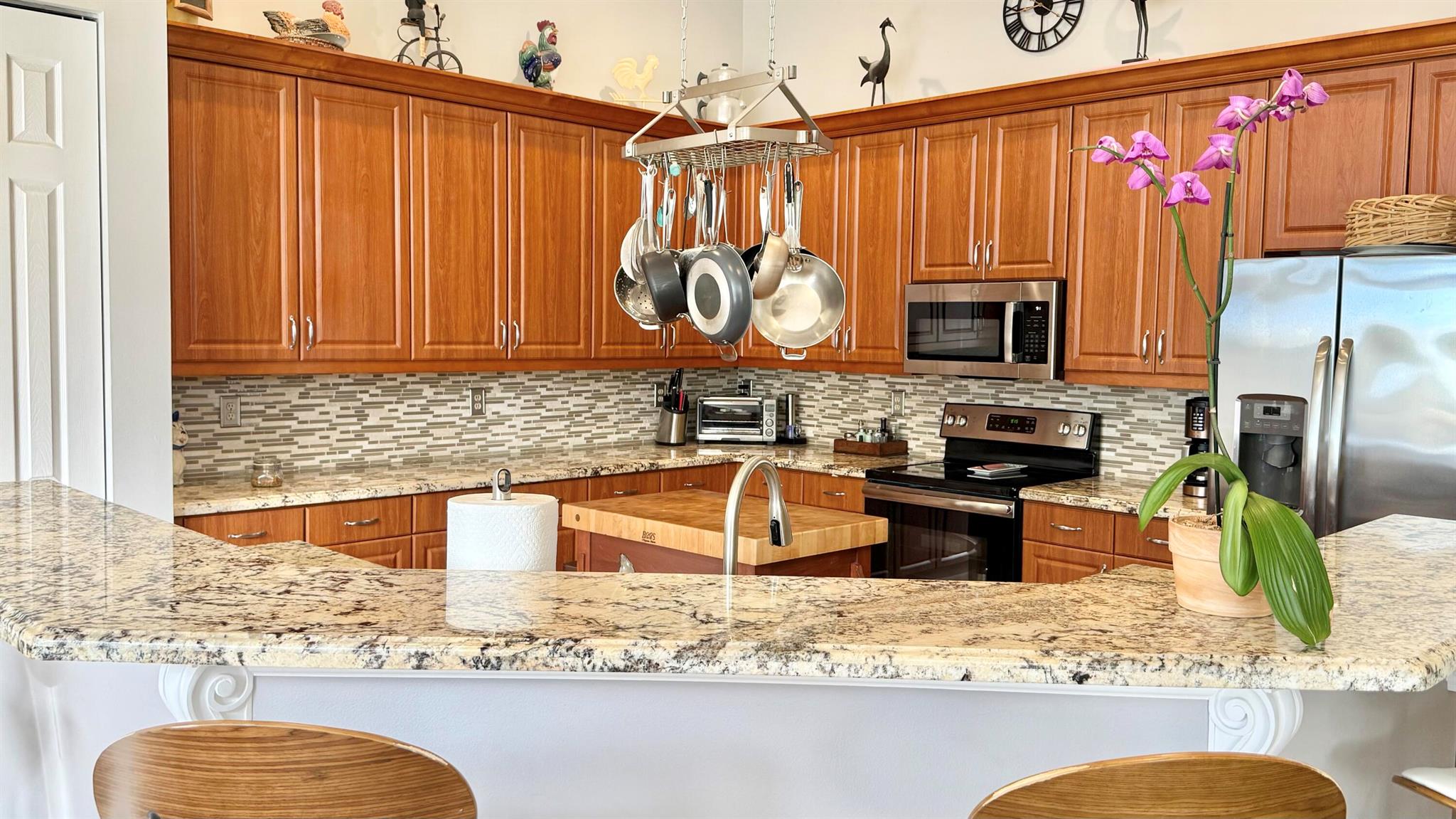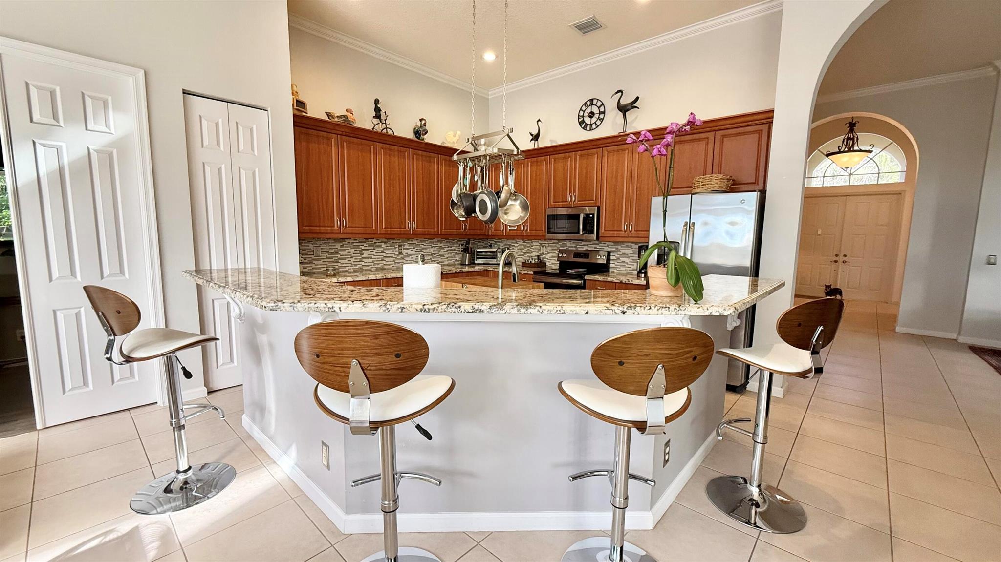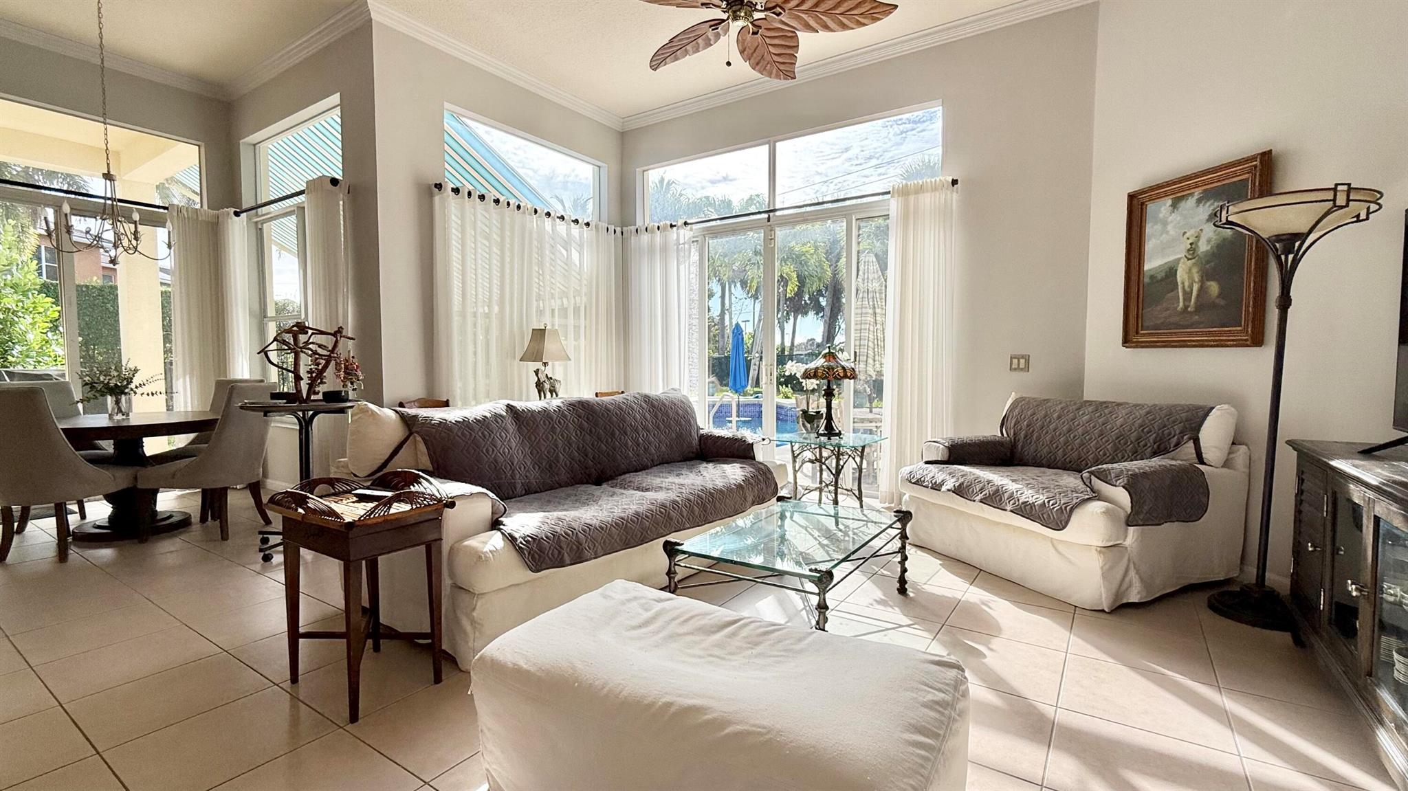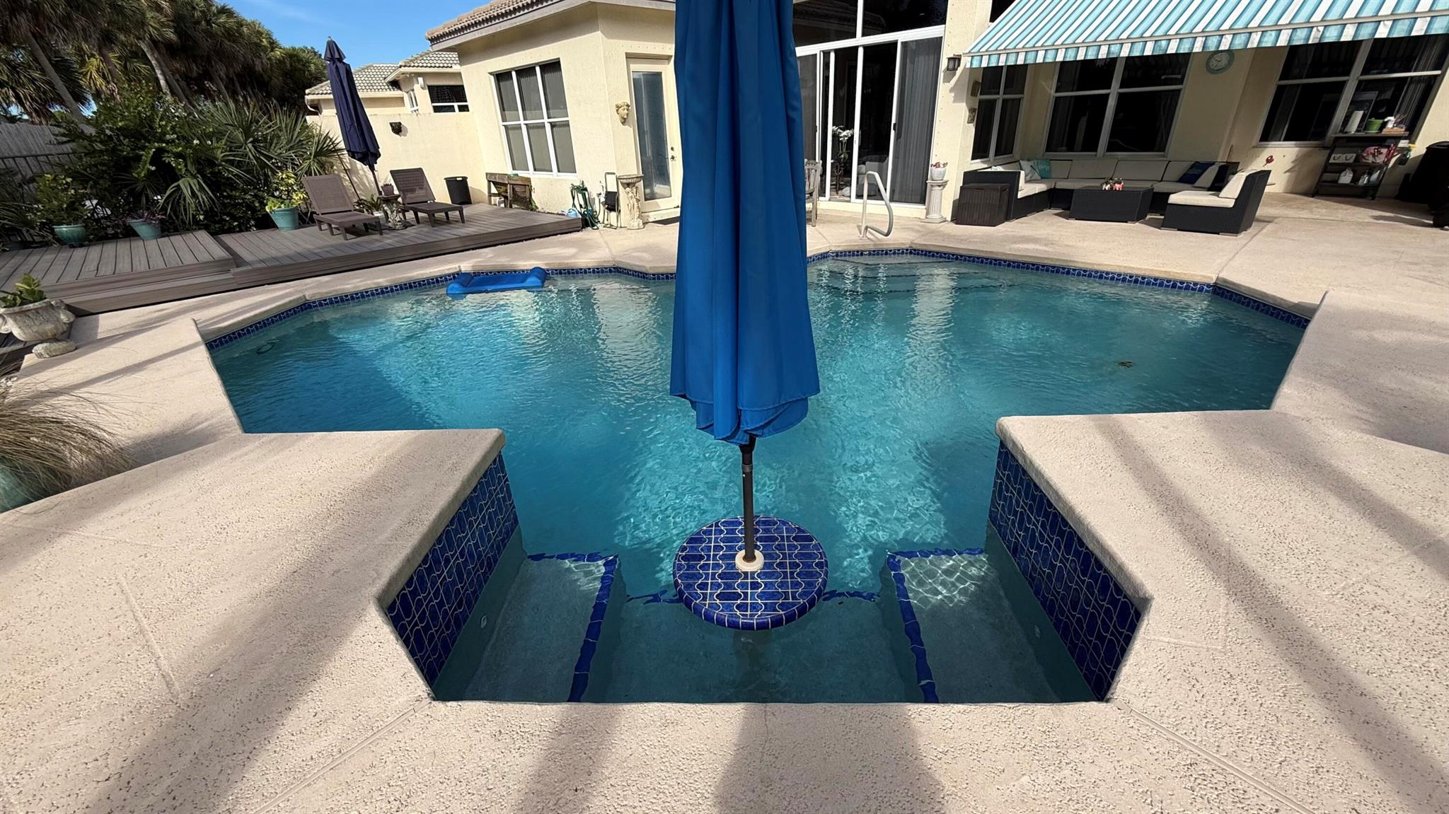 Wow!!! What a magnificent property! This spacious home boasts an amazing backyard retreat that looks like a high end resort pool area! The Freeform heated pool has a ''seating'' area, perfect for pool parties and fun games! There is an area of ''all weather'' decking surrounding the pool for lounging and sunning, plus a covered space with a retractable awning. Inside is just as appealing... as you enter the large foyer you will immediately be impressed by the 12 ft ceilings and how the floor plan flows from living, dining and on to the large open kitchen and family area. The 4th bedroom has been converted to an elegant office/den with custom built ins. The two guest bedrooms share a bathroom and the principal bedroom is a generous size with tray ceilings, an enormous closet and