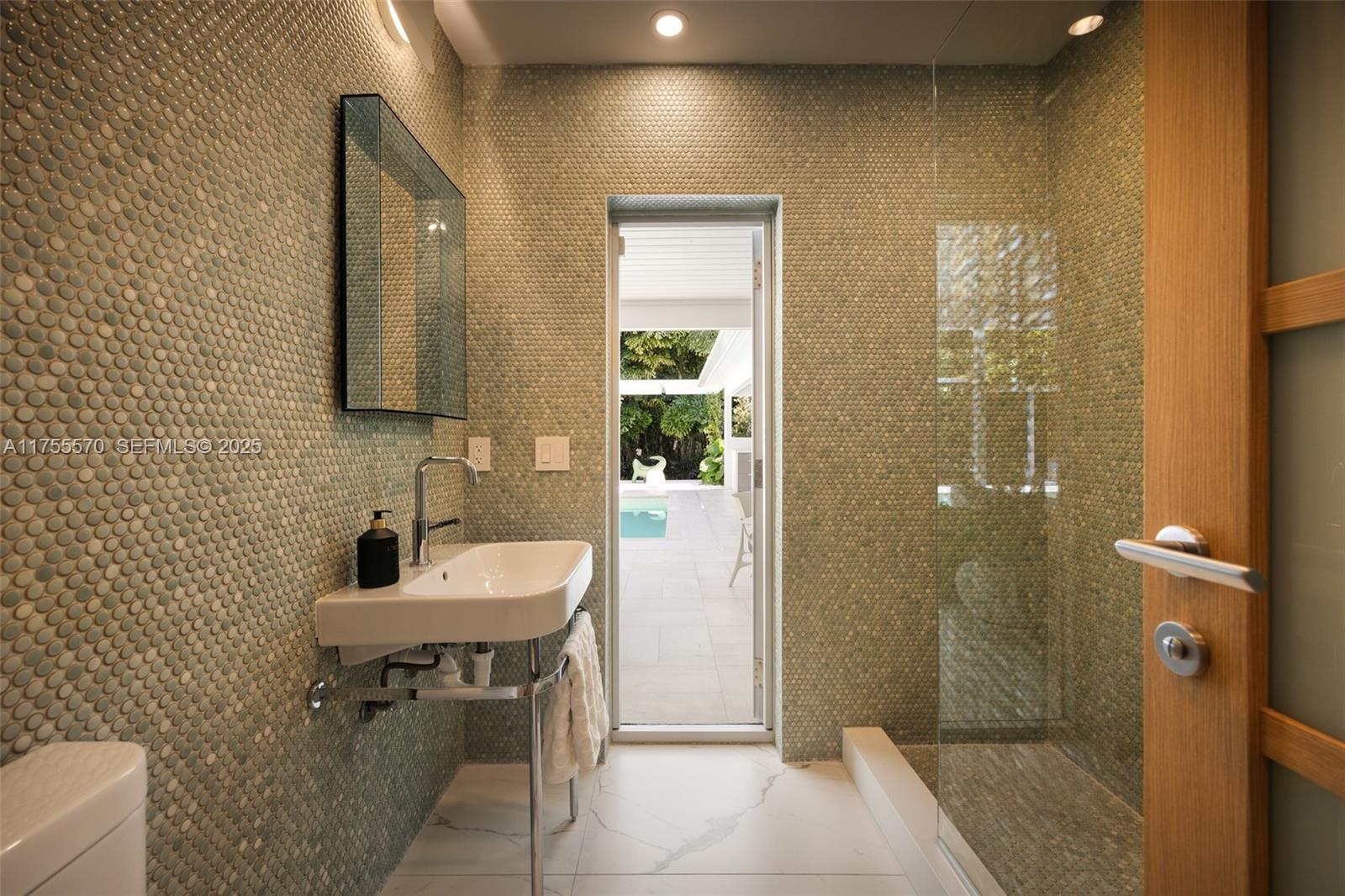 This newly curated MiMO residence, transformed in 2022, blends state-of-the-art amenities with fresh design. At the heart of this stunning sanctuary is a culinary haven. The east wing features guest en-suites; the west side hosts a primary retreat w/ spa-inspired bath & expansive walk-in dressing room. A 2nd floor addition completed in 2024 offers: family room, veranda, en-suite guest bedroom/den, office & garage. Elevated custom interiors showcase cove lighting, stretch vellum ceilings, white oak floors & extensive millwork. Step outside: a resort-style saltwater pool, architectural pergola, summer kitchen & cabana is nested in the beautifully established landscape. Designed for modern living: Lutron Caseta lighting, Sonos & Aquasana systems, monitored security system, Generac generator.