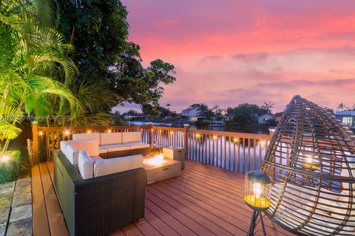 Espectacular 4 BD 3 full BA home with direct lake view from the moment you enter. Contemporary open floor plan. Wood floors in bedrooms. Living area has beautiful natural tiles thru out. Gourmet kitchen, quartz counter tops, top of the line S/S appliances, French doors, sophisticated security system & separate laundry room. Backyard has sparkling pool surrounded by wood deck & tropical landscaping overlooking lake.