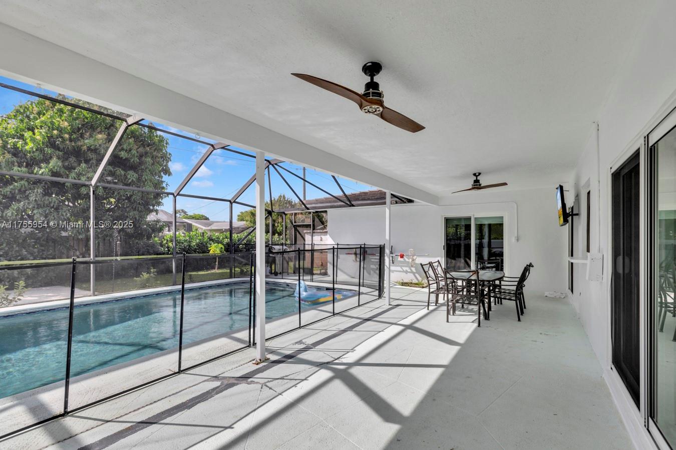 Stunning, bright 3Bed 2Bath corner home, equipped with new stainless steel appliances in the kitchen, wood cabinetry, quartzite countertops and large island. The house has a seamless open flow from the dining and living room areas. The living room, kitchen and primary bedroom all have impact proof sliding glass doors that lead into the screened in porch and pool area. Bedrooms all have large closets, with an oversized walk-in master closet. Backyard has a concrete pad 45ft x 12ft – perfect place to store a boat or RV. Backyard is also lush with fruit trees such as lime, orange, lemon, pineapple, banana, papaya and a mature mango tree. Salt water pool and oversized shed for storage. Grass is irrigated with a well. Large 2 car garage and impact windows. oversized corner lot 12,330 SQFT.